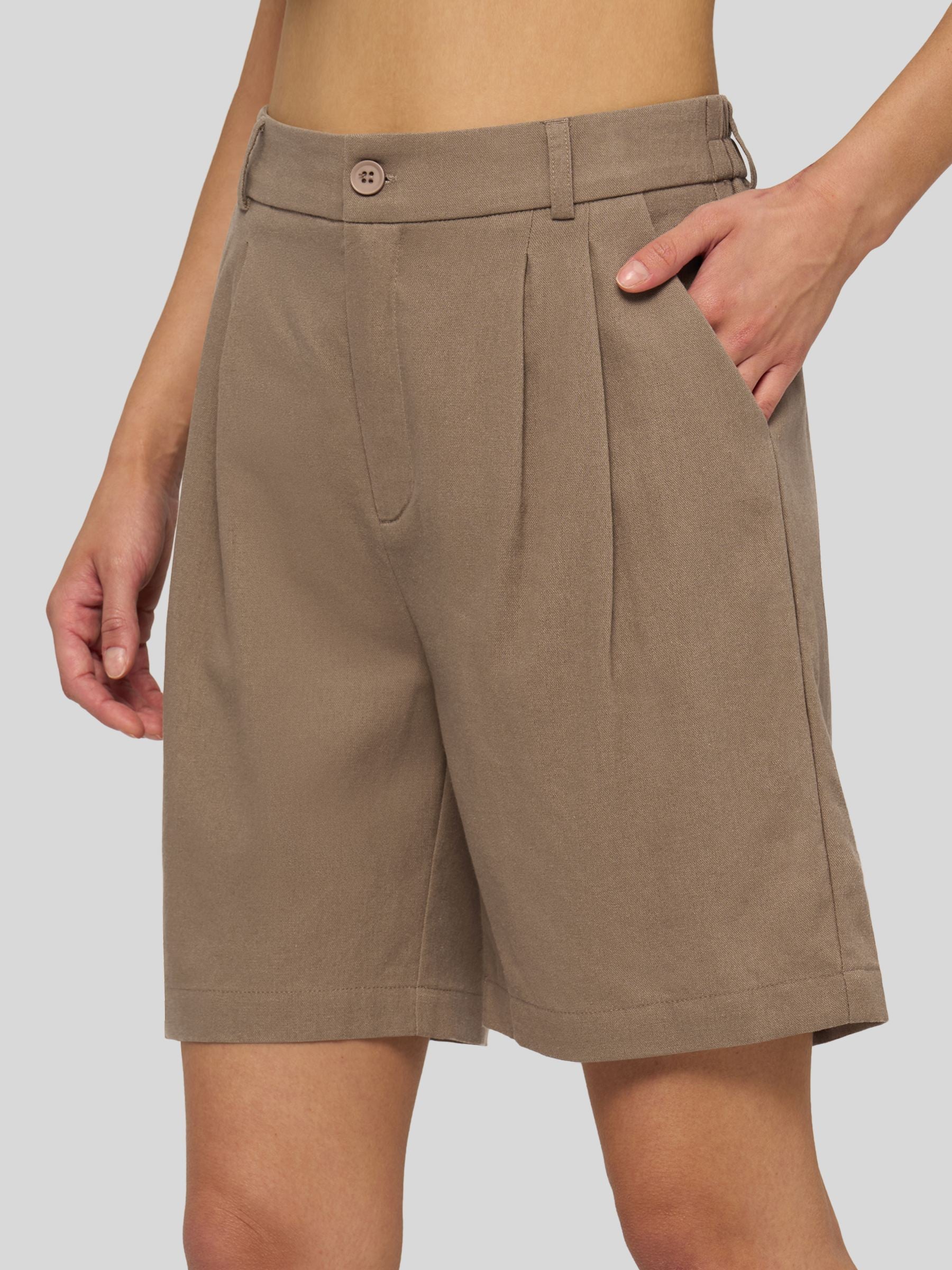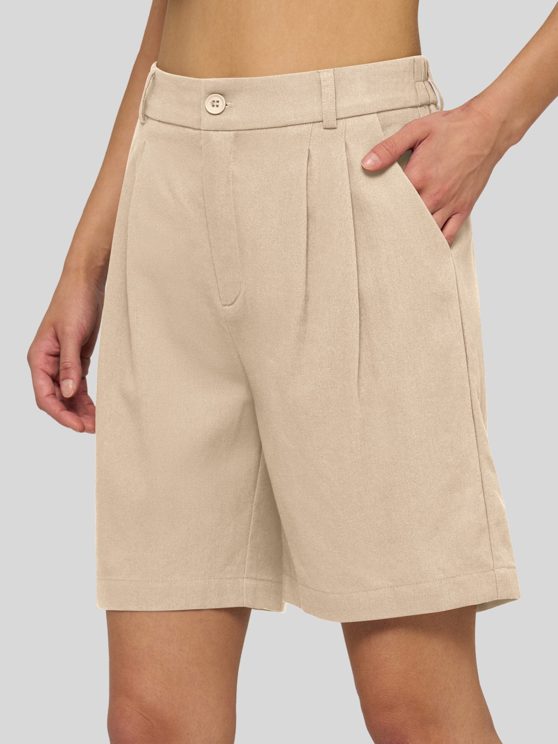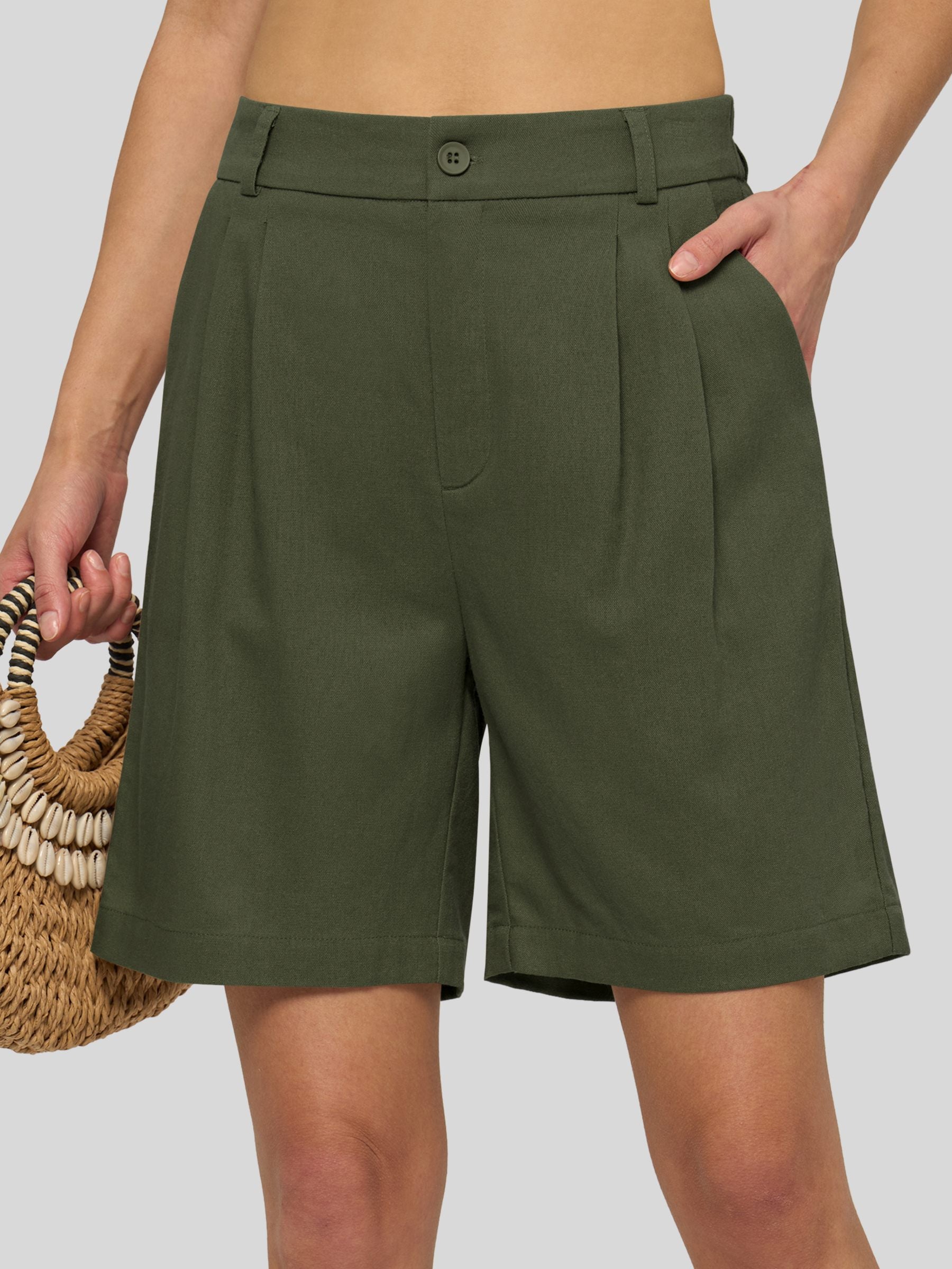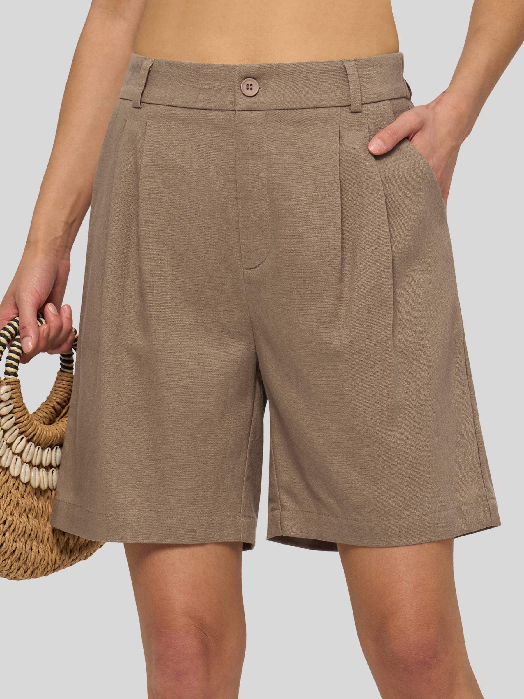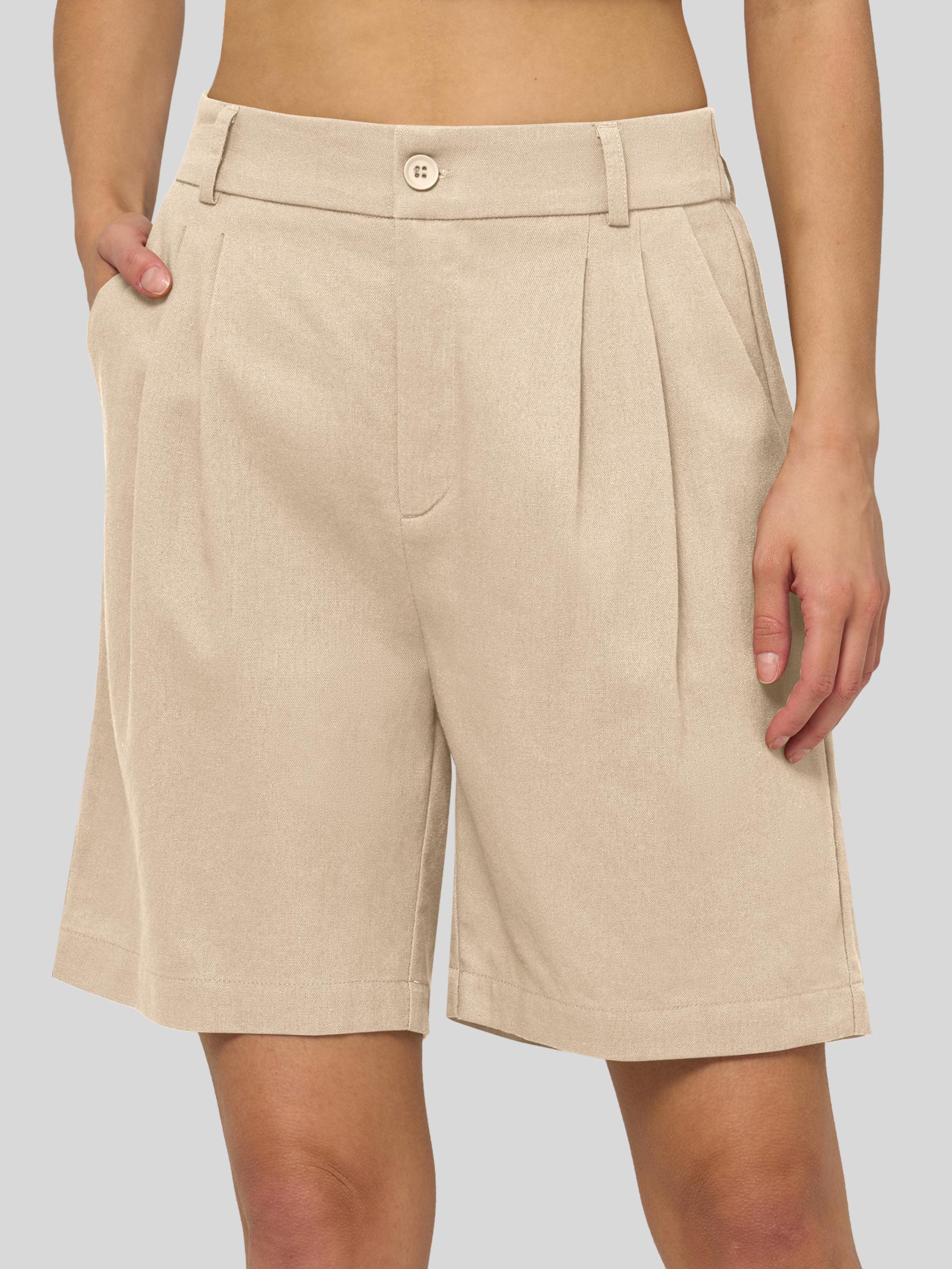 Women's Pleated Linen Shorts 10 Inch