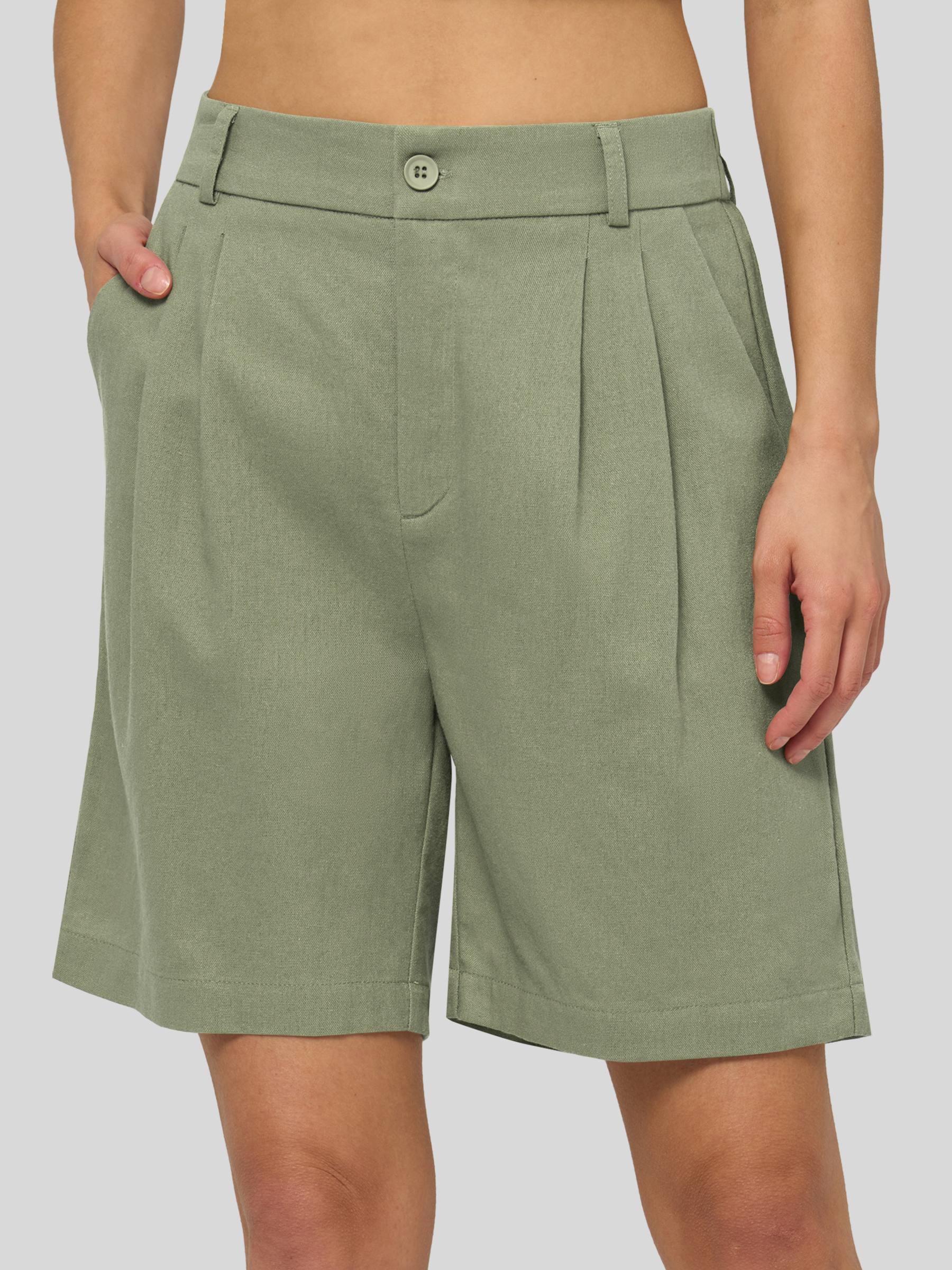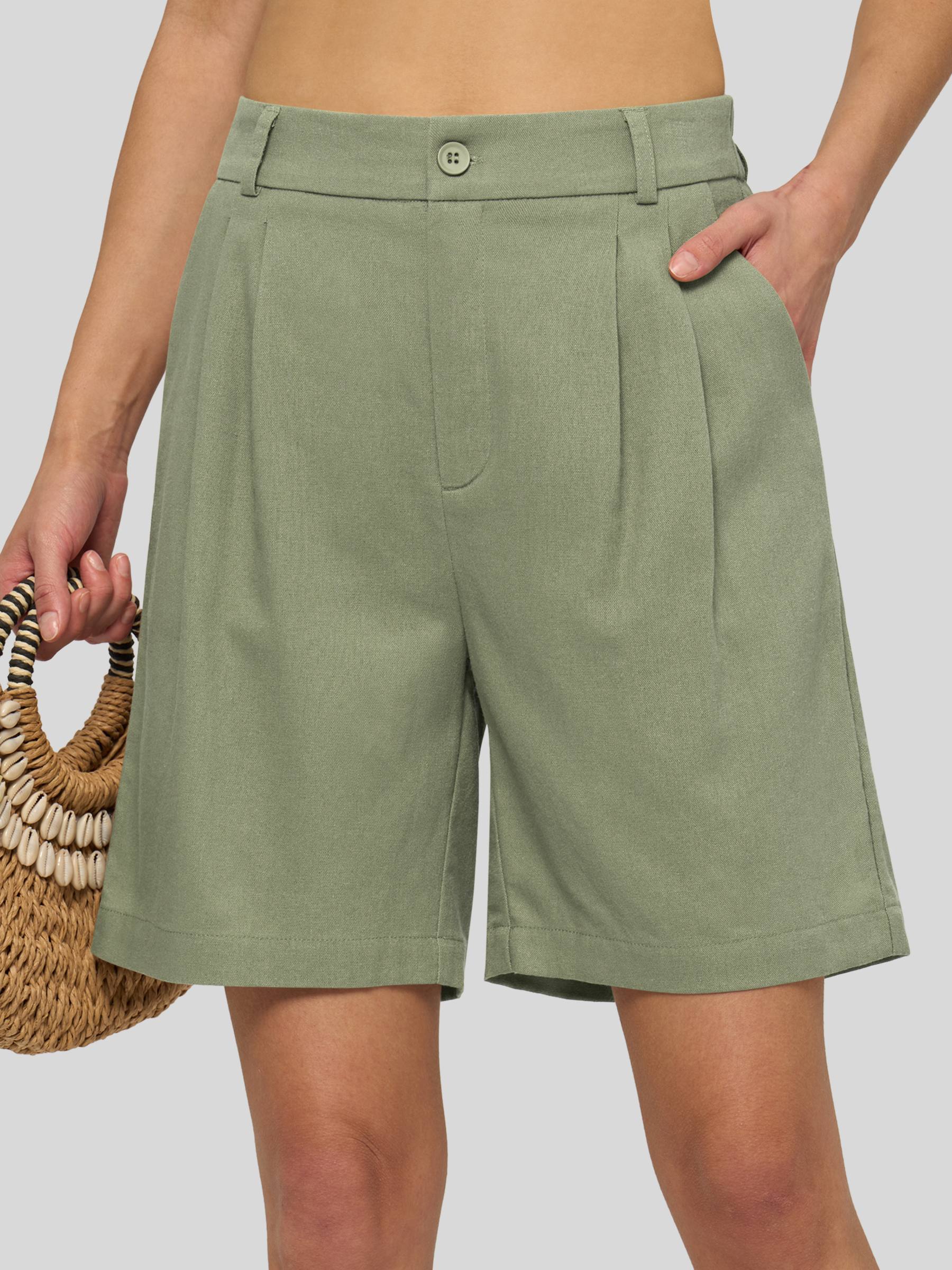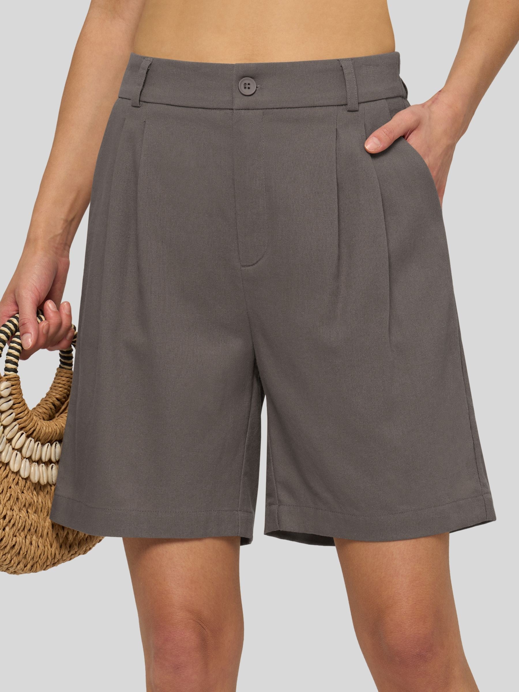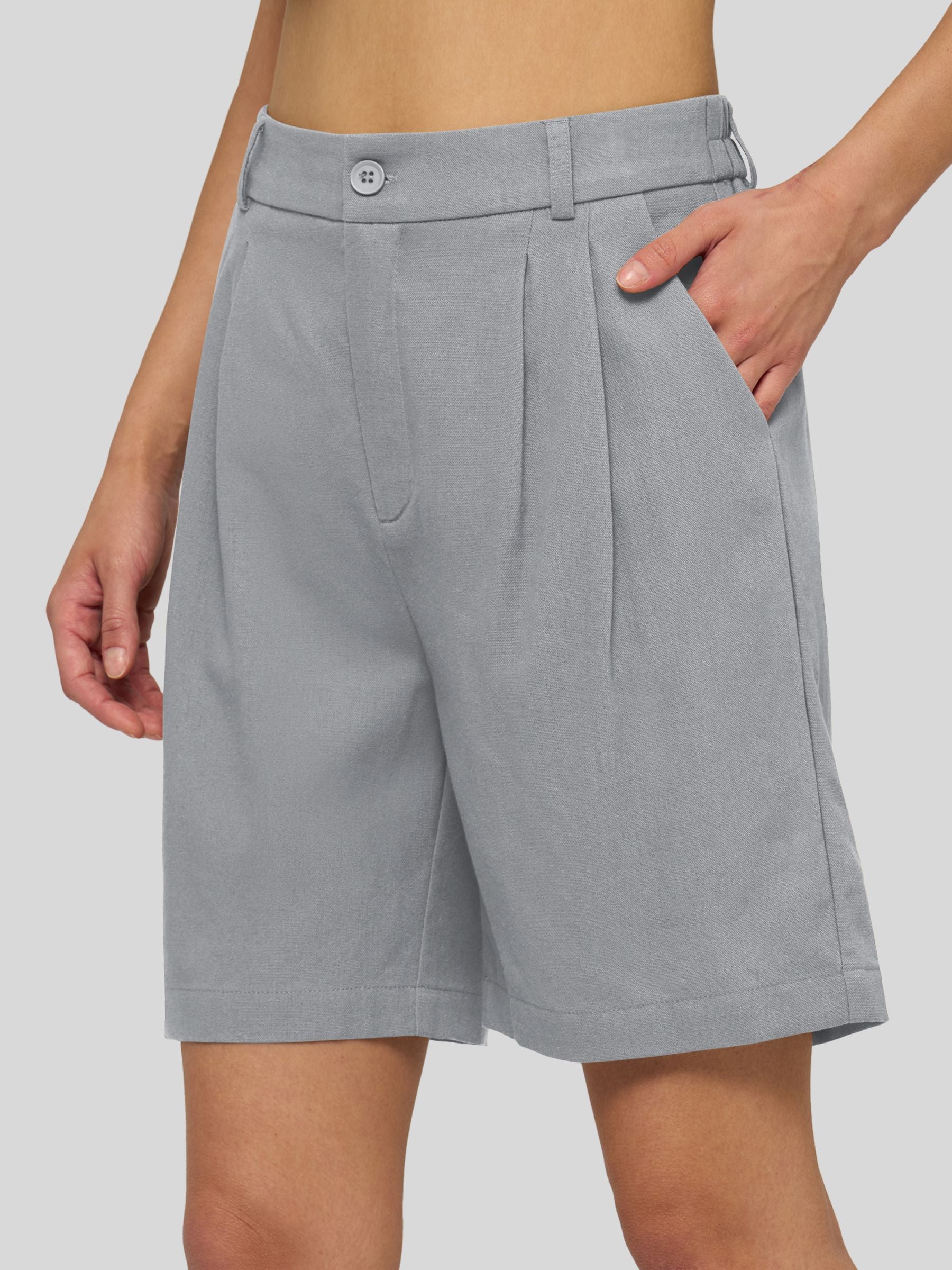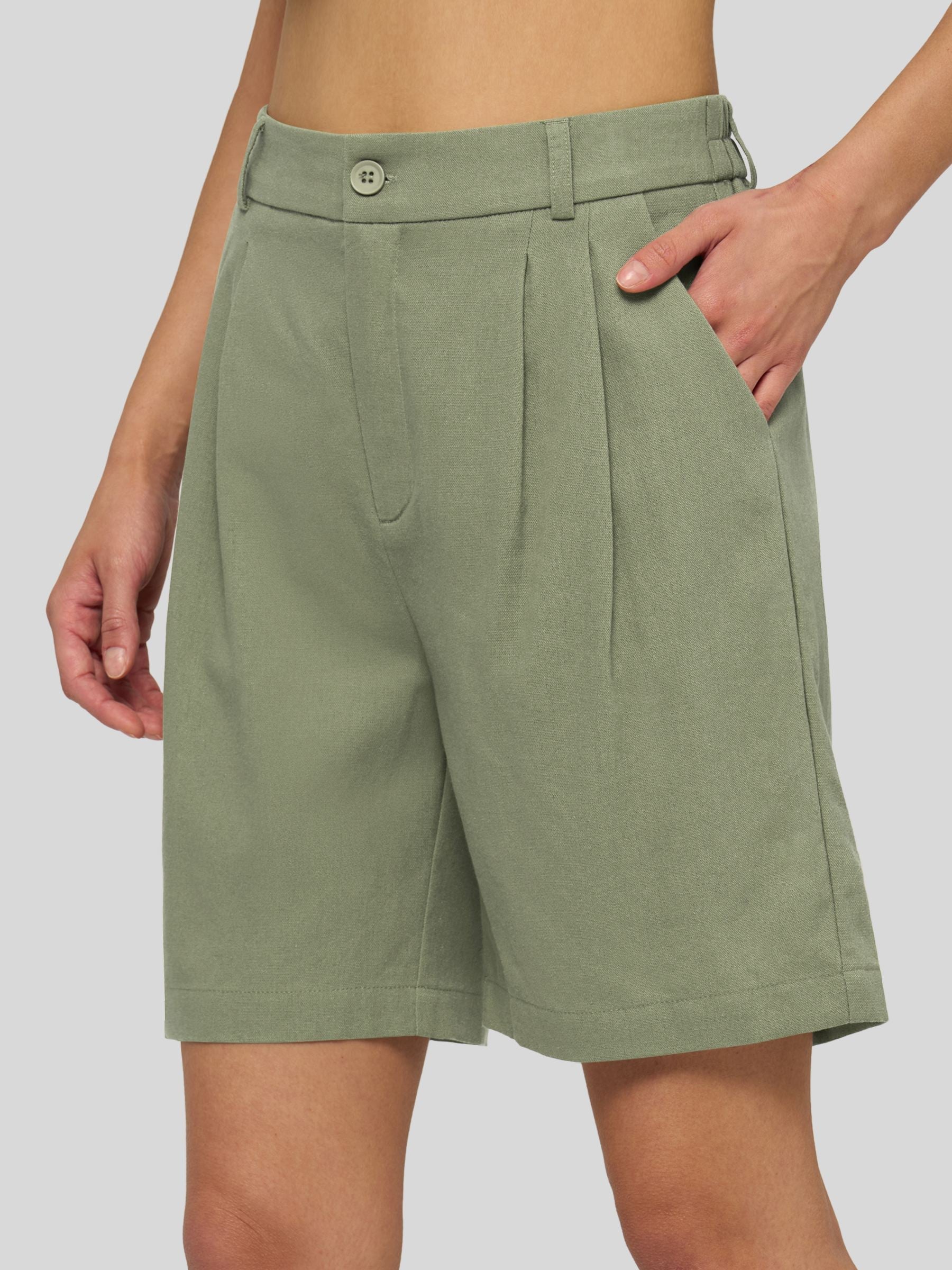 Women's Pleated Linen Shorts 10 Inch
