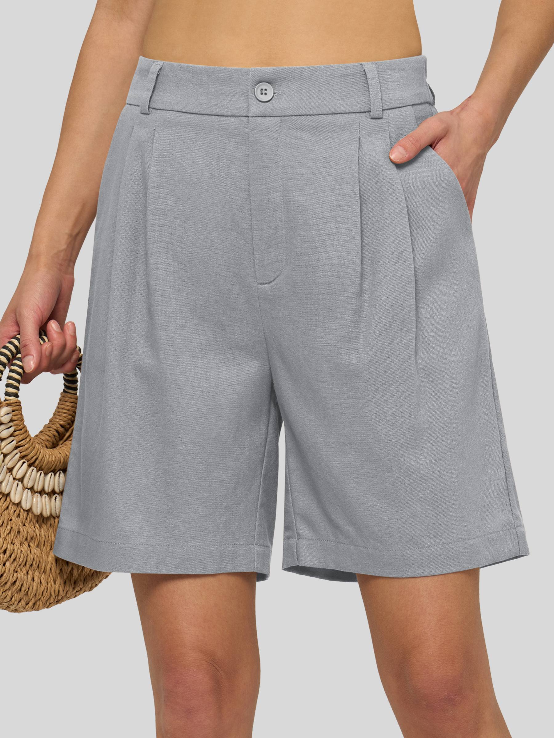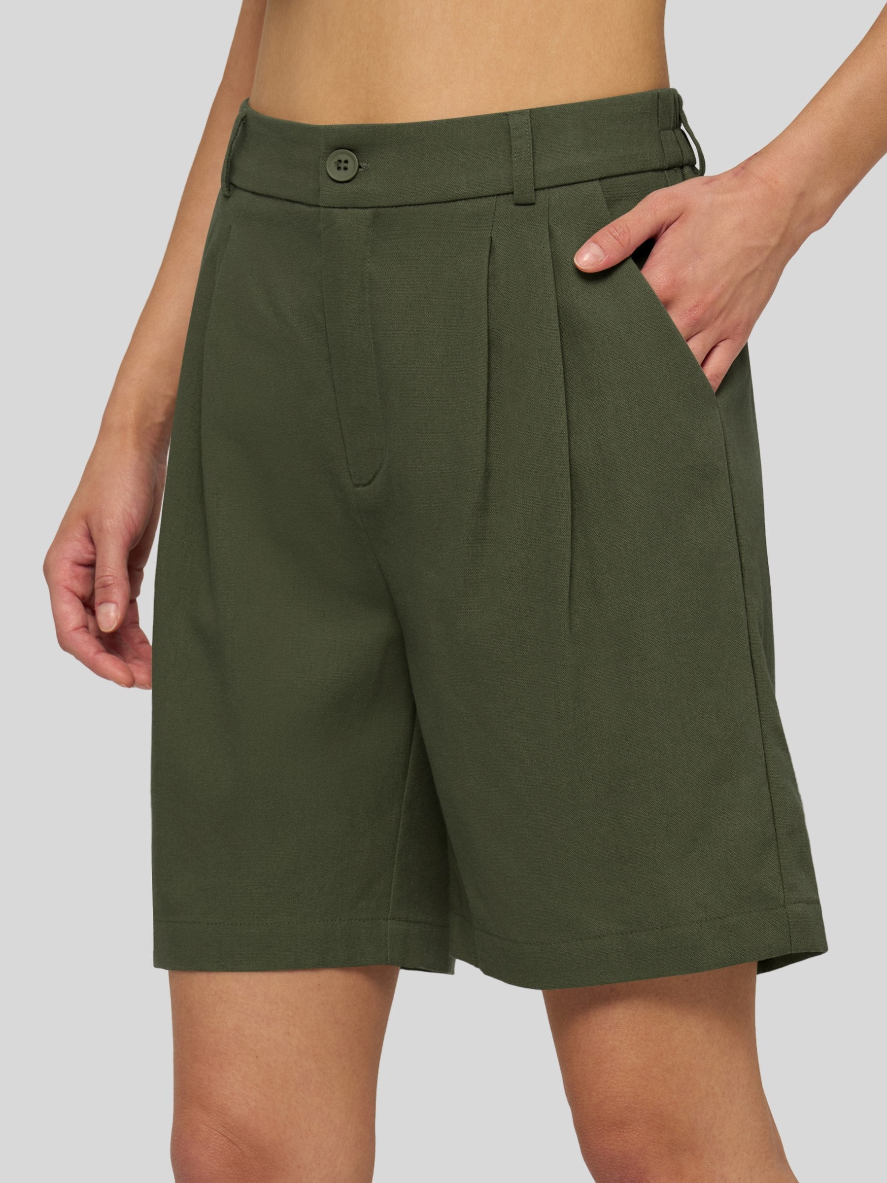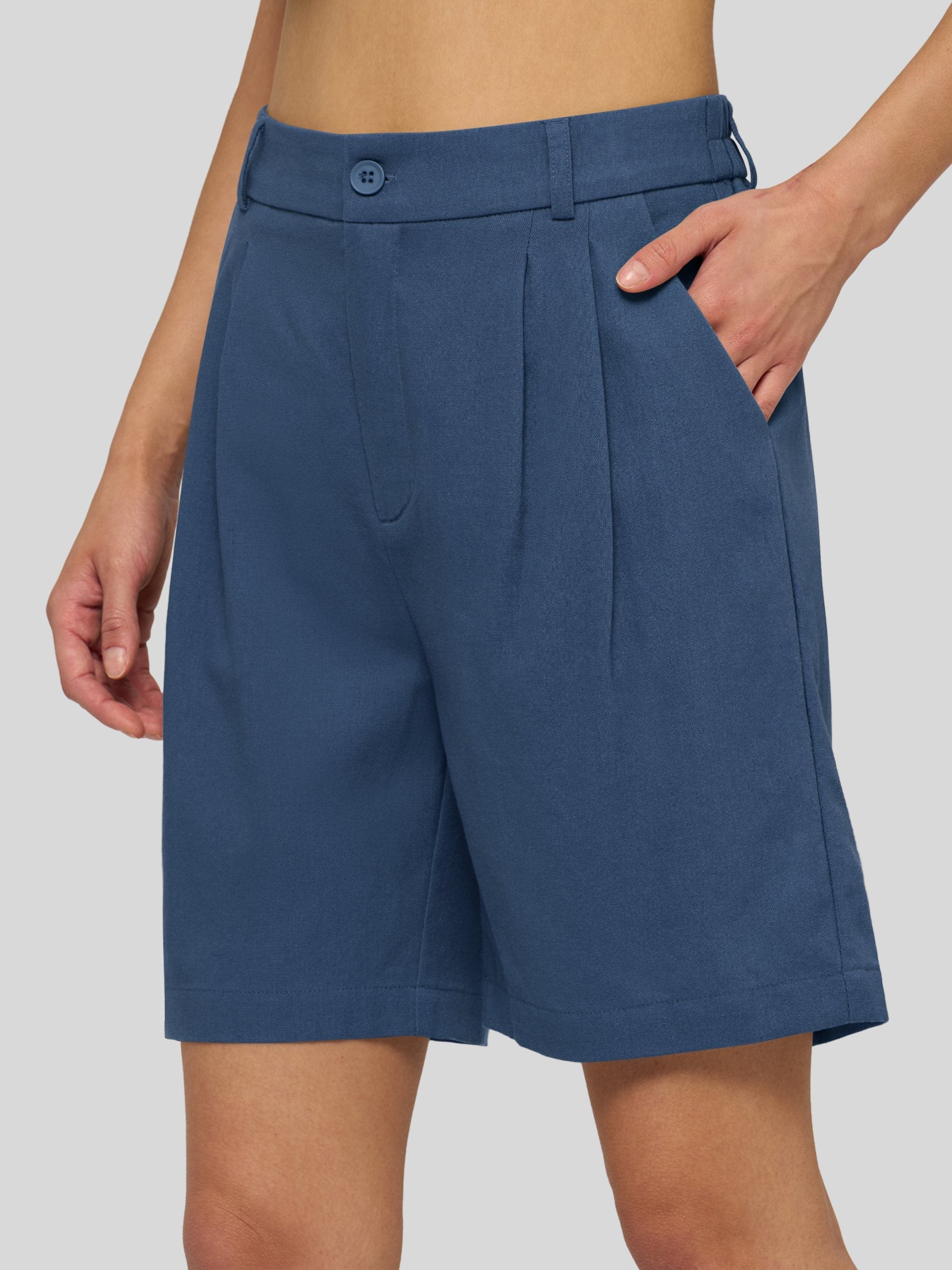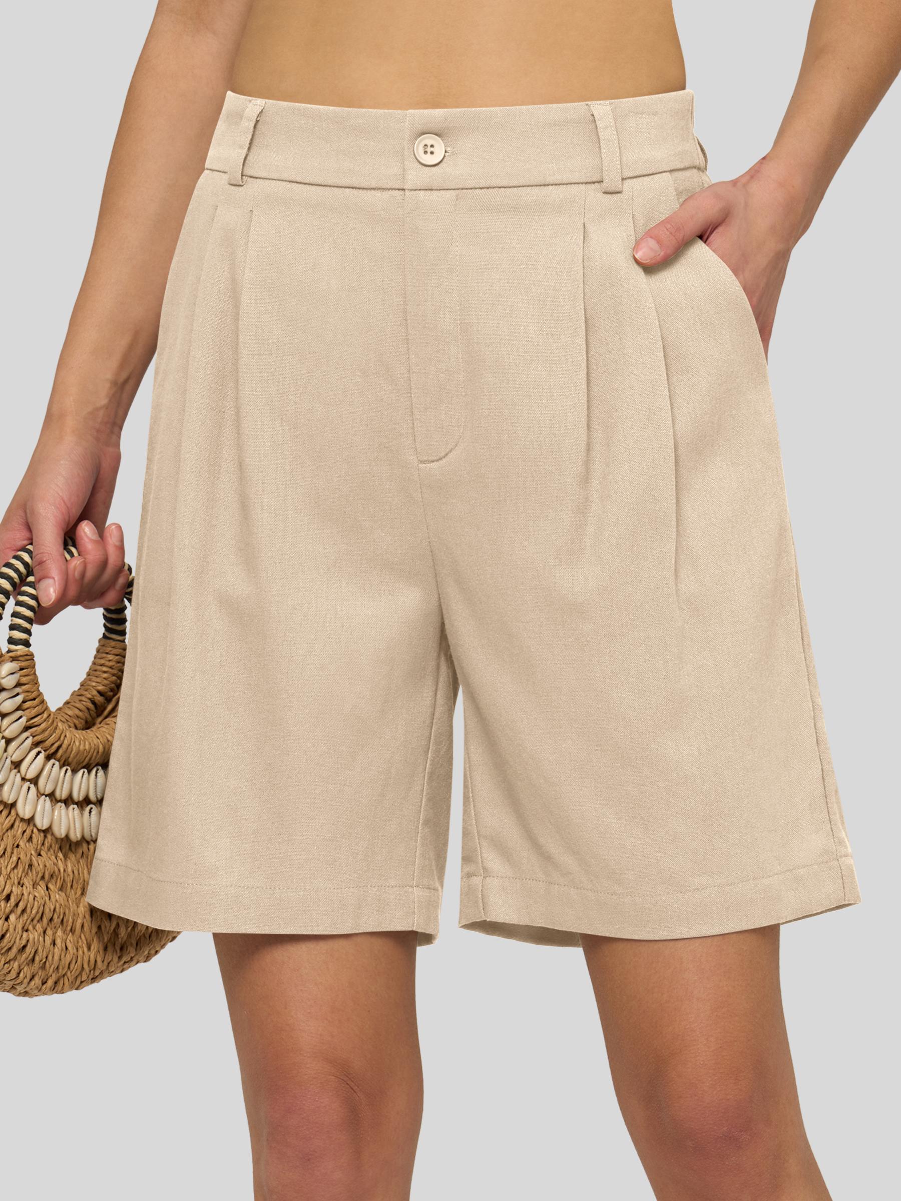 Women's Pleated Linen Shorts 10 Inch