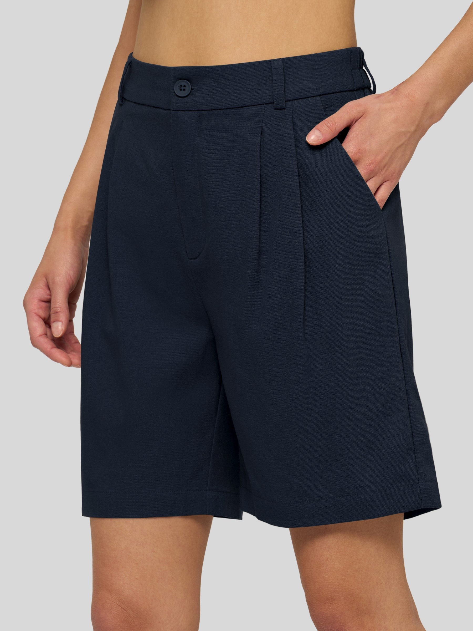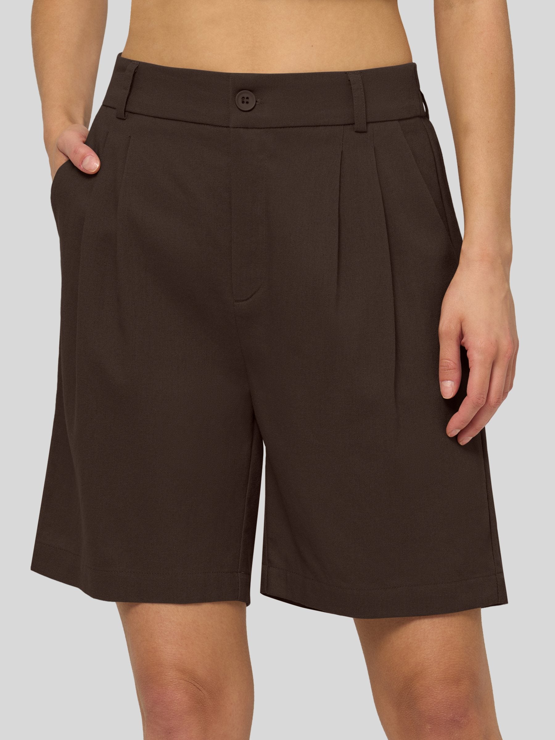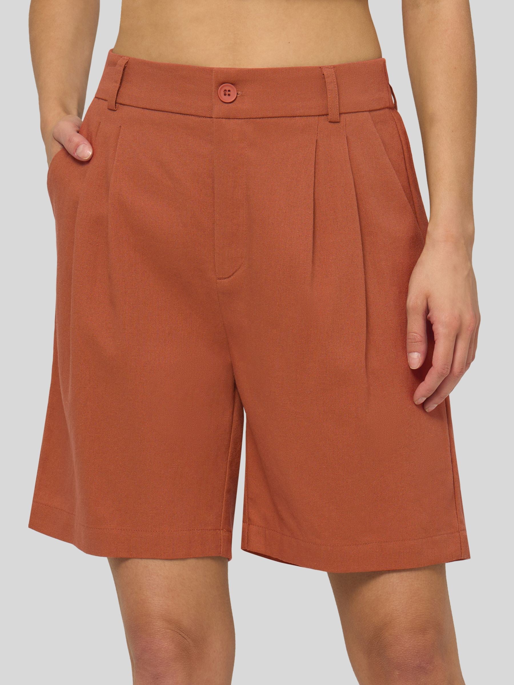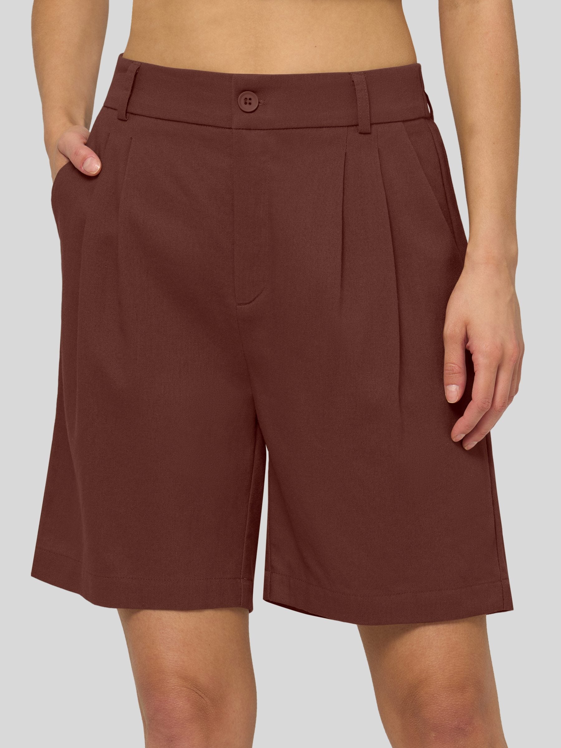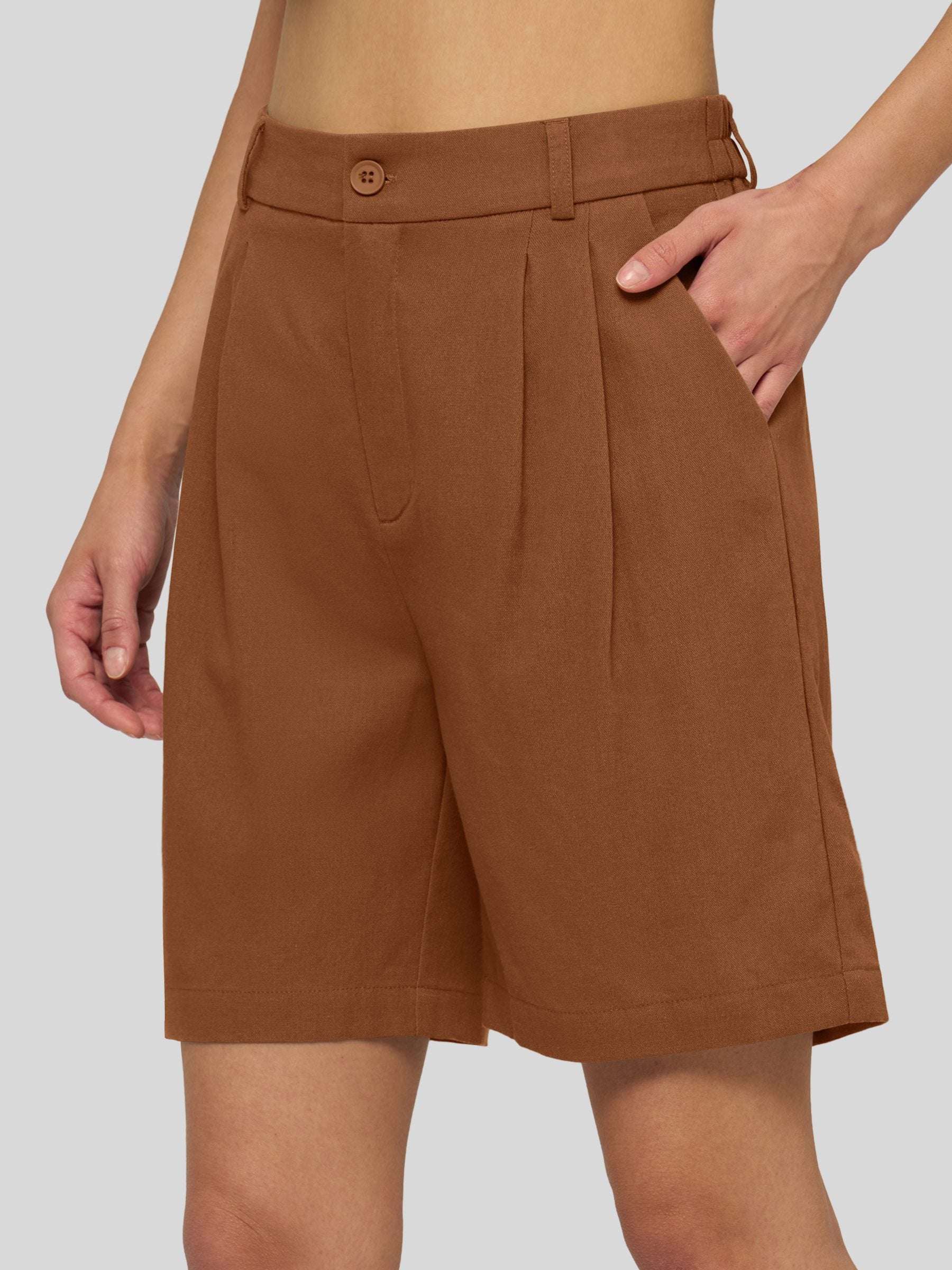 Women's Pleated Linen Shorts 10 Inch