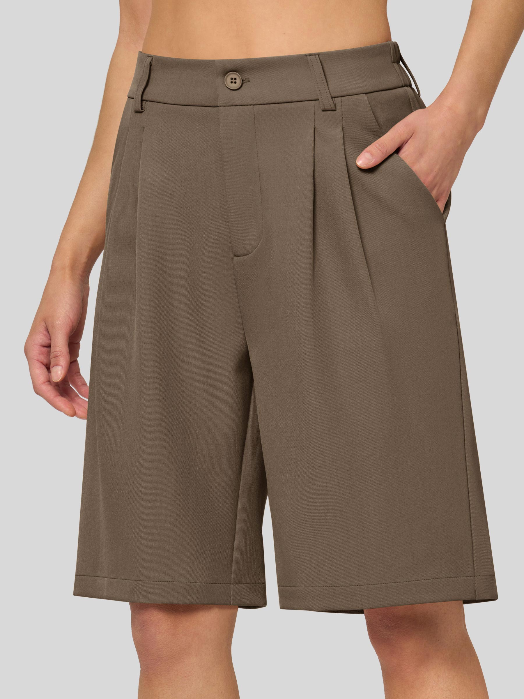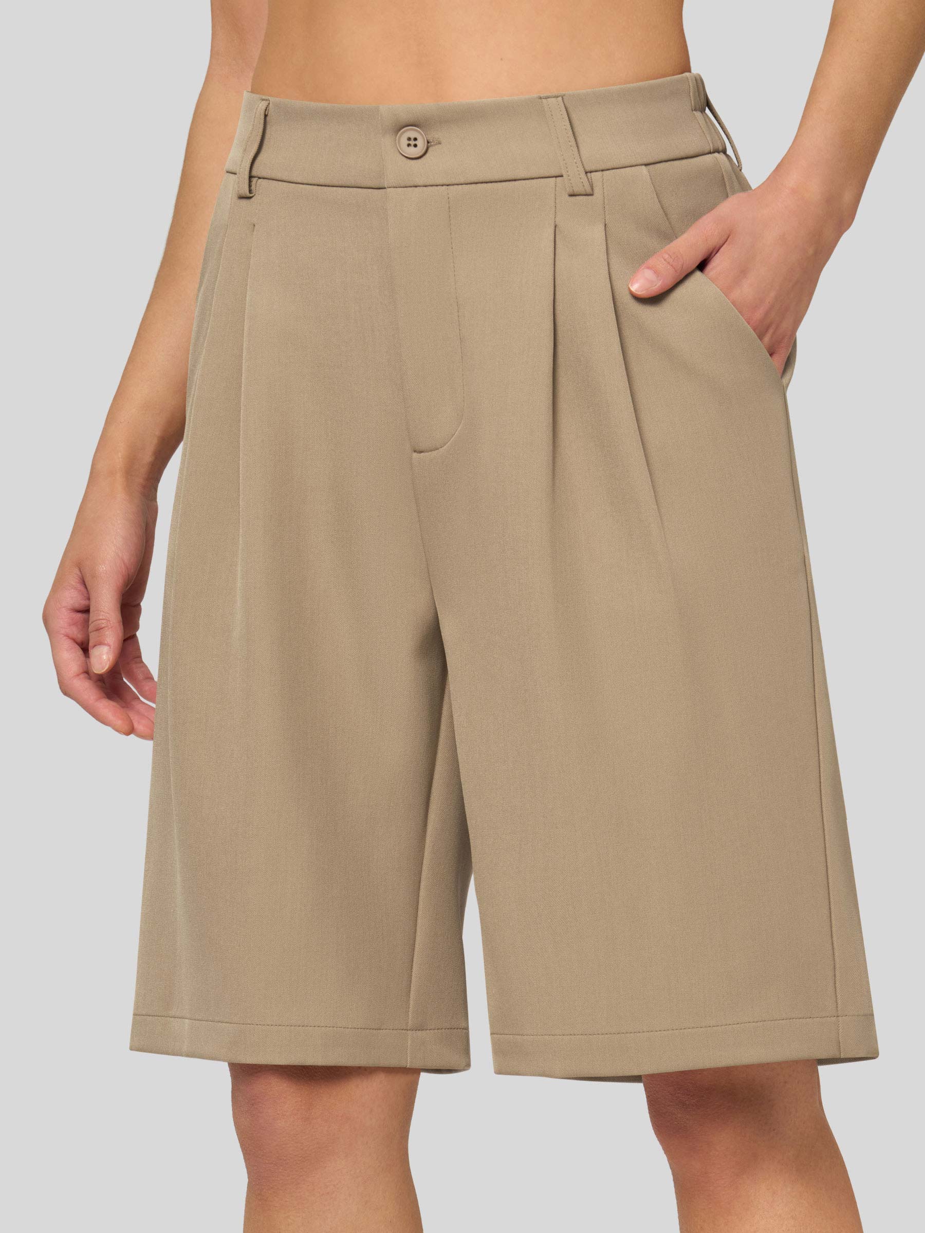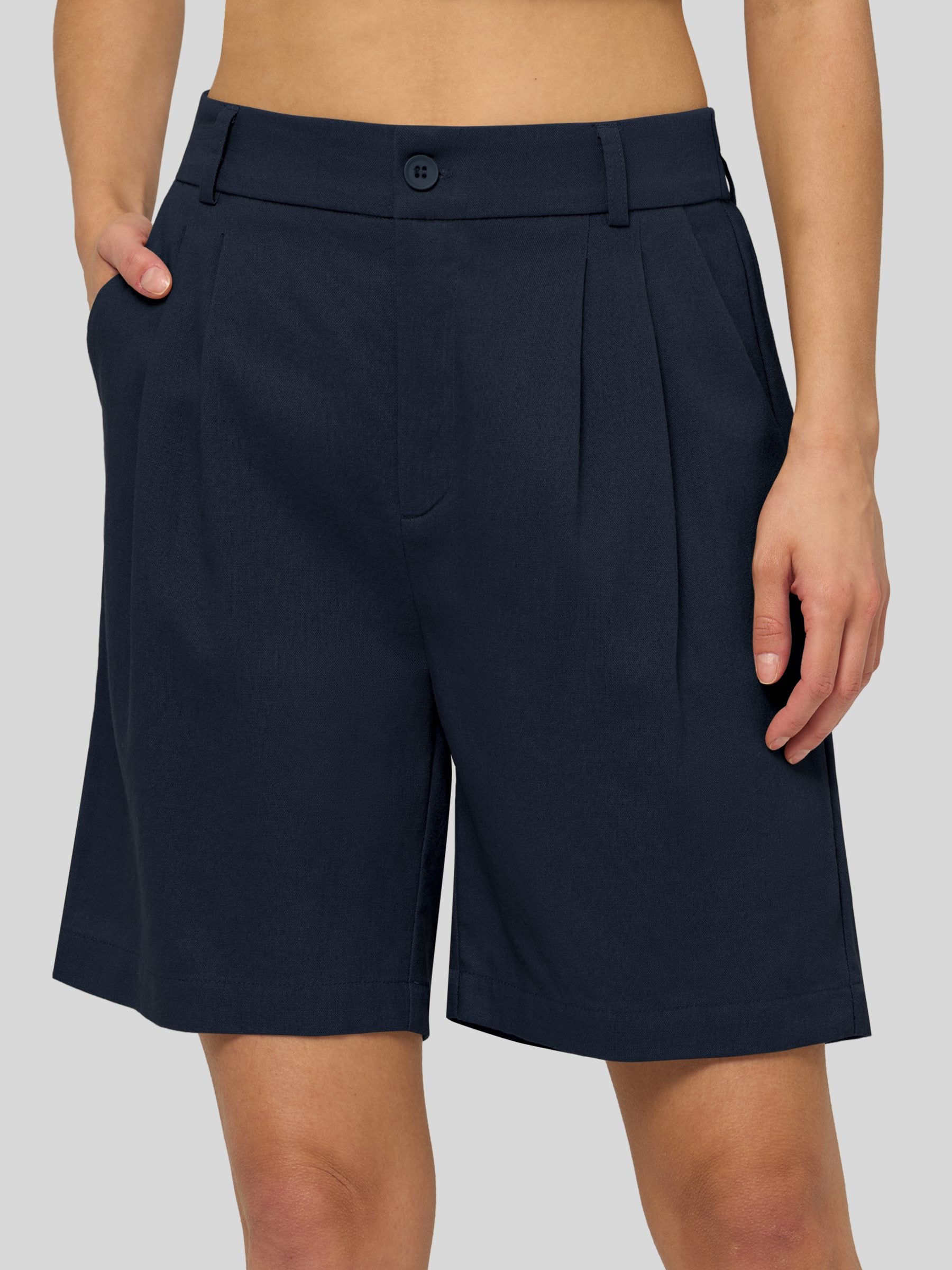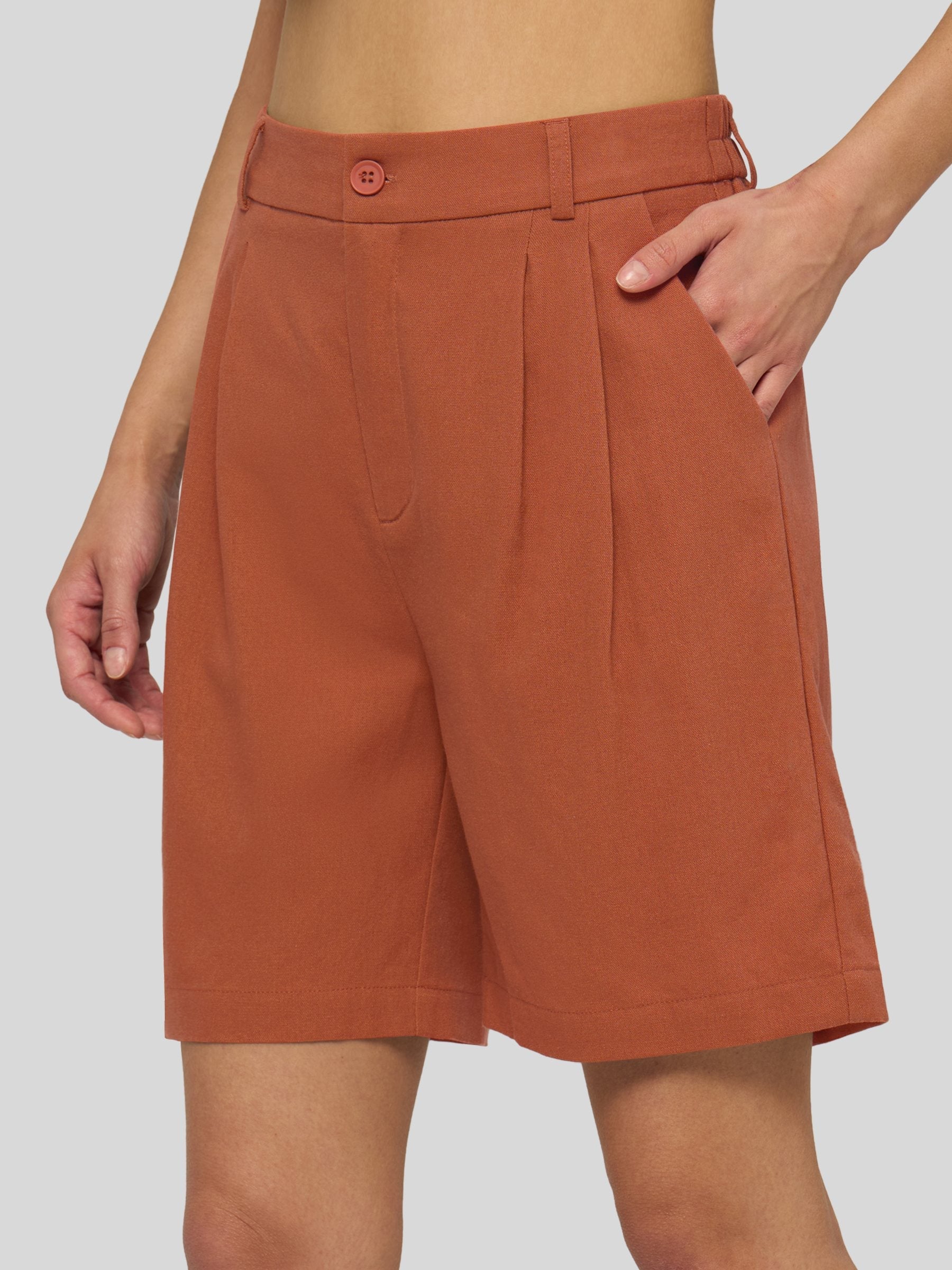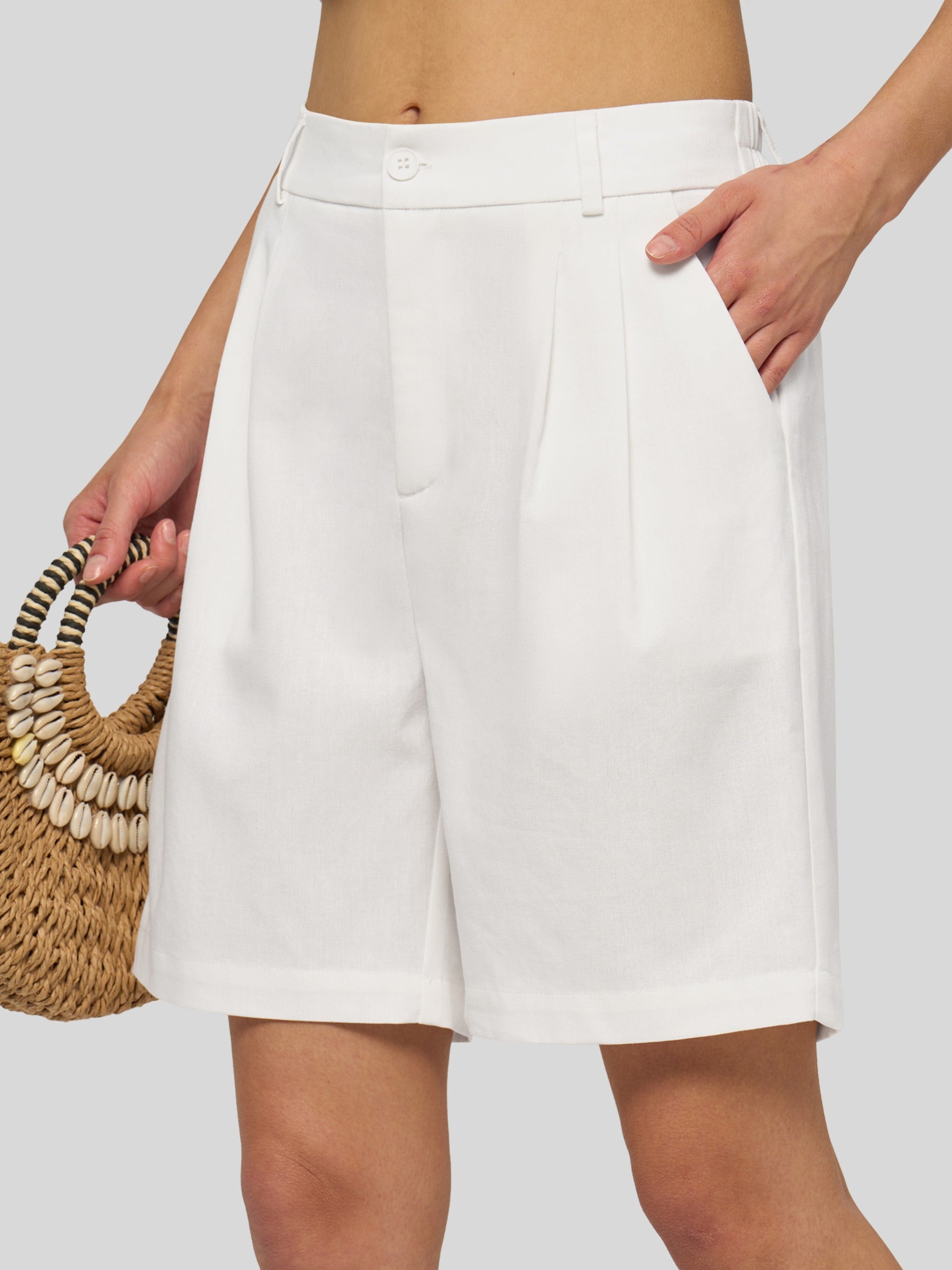 Women's Pleated Linen Shorts 10 Inch