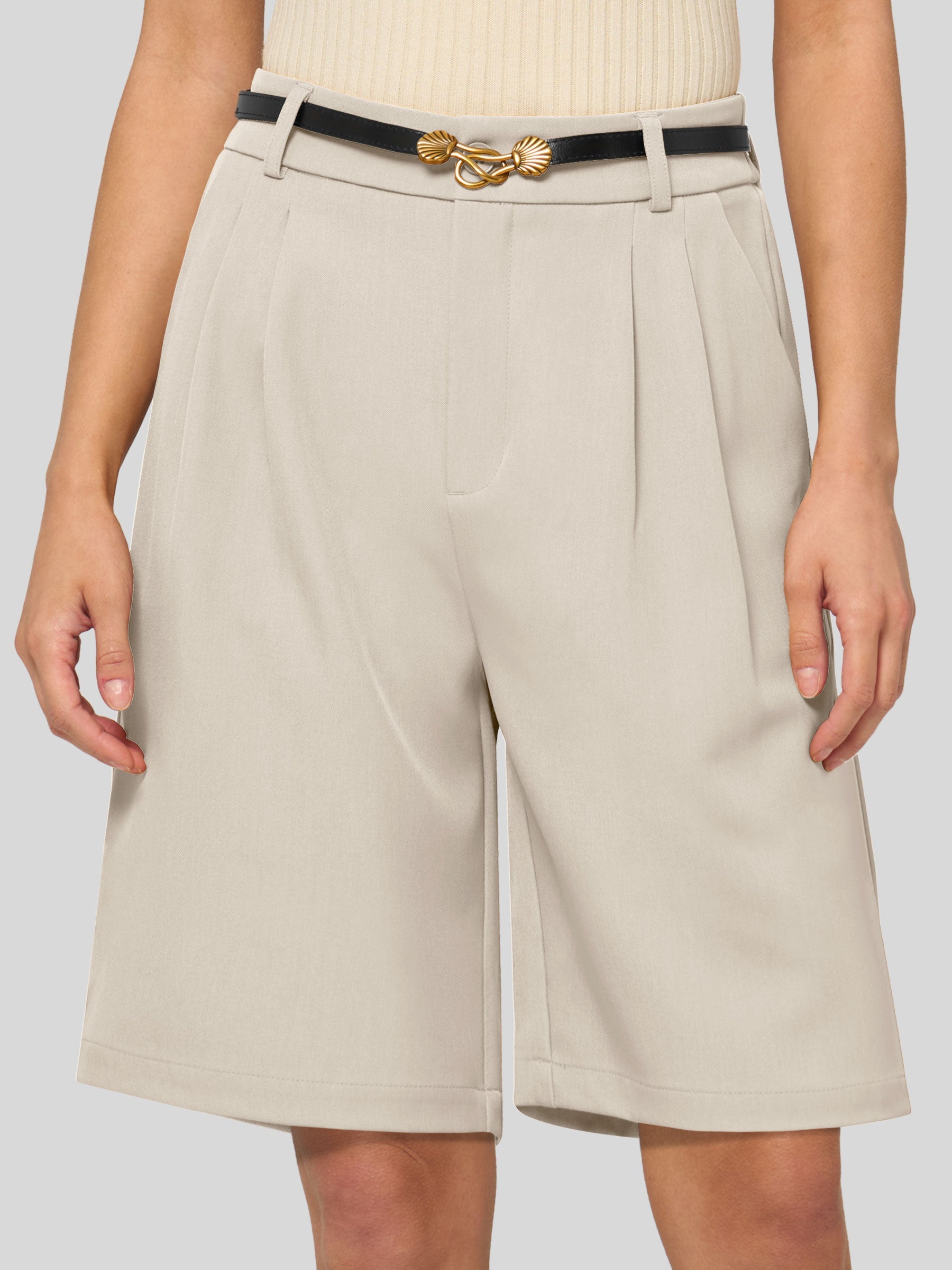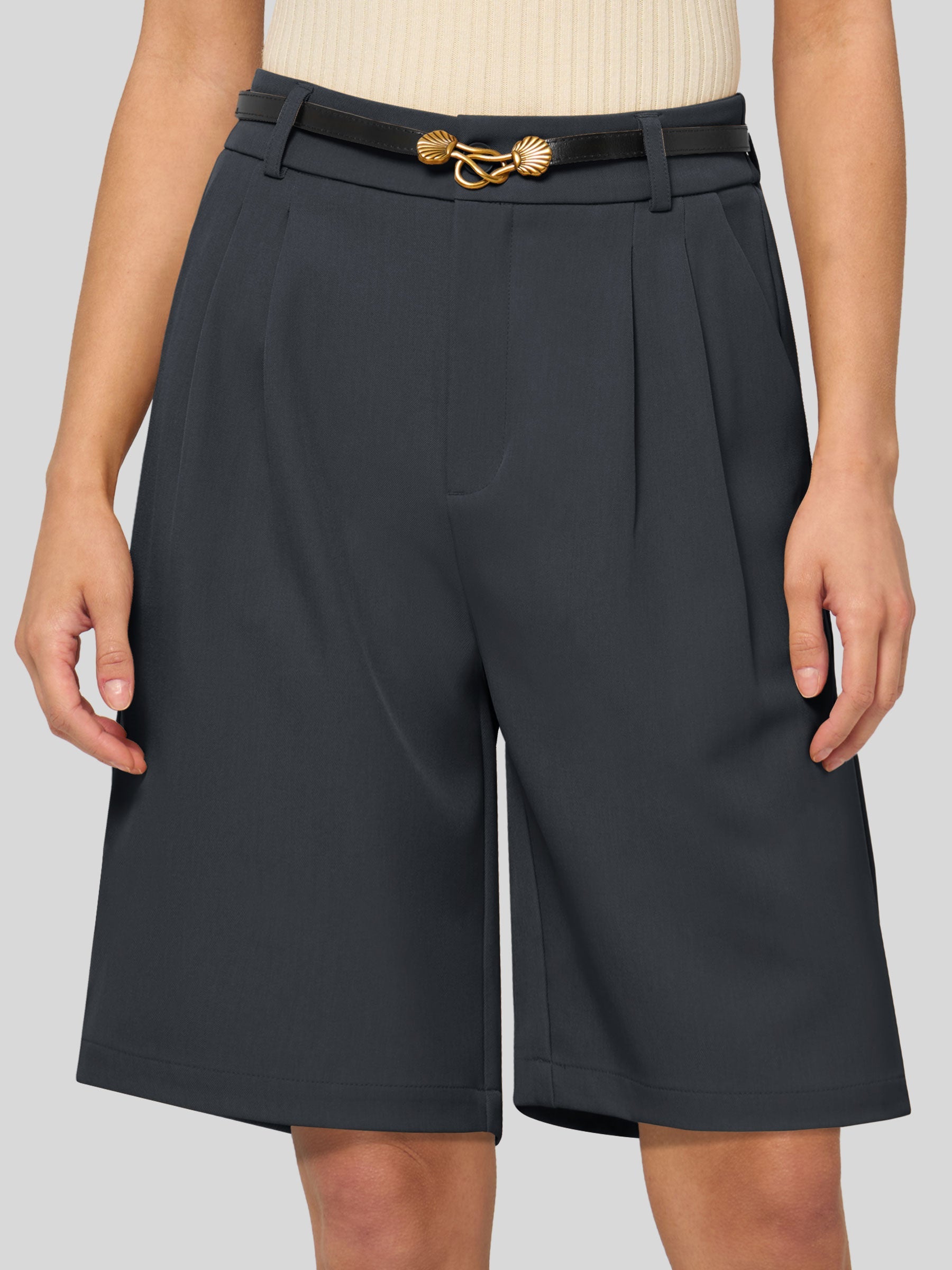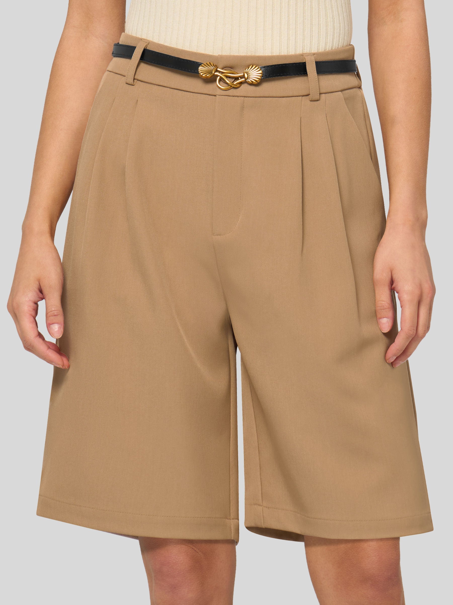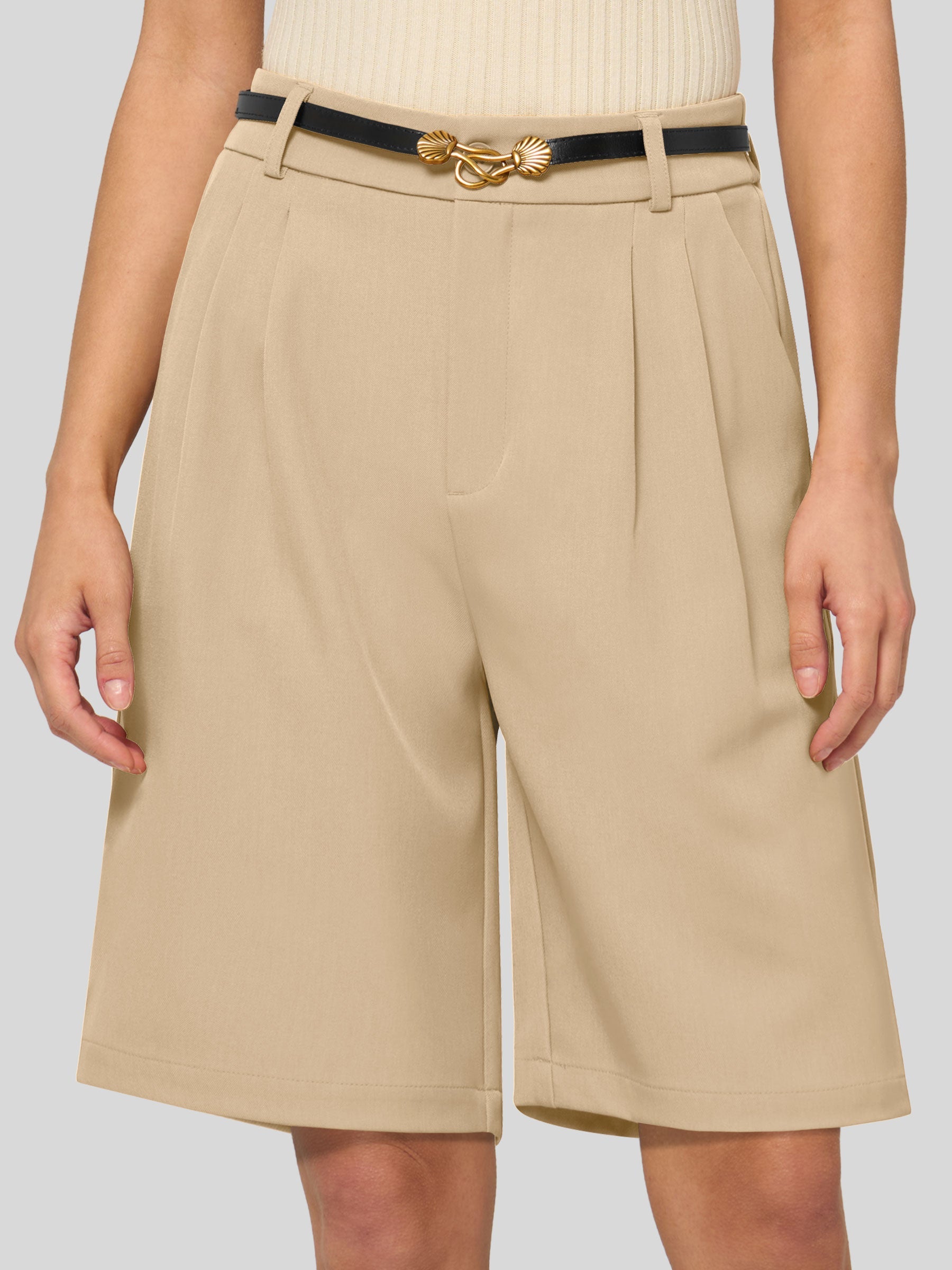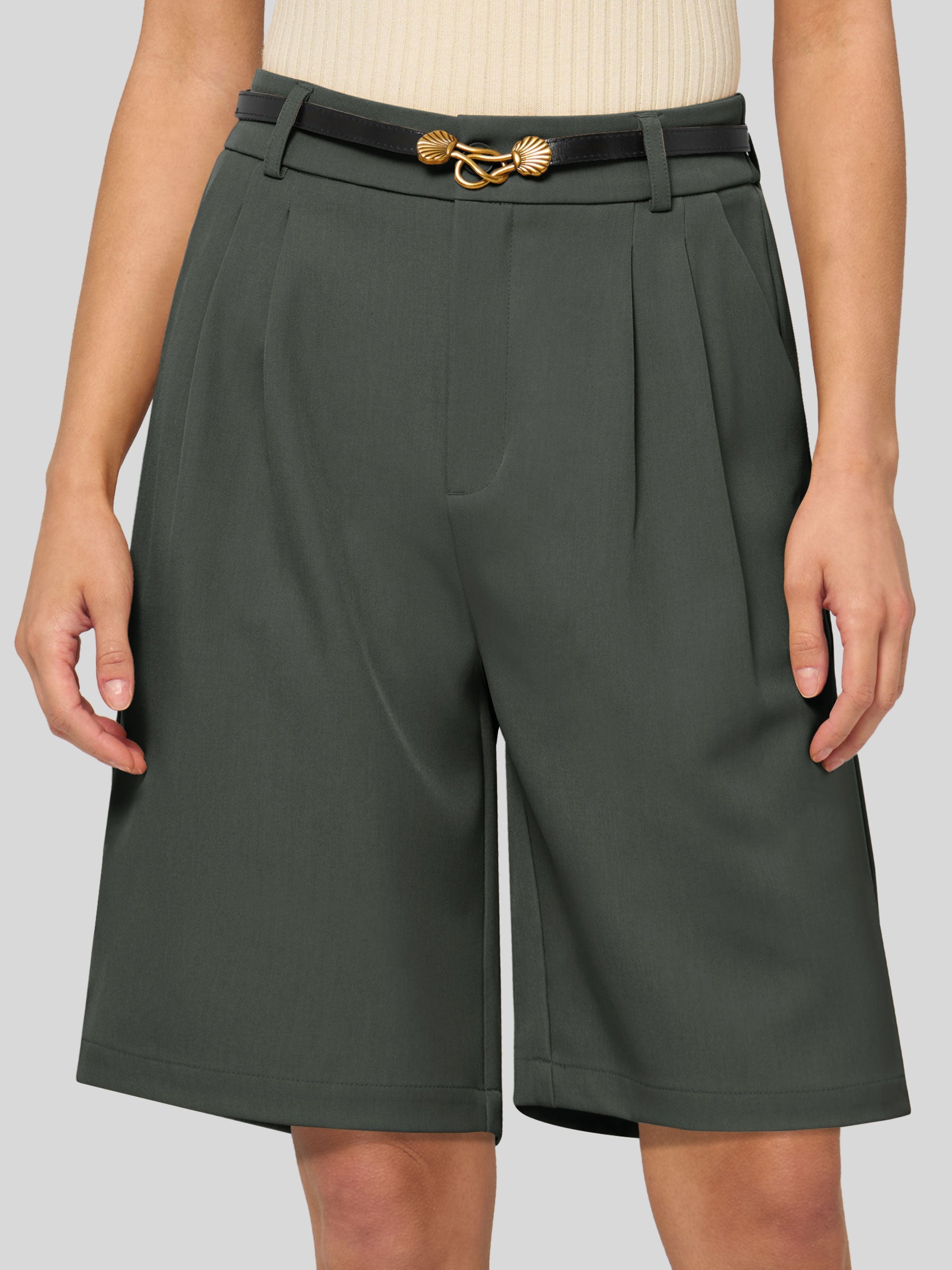 Women's Pleated Linen Shorts 10 Inch