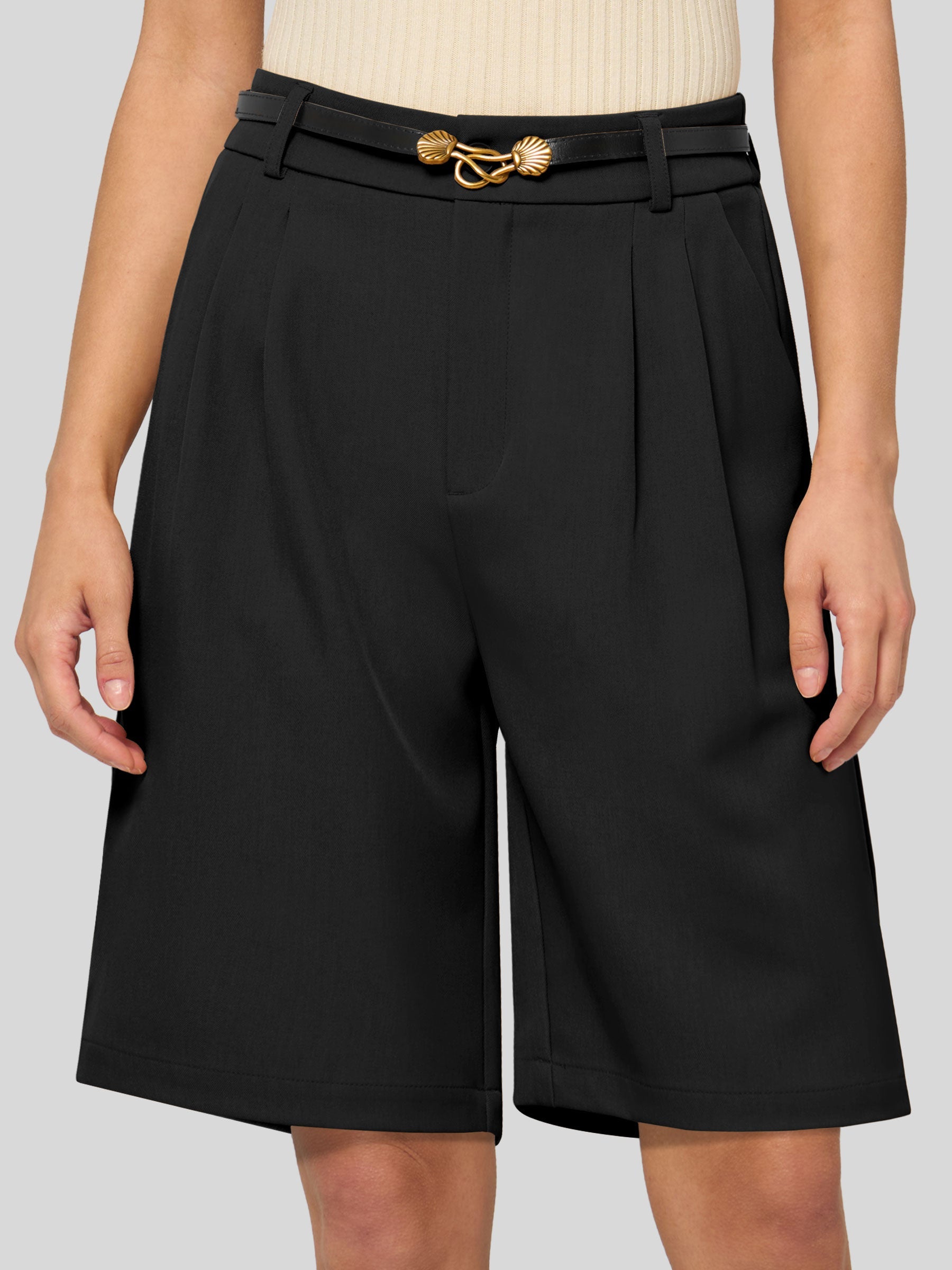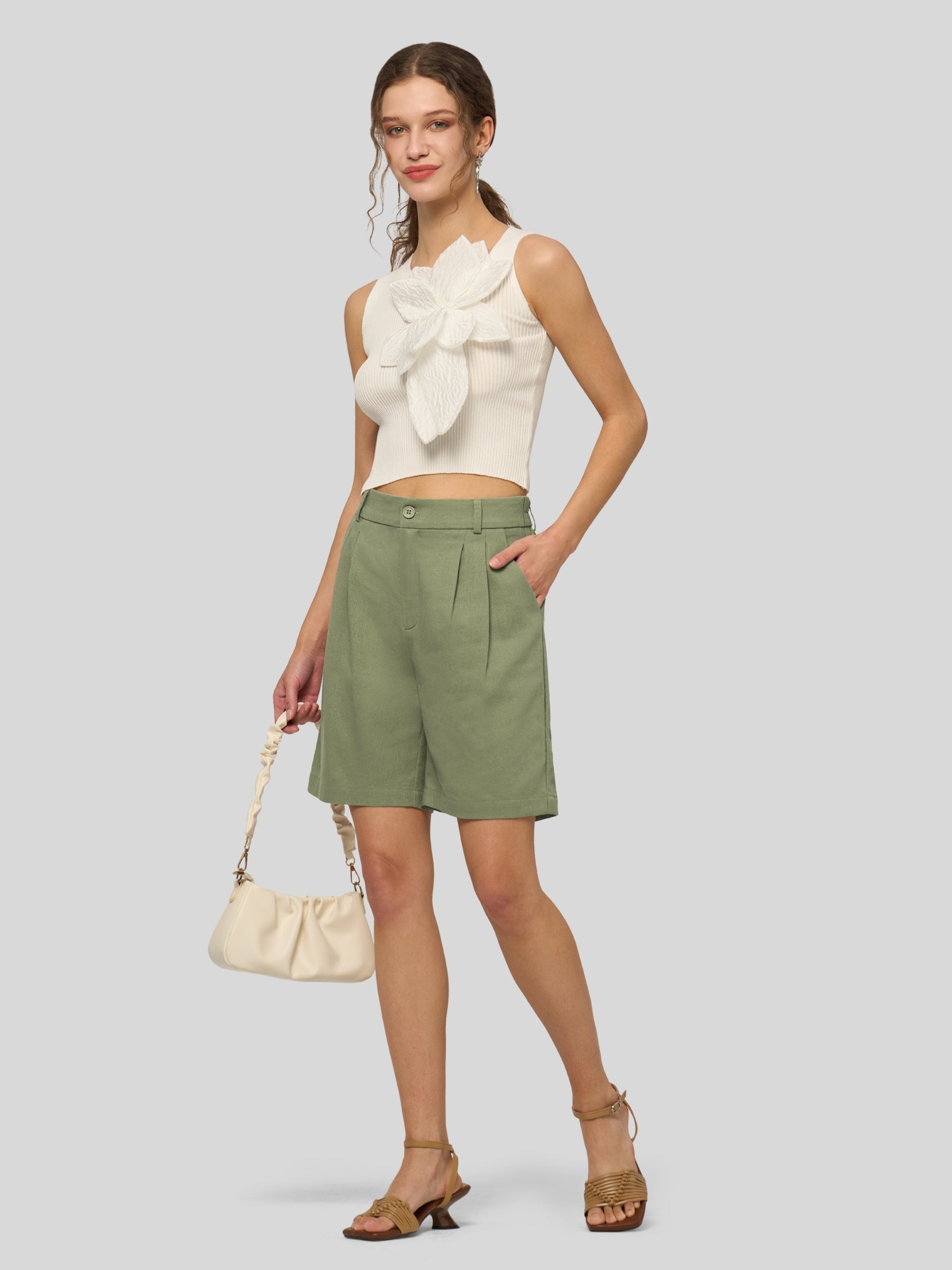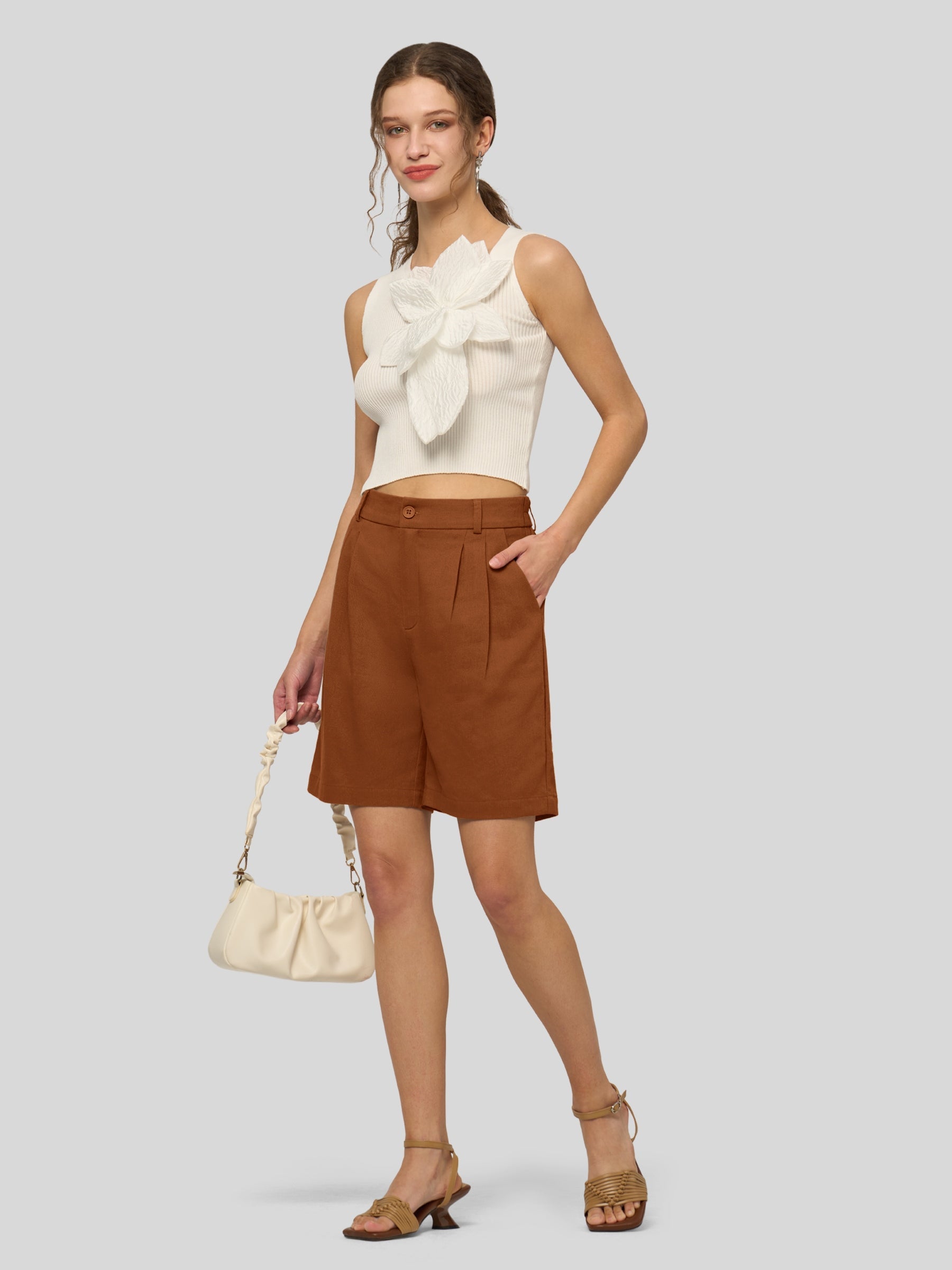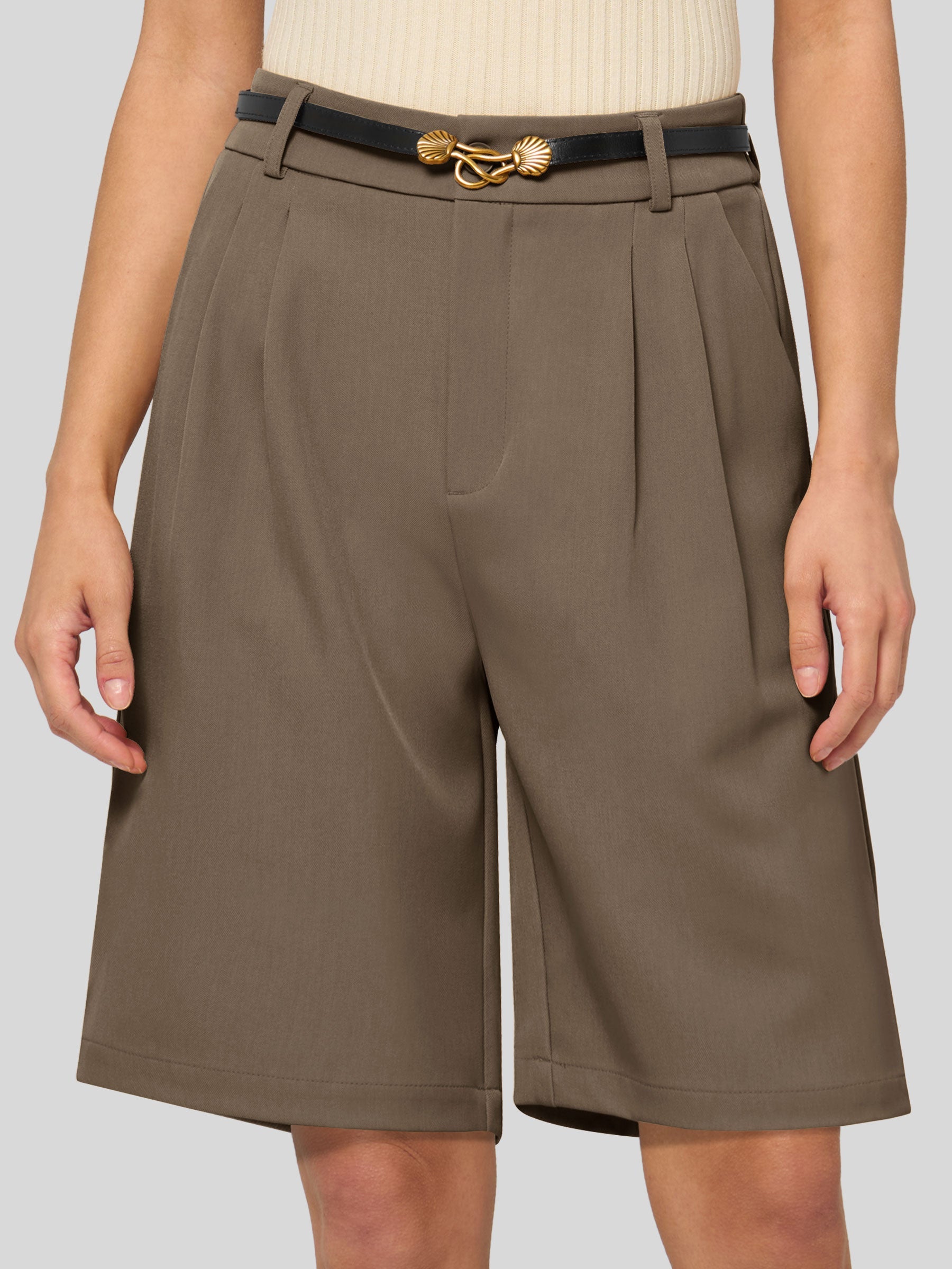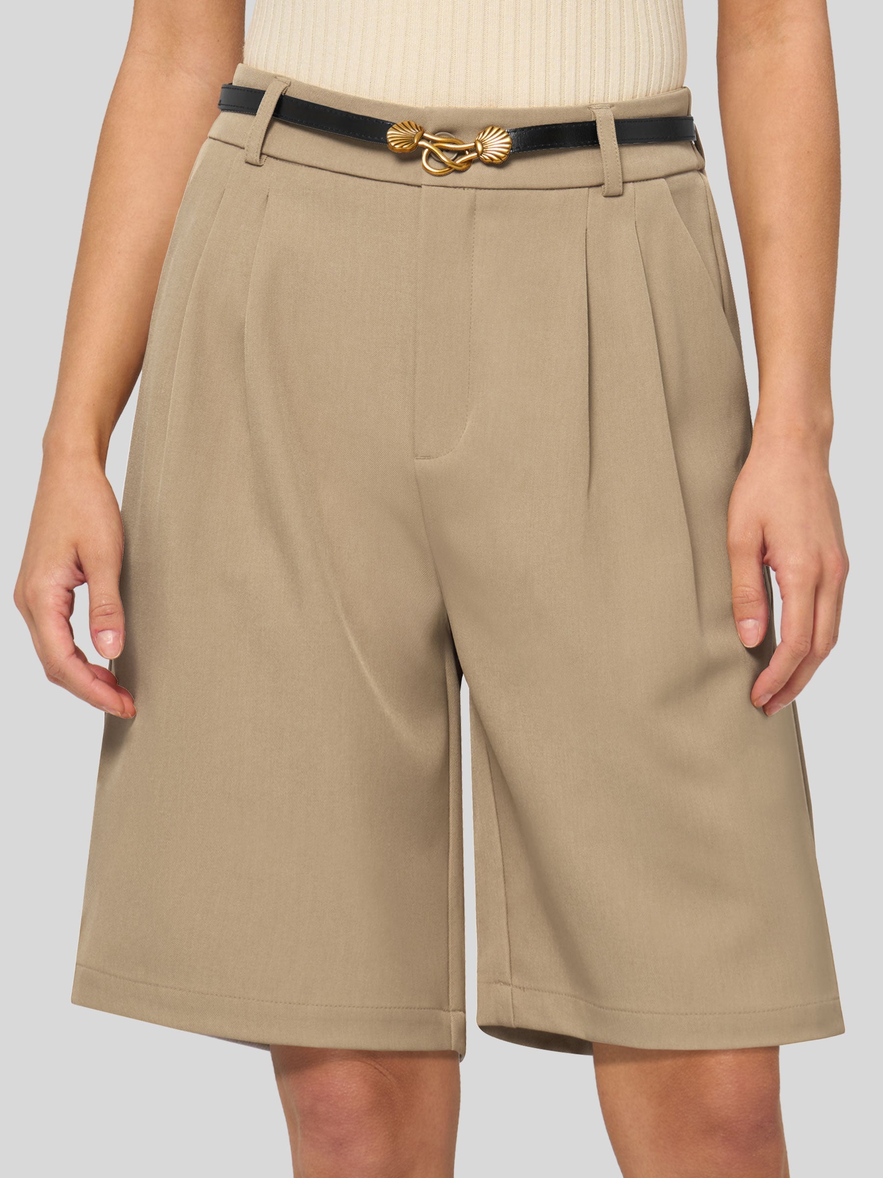 Women's Pleated Linen Shorts 10 Inch