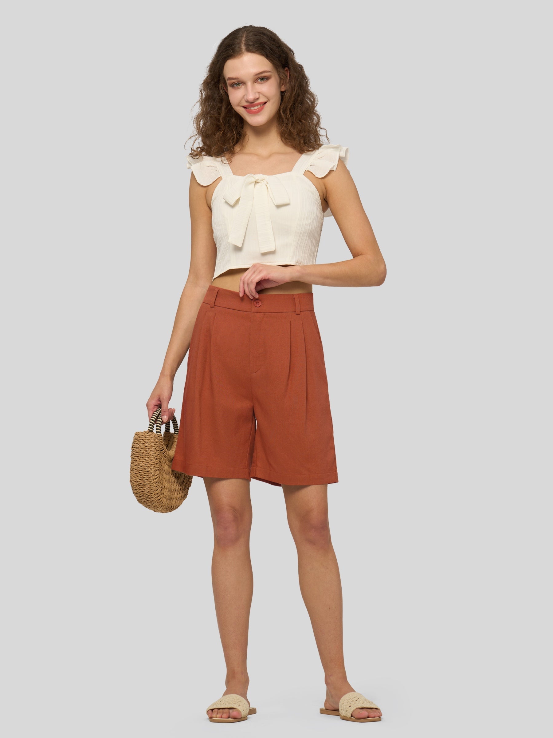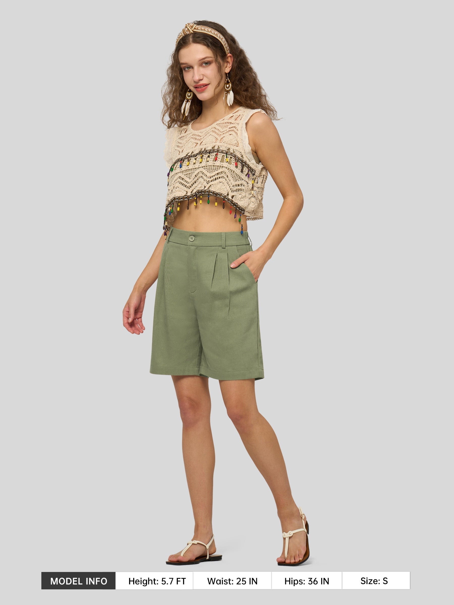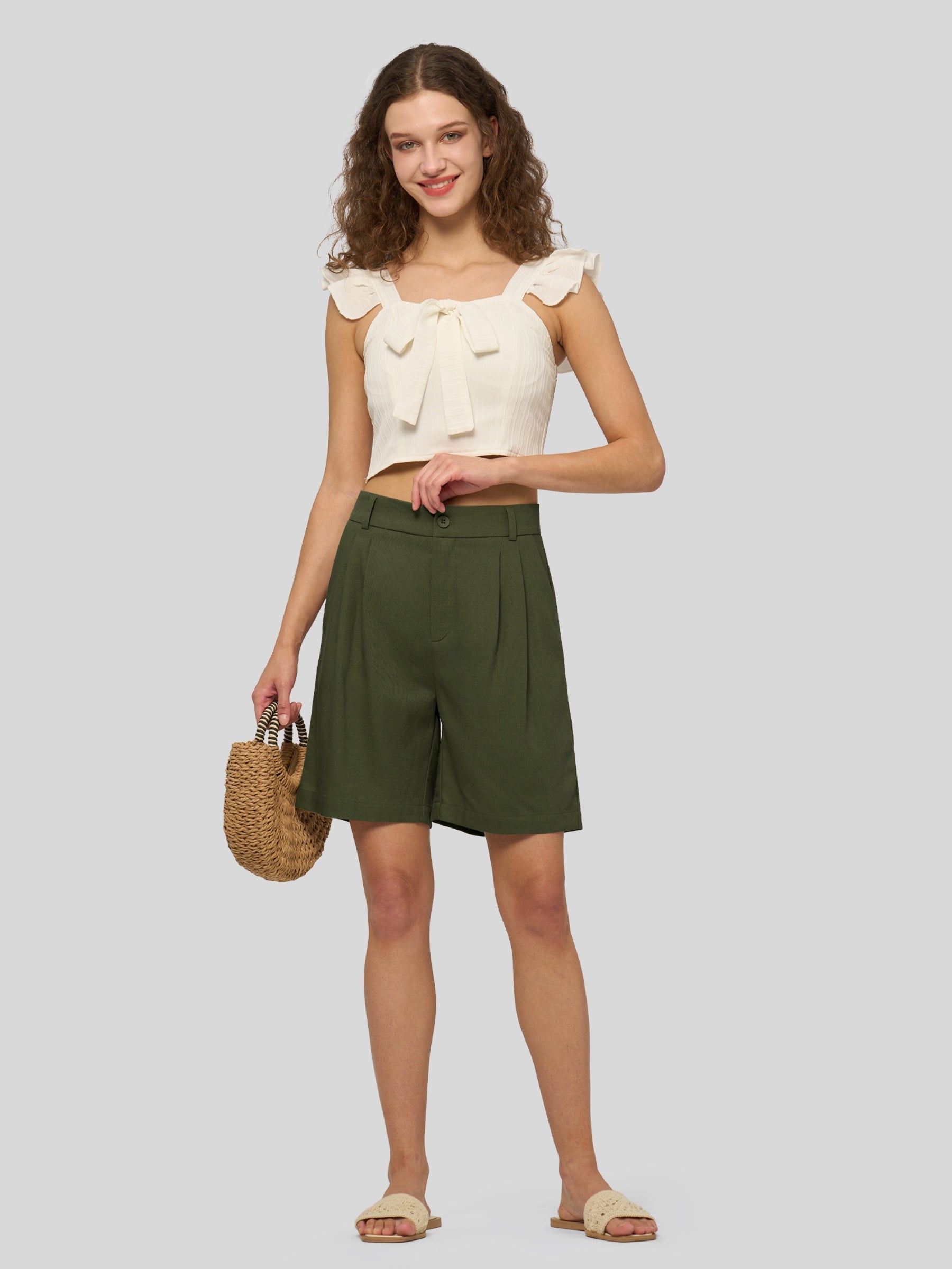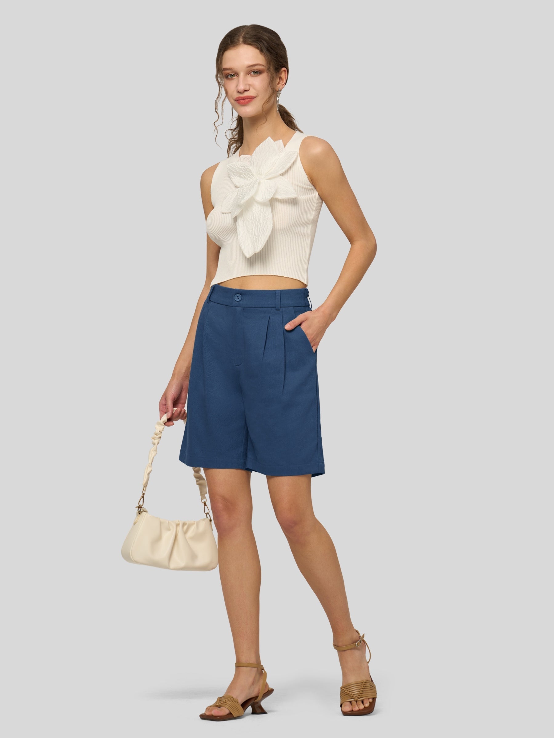 Women's Pleated Linen Shorts 10 Inch