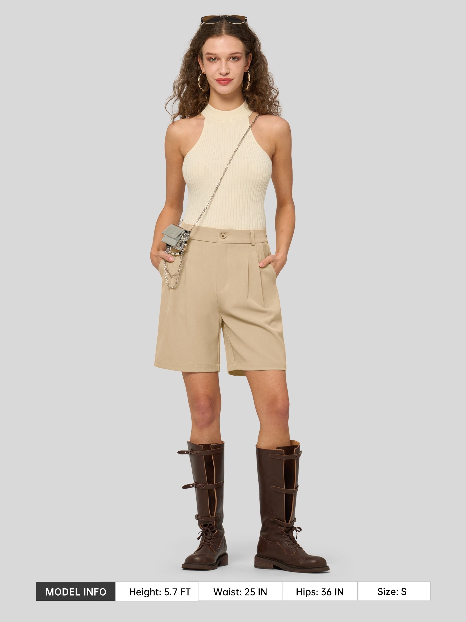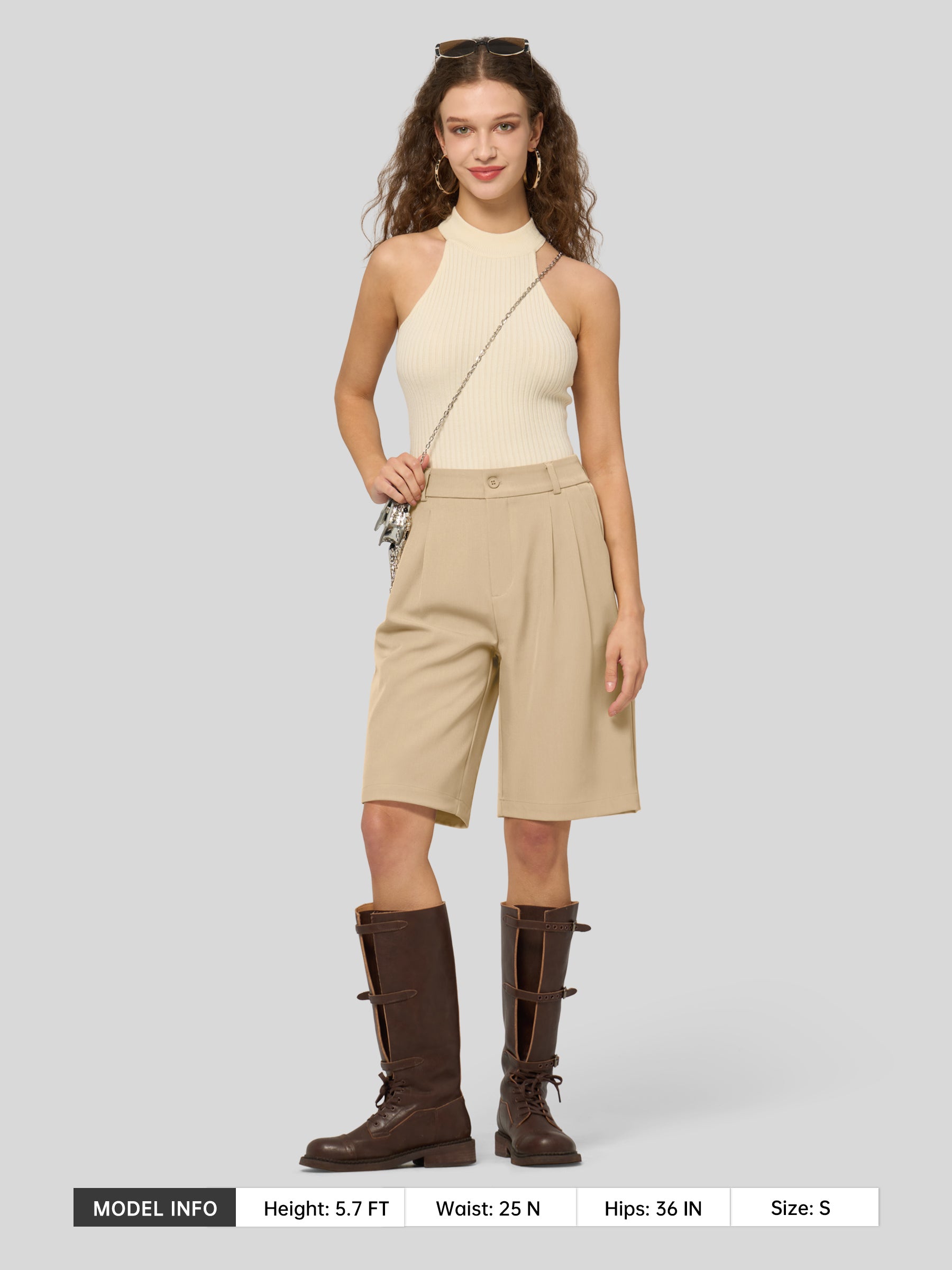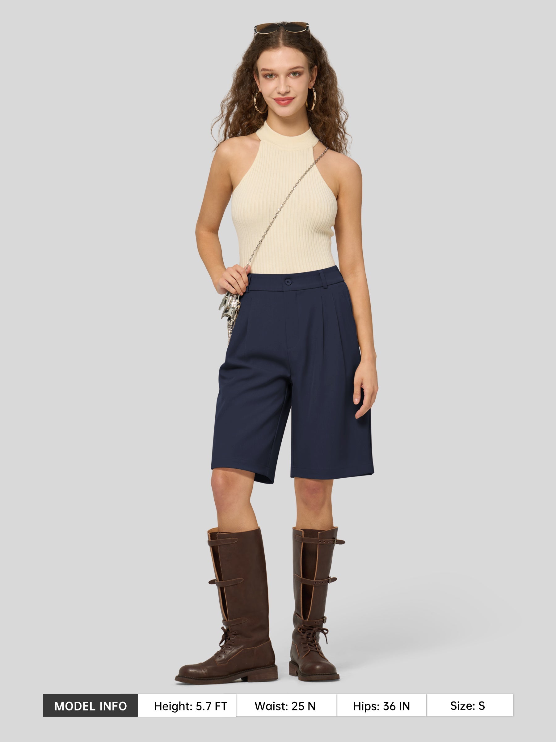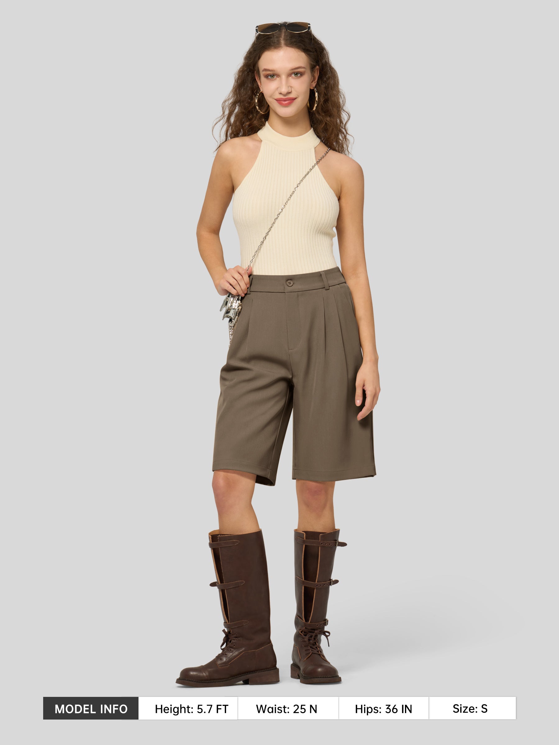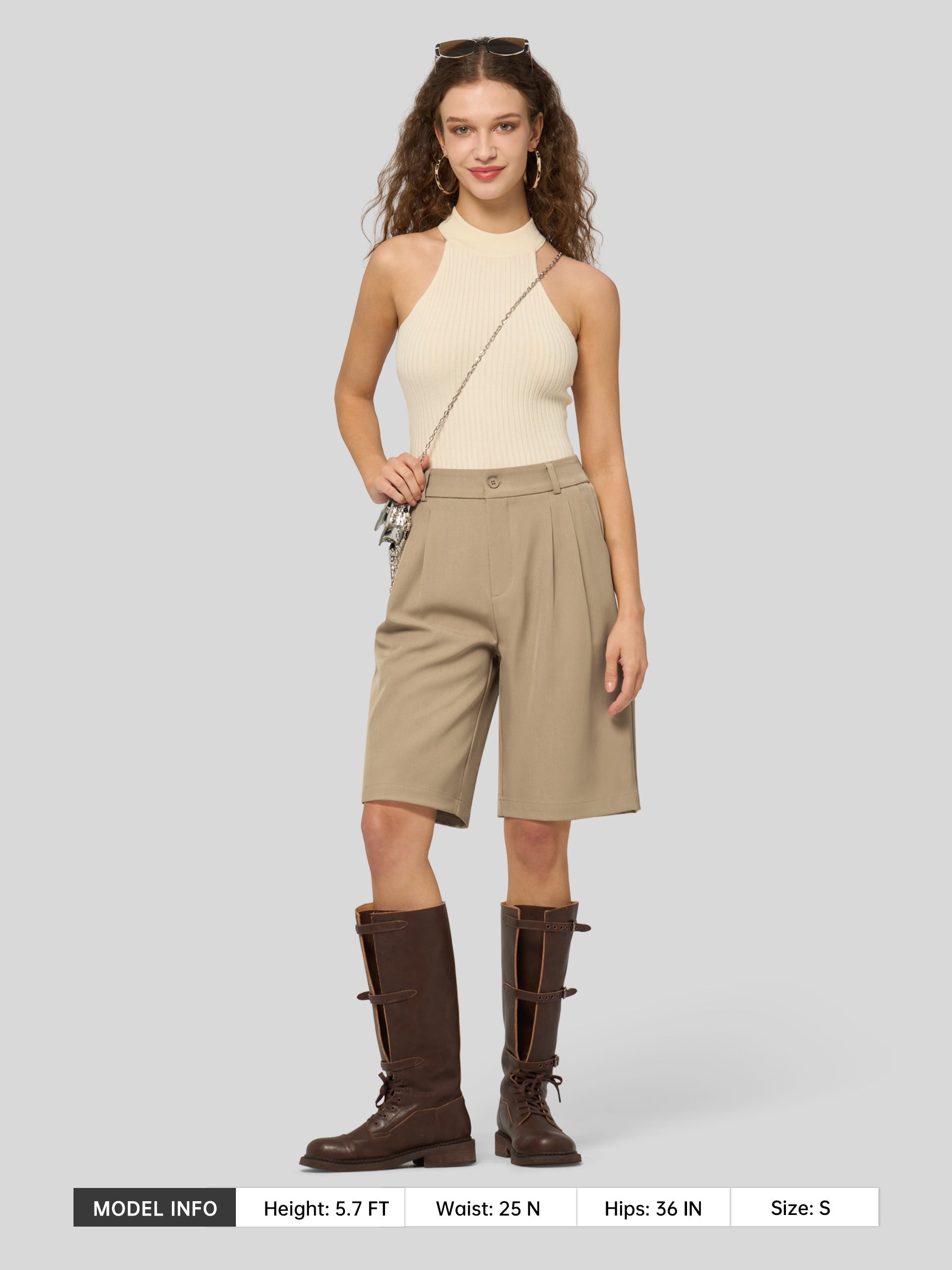 Women's Pleated Linen Shorts 10 Inch