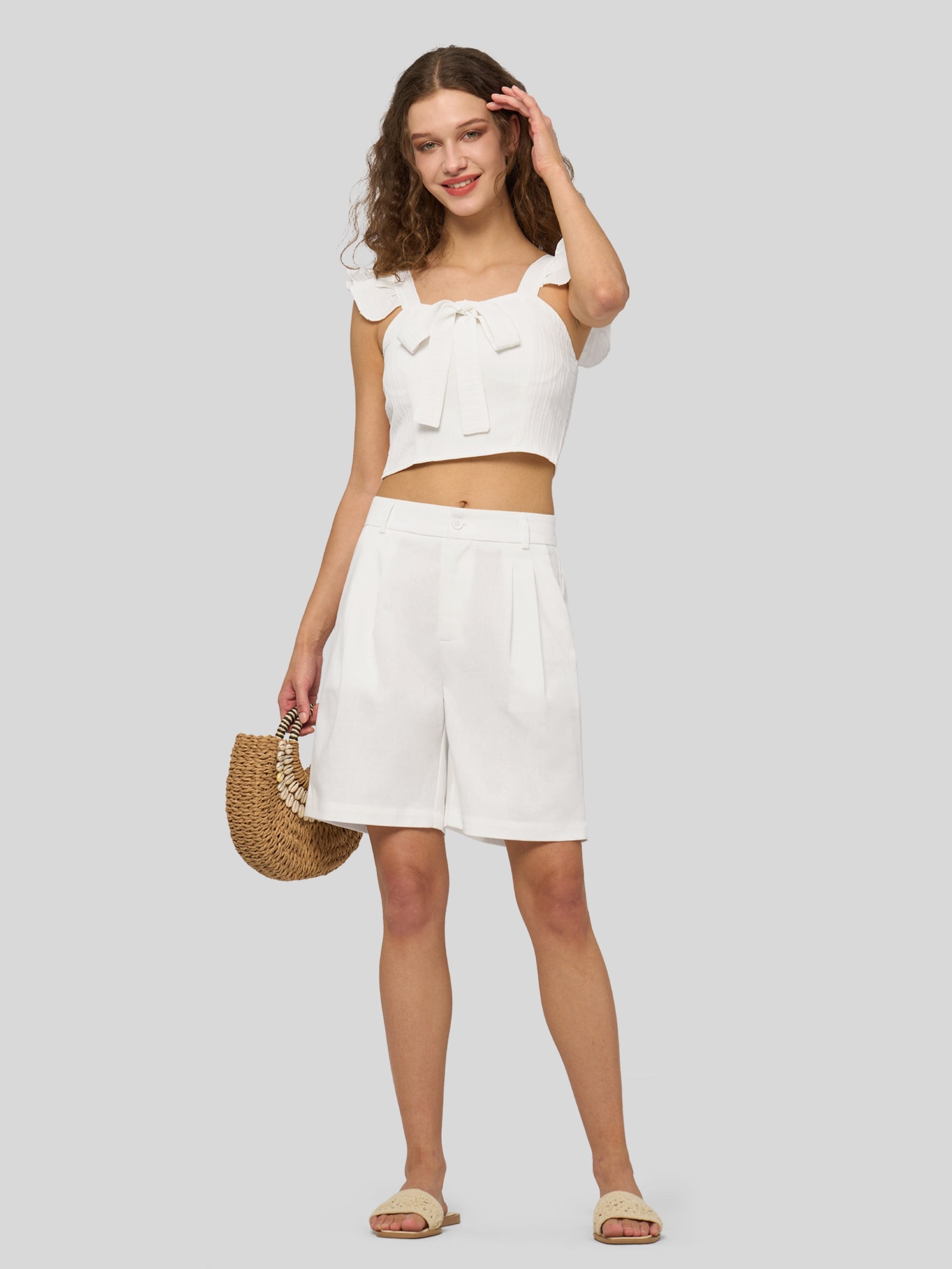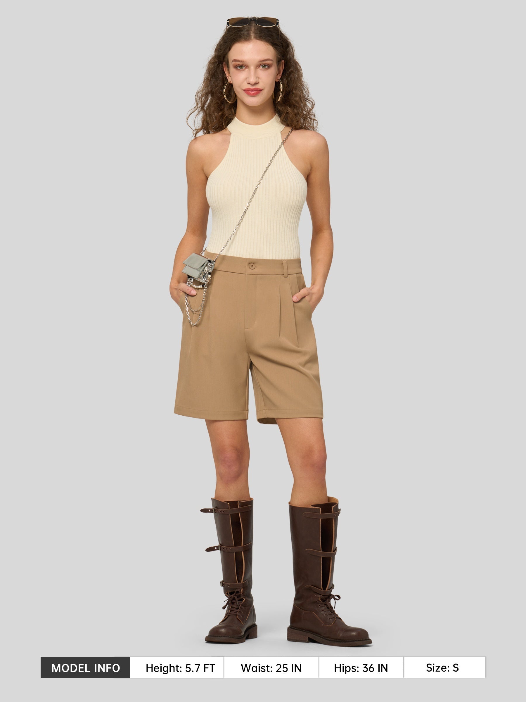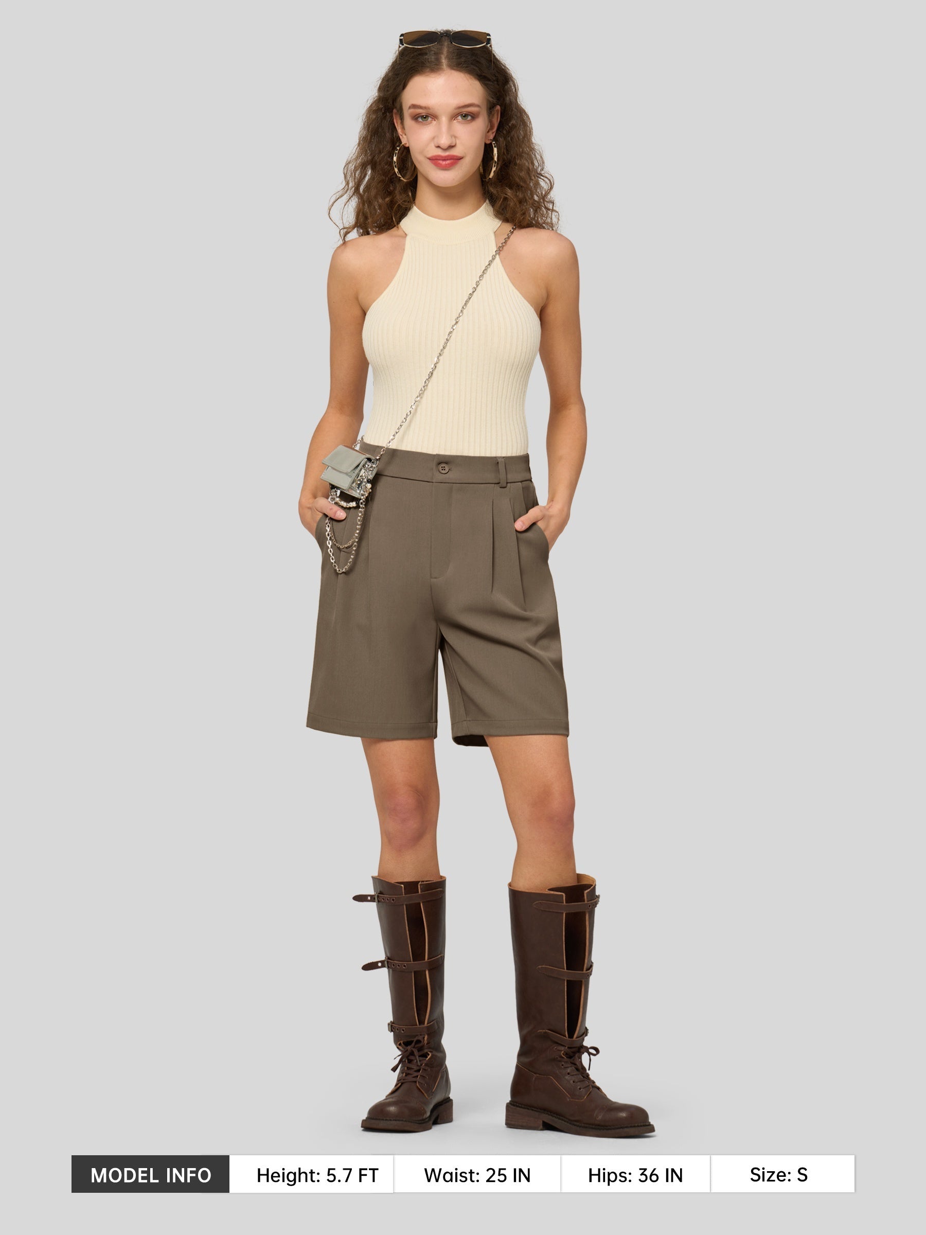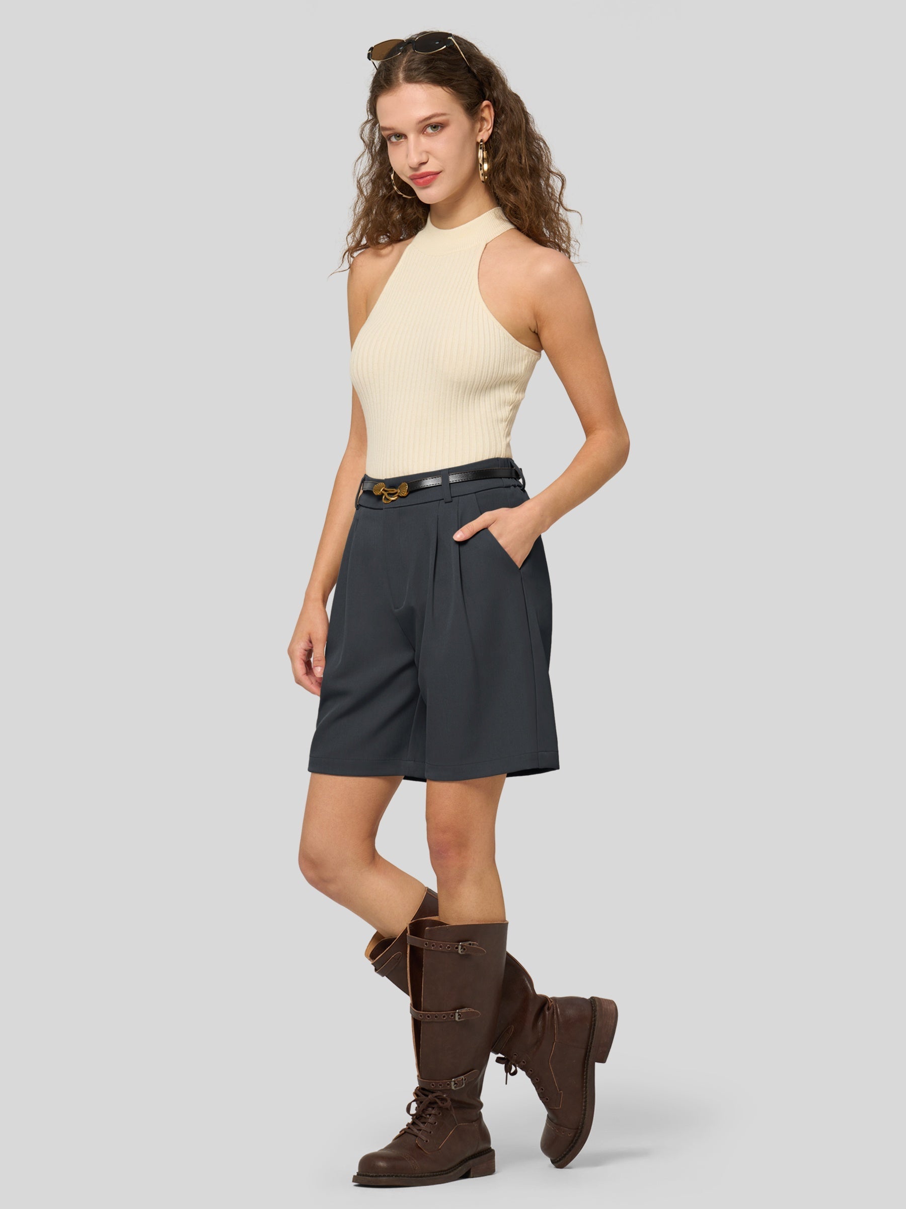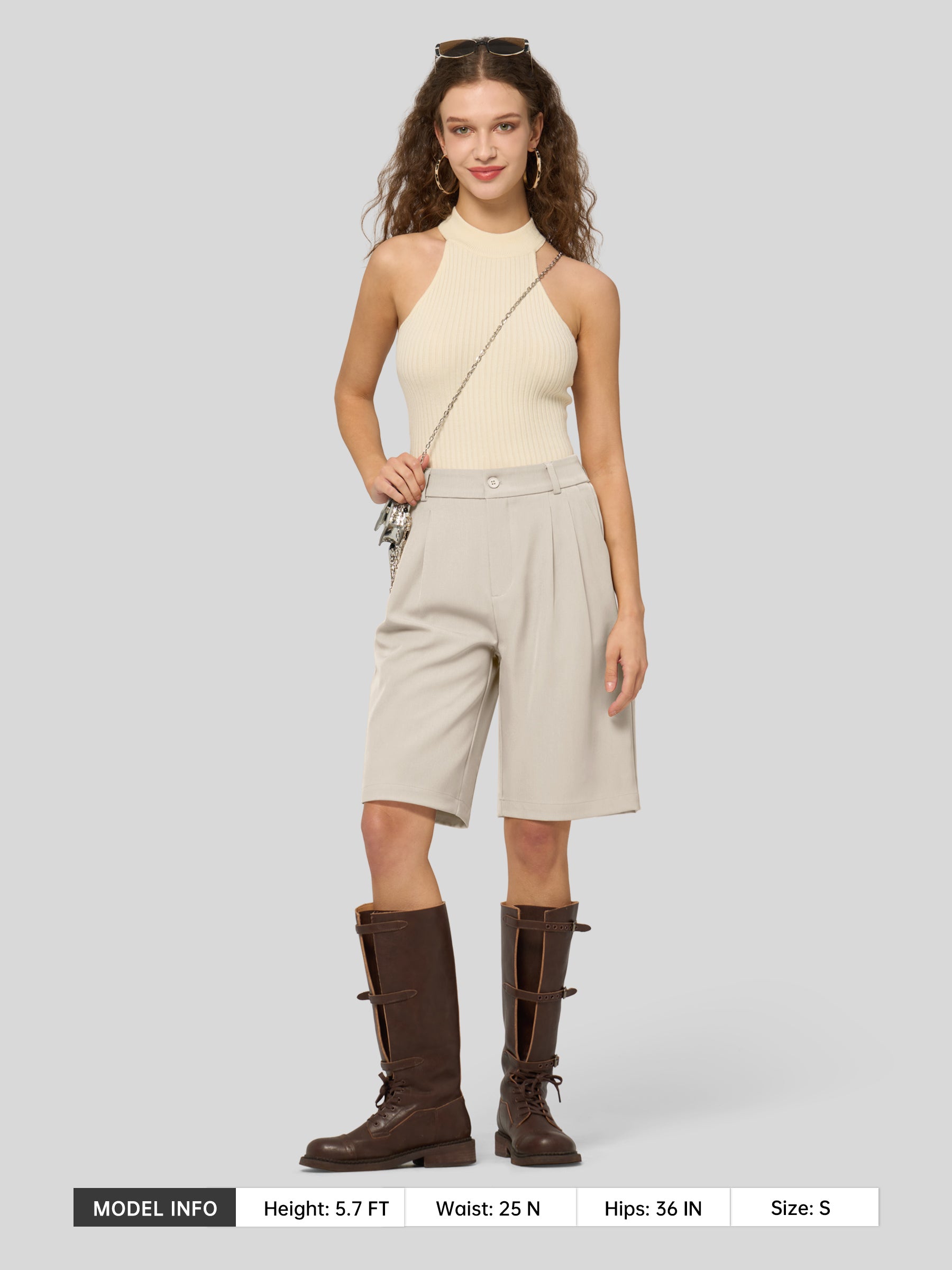 Women's Pleated Linen Shorts 10 Inch