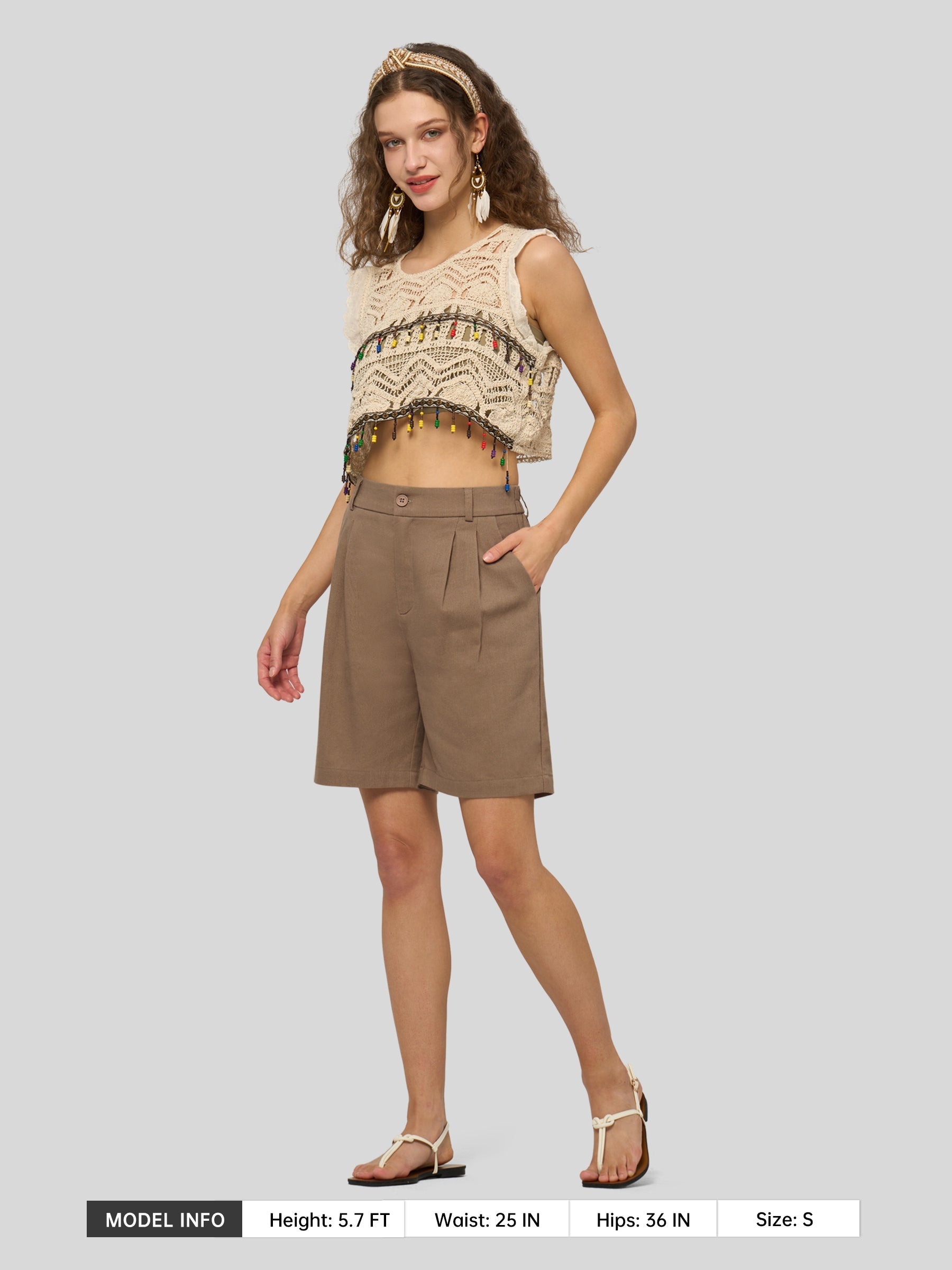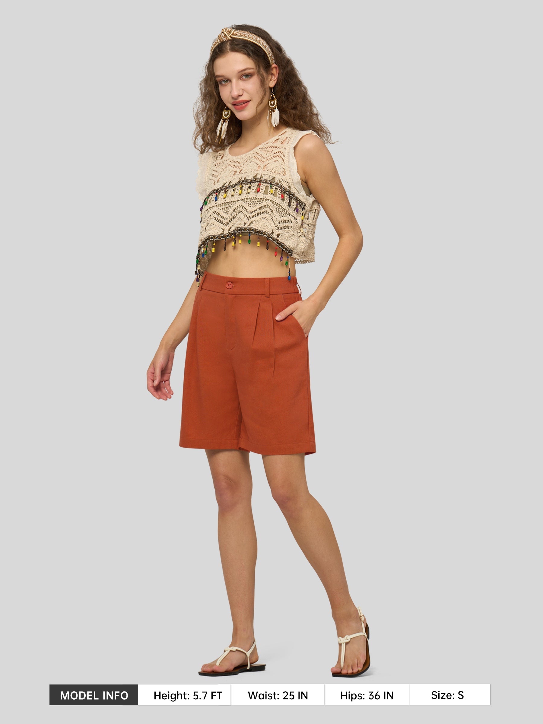 Women's Pleated Linen Shorts 7 Inch