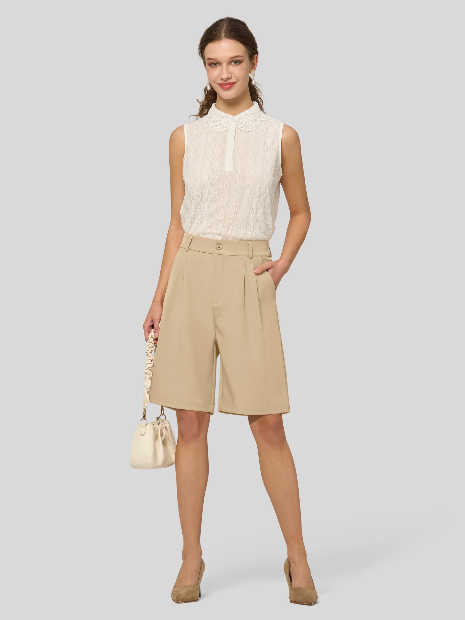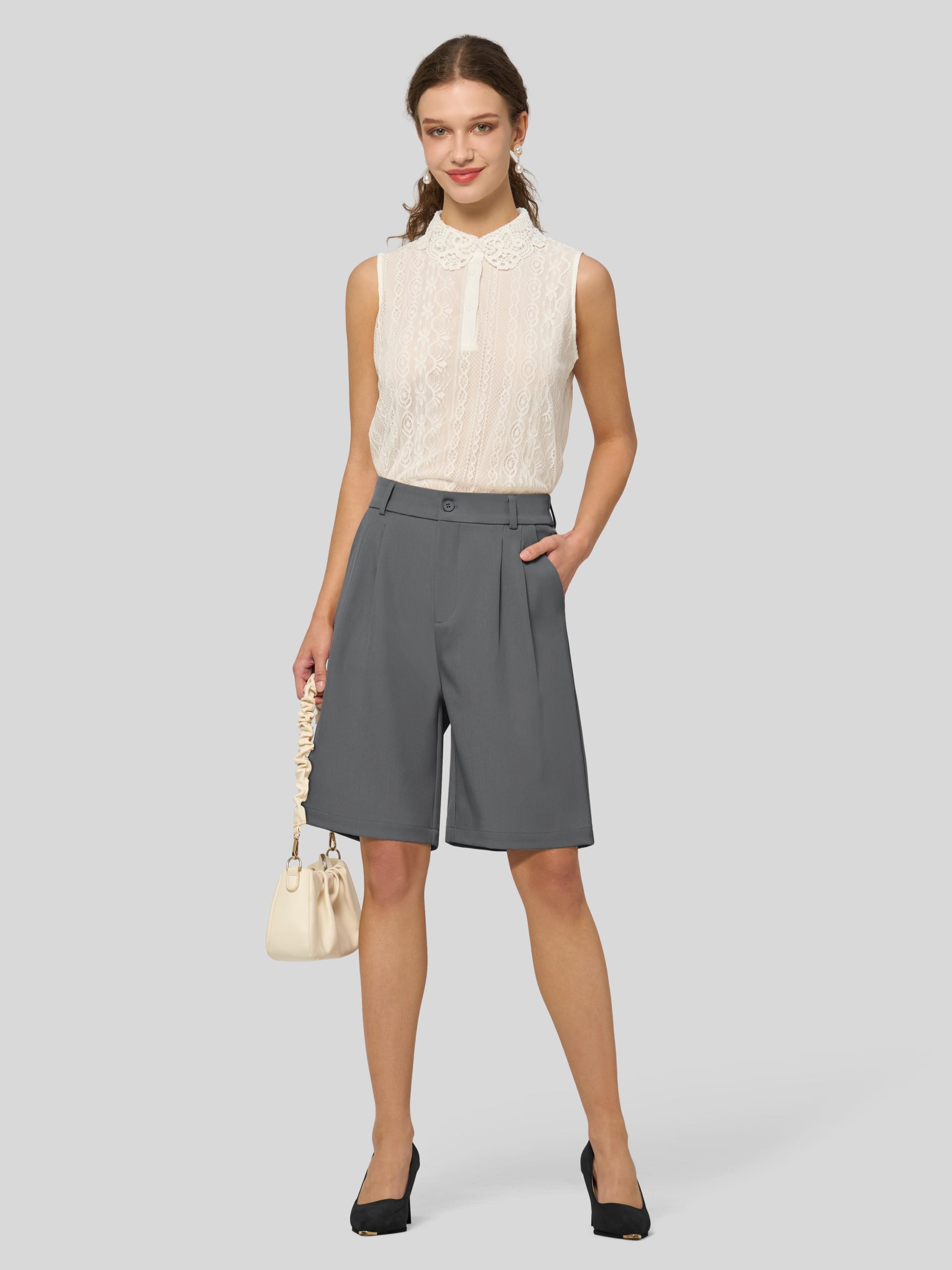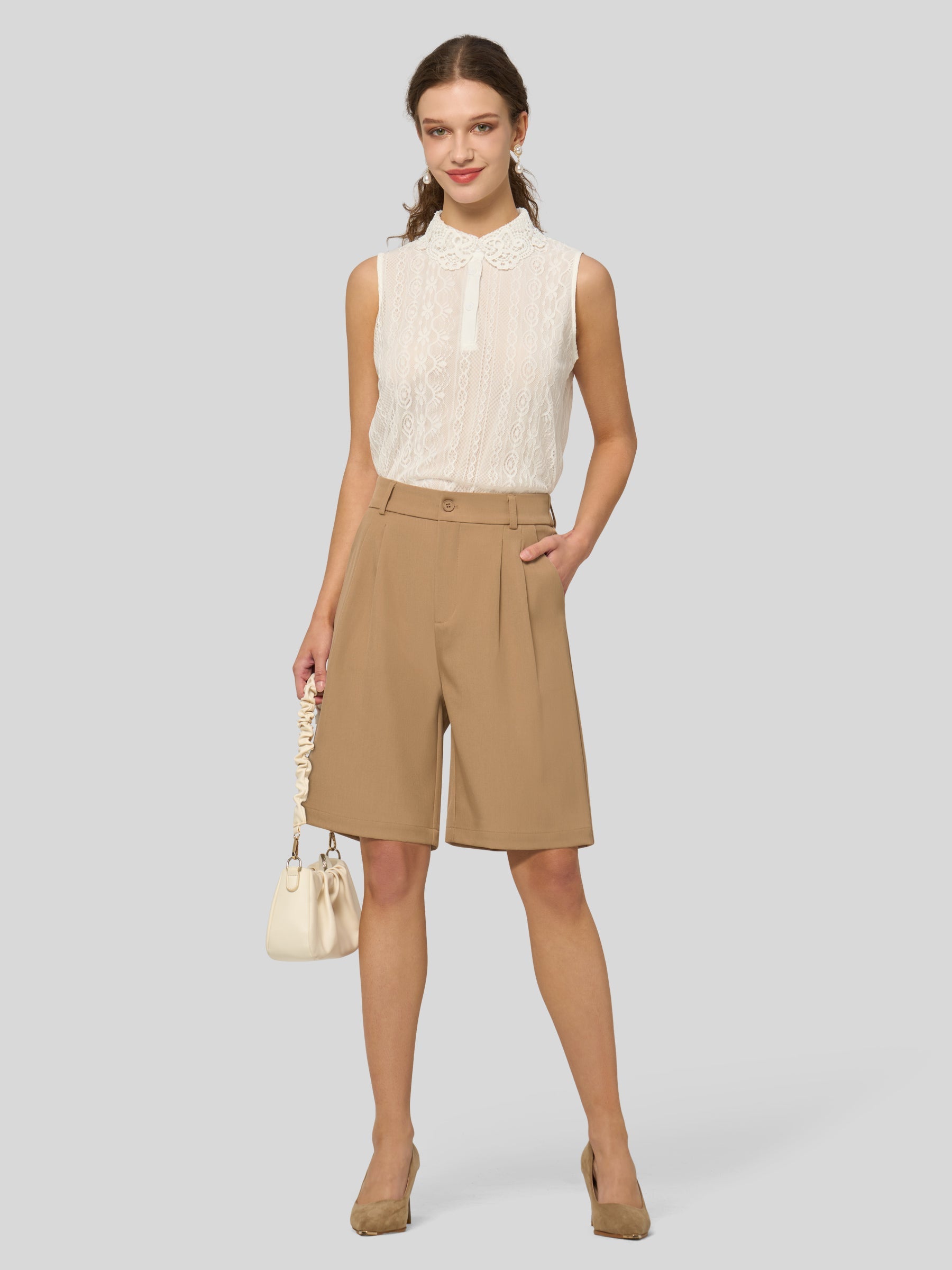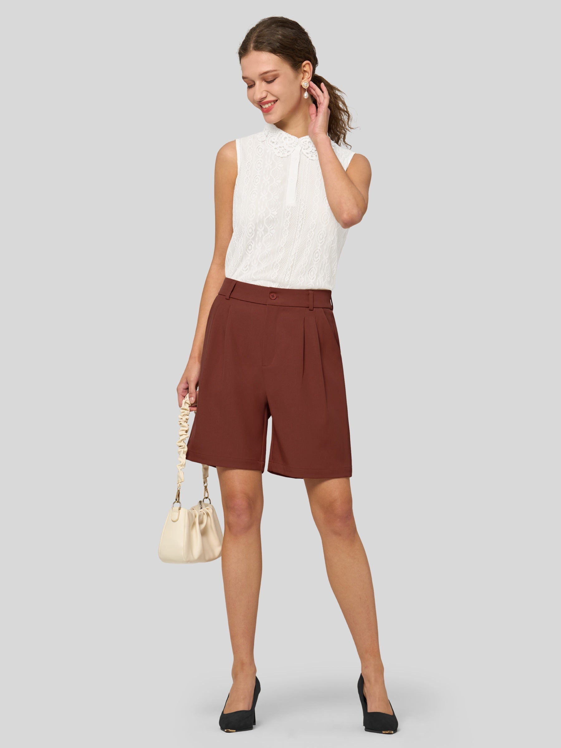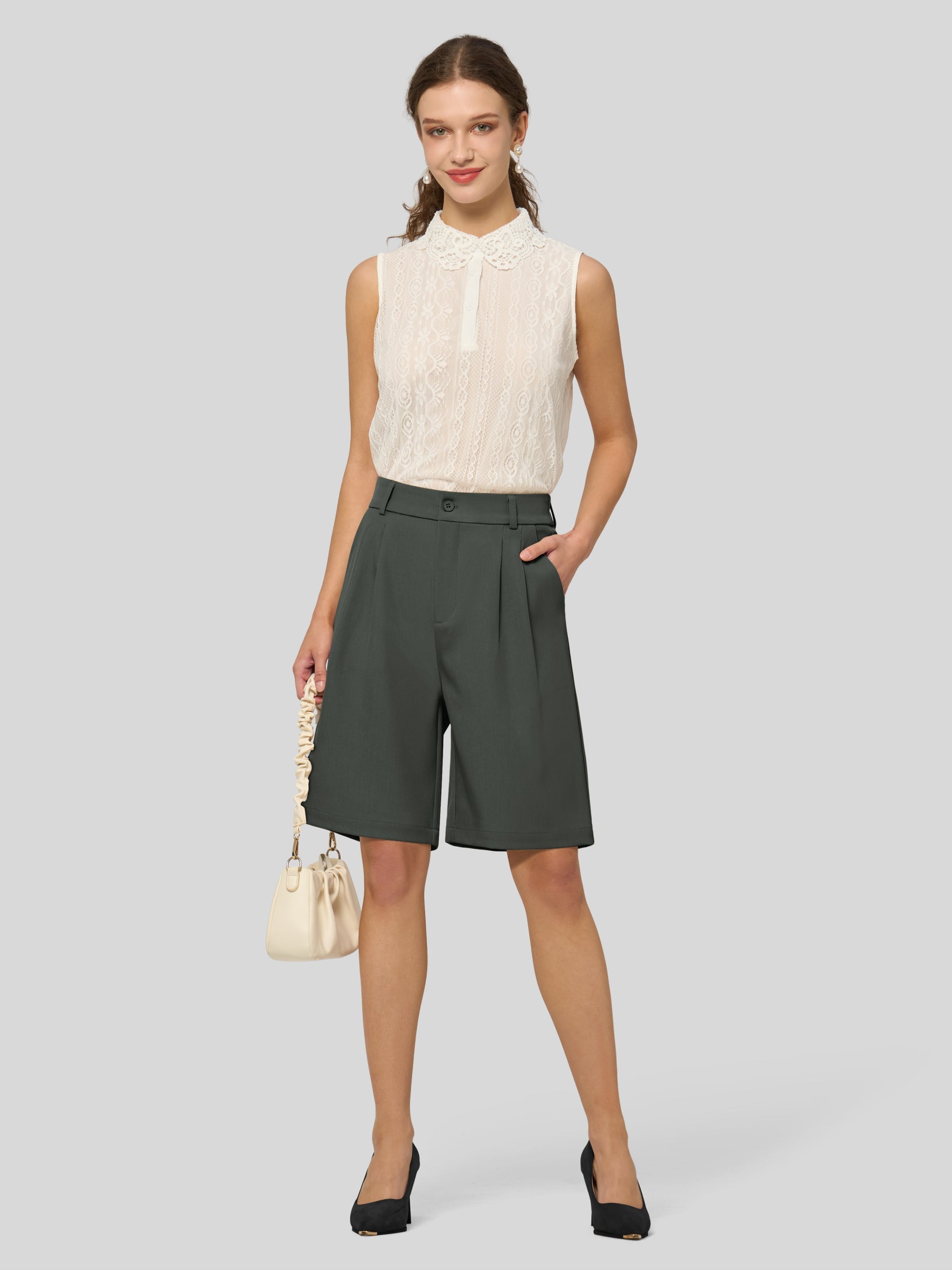 Women's Pleated Work Shorts 10 Inch
