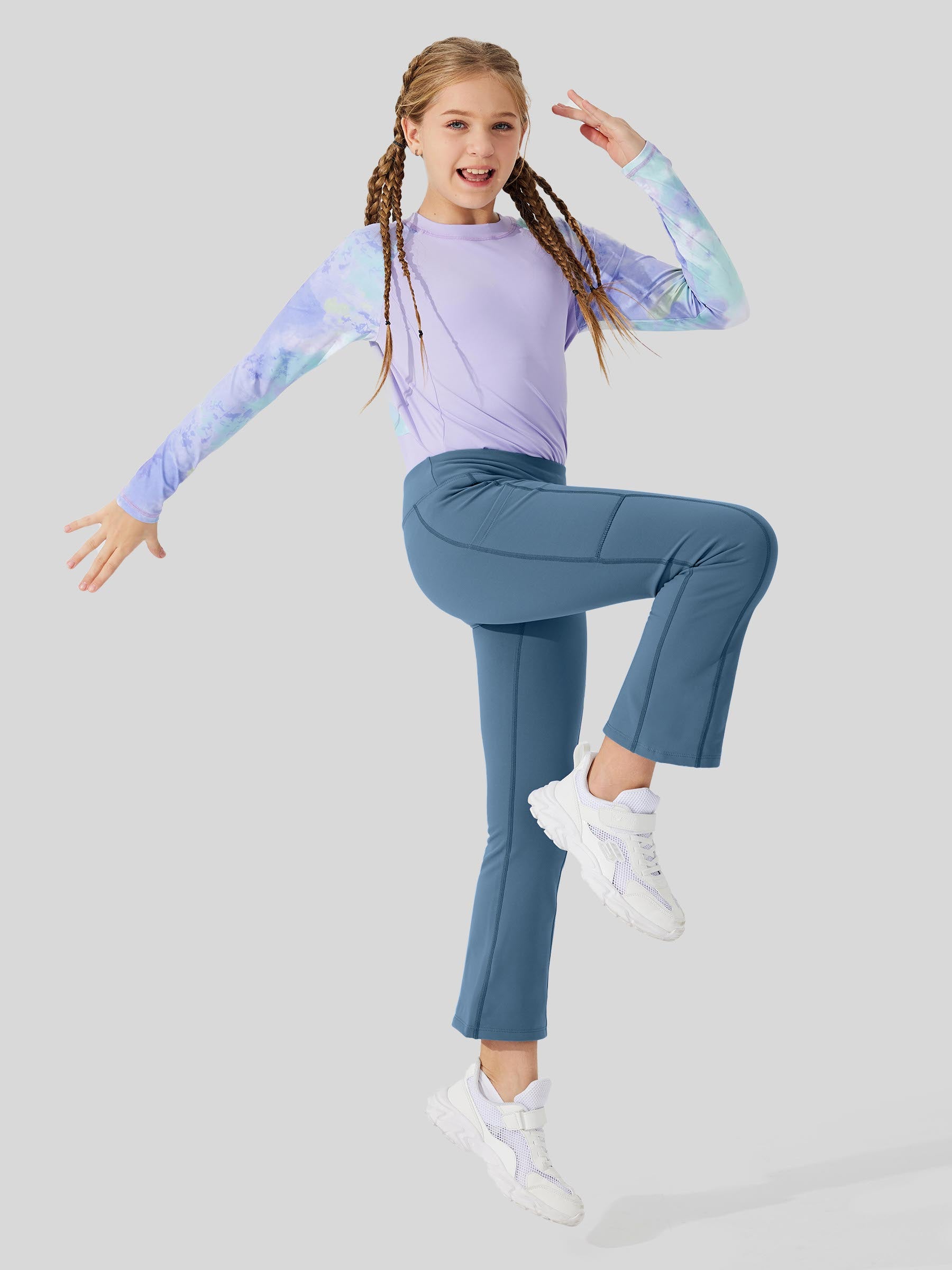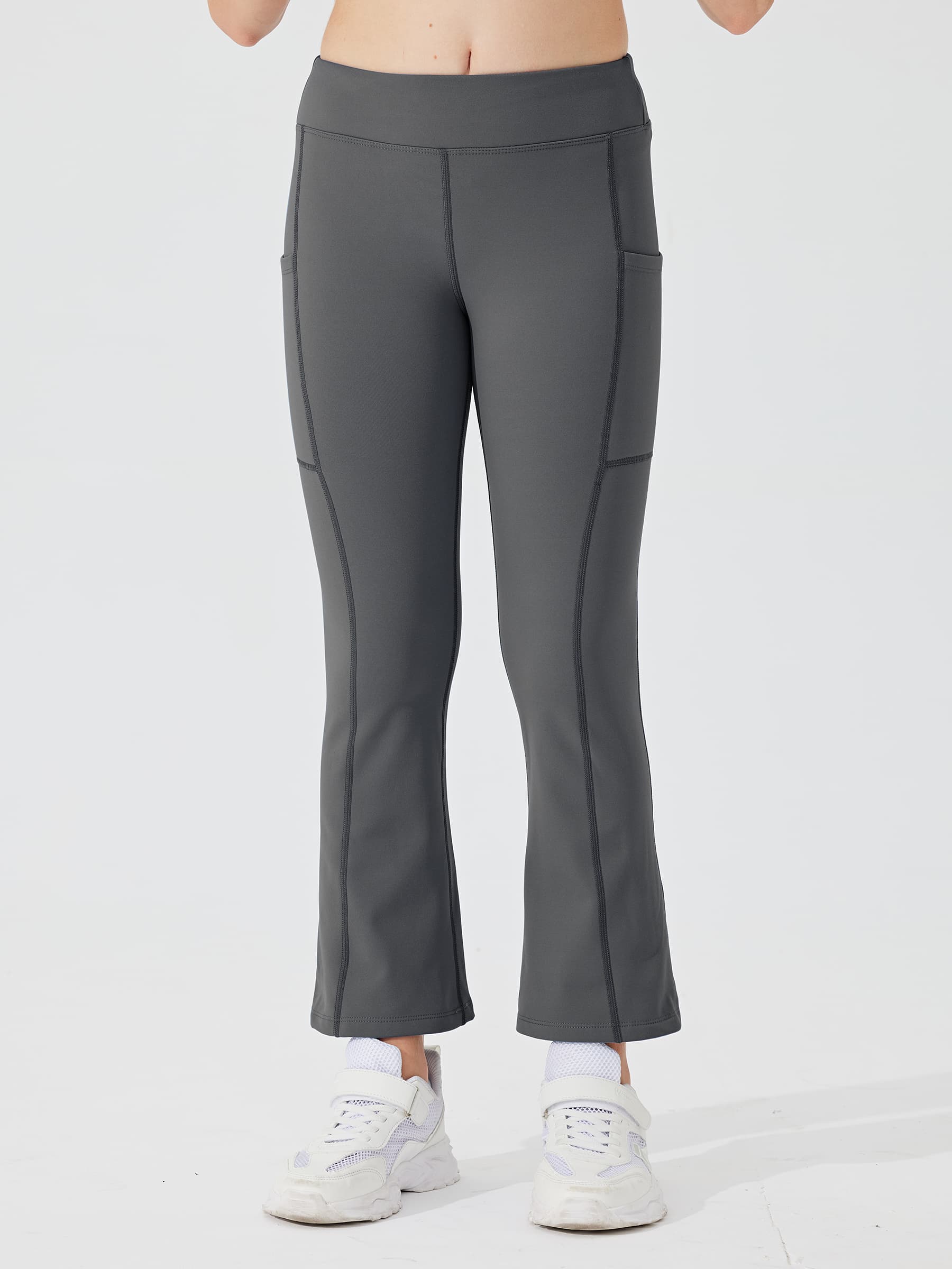 - These girls Flare fleece pants are designed in a regular fit with flared ankles for a touch of style. Skims over the leg and widens below the knee.