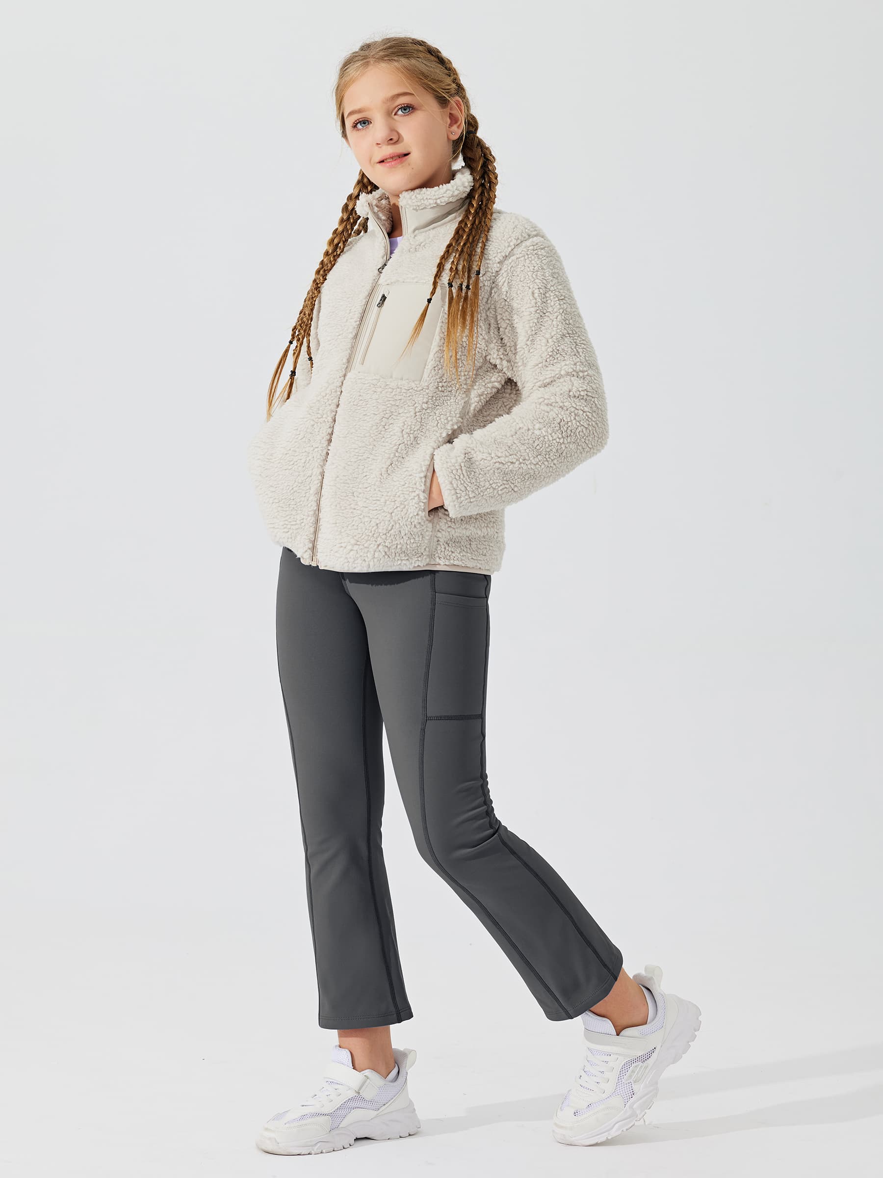 - 2 Side Pockets: These girls fleece leggings pants come with 2 side pockets, and easily store your things when on the go.