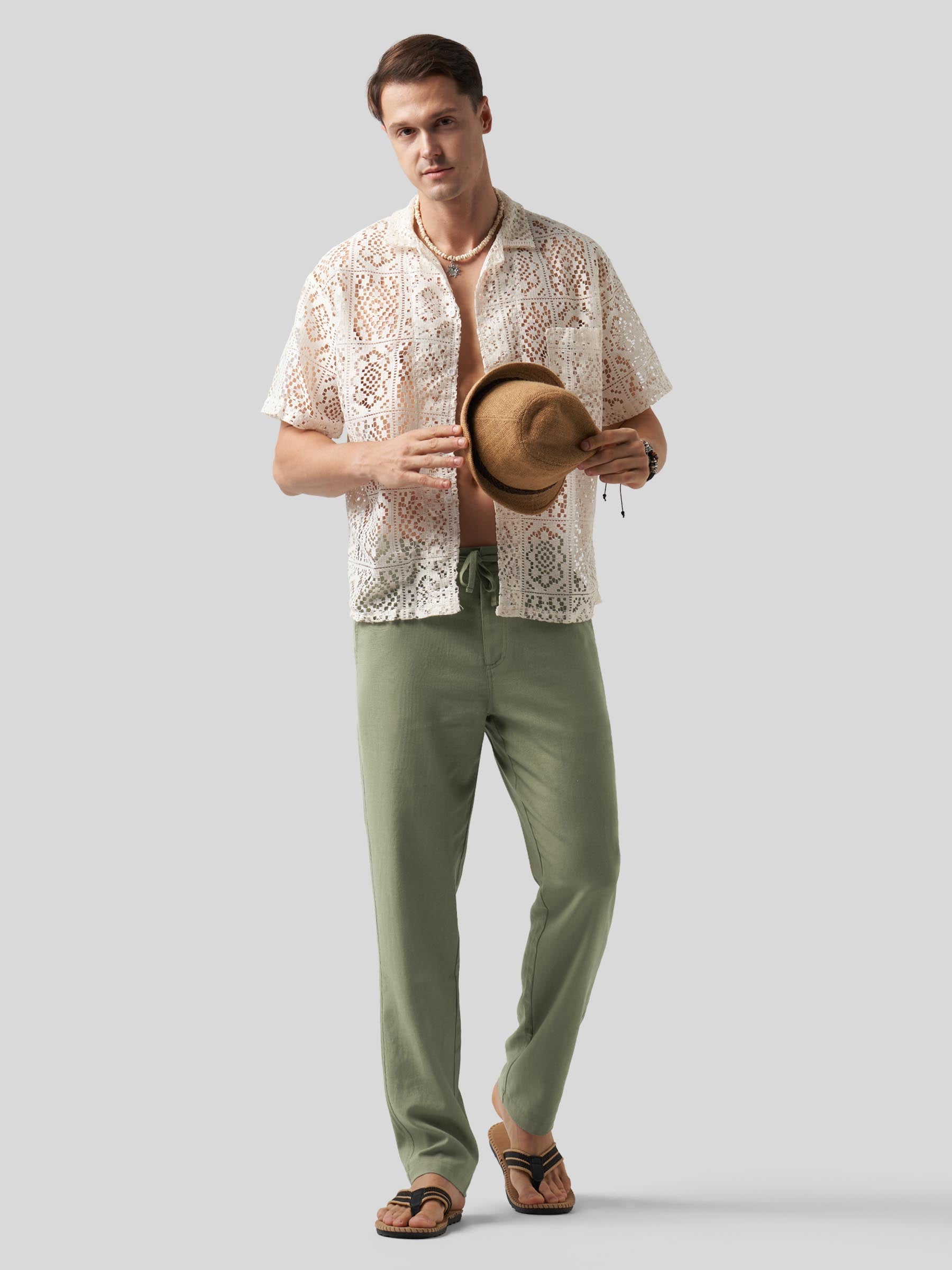 - Drawstring Waistband: Elevate both comfort and style with these men's linen pants. The convenient drawstring waistband keeps your pants securely in place while allowing you to tailor the fit for ultimate ease