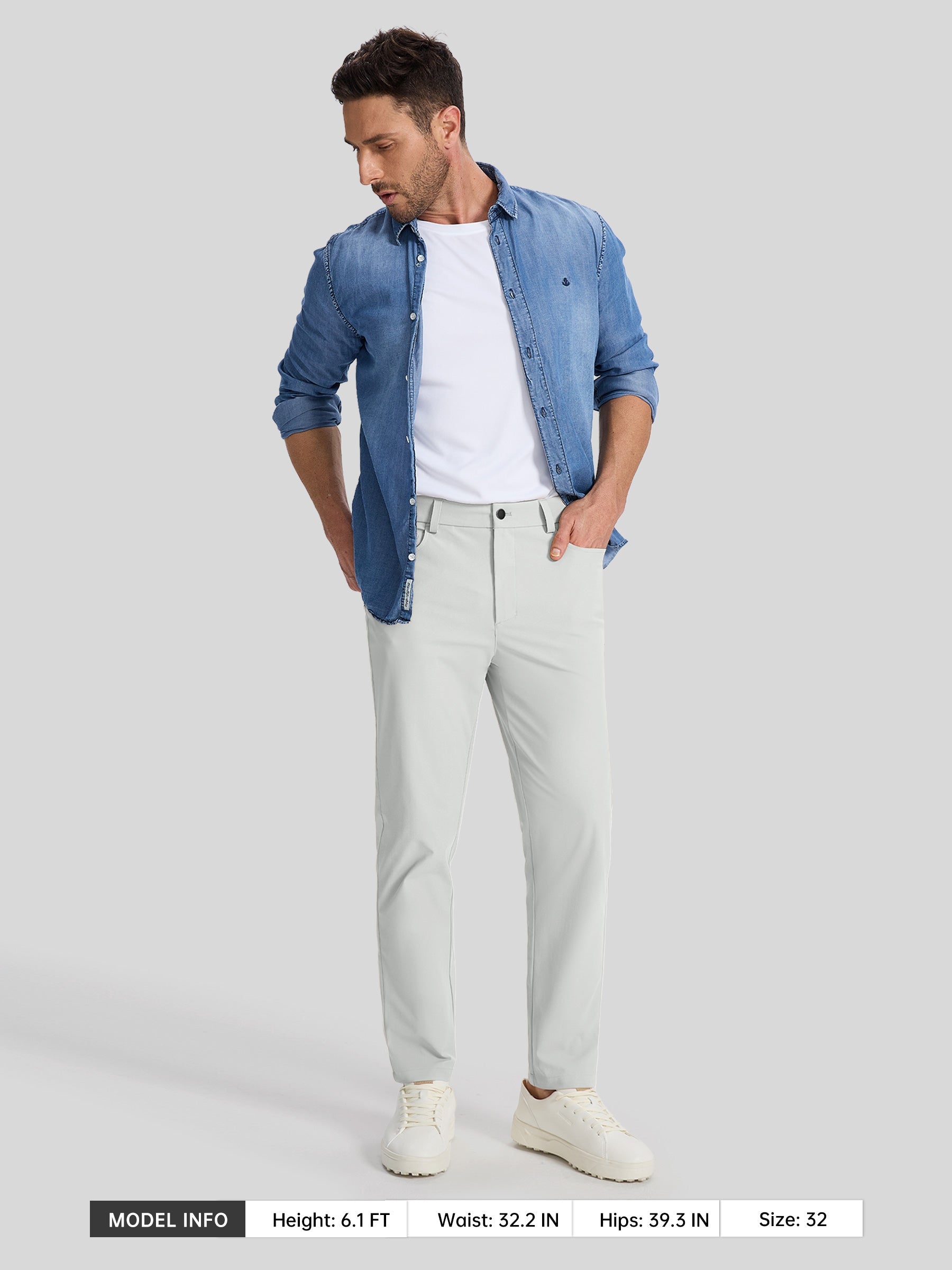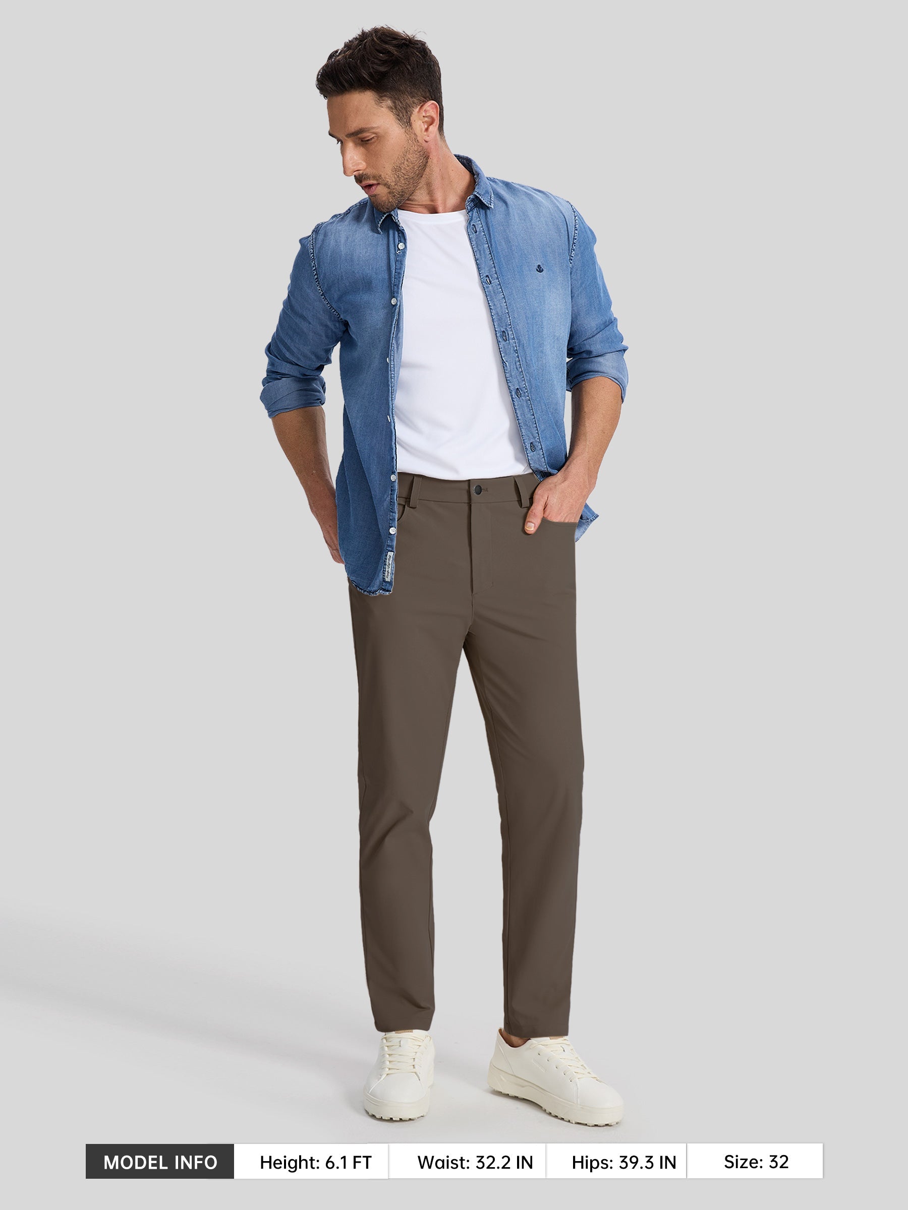 - Slim Fit: Slightly tapered design elongates your legs and creates a sleek, slimming effect.Sits at the waist. Inseam: 28"/30"/32"