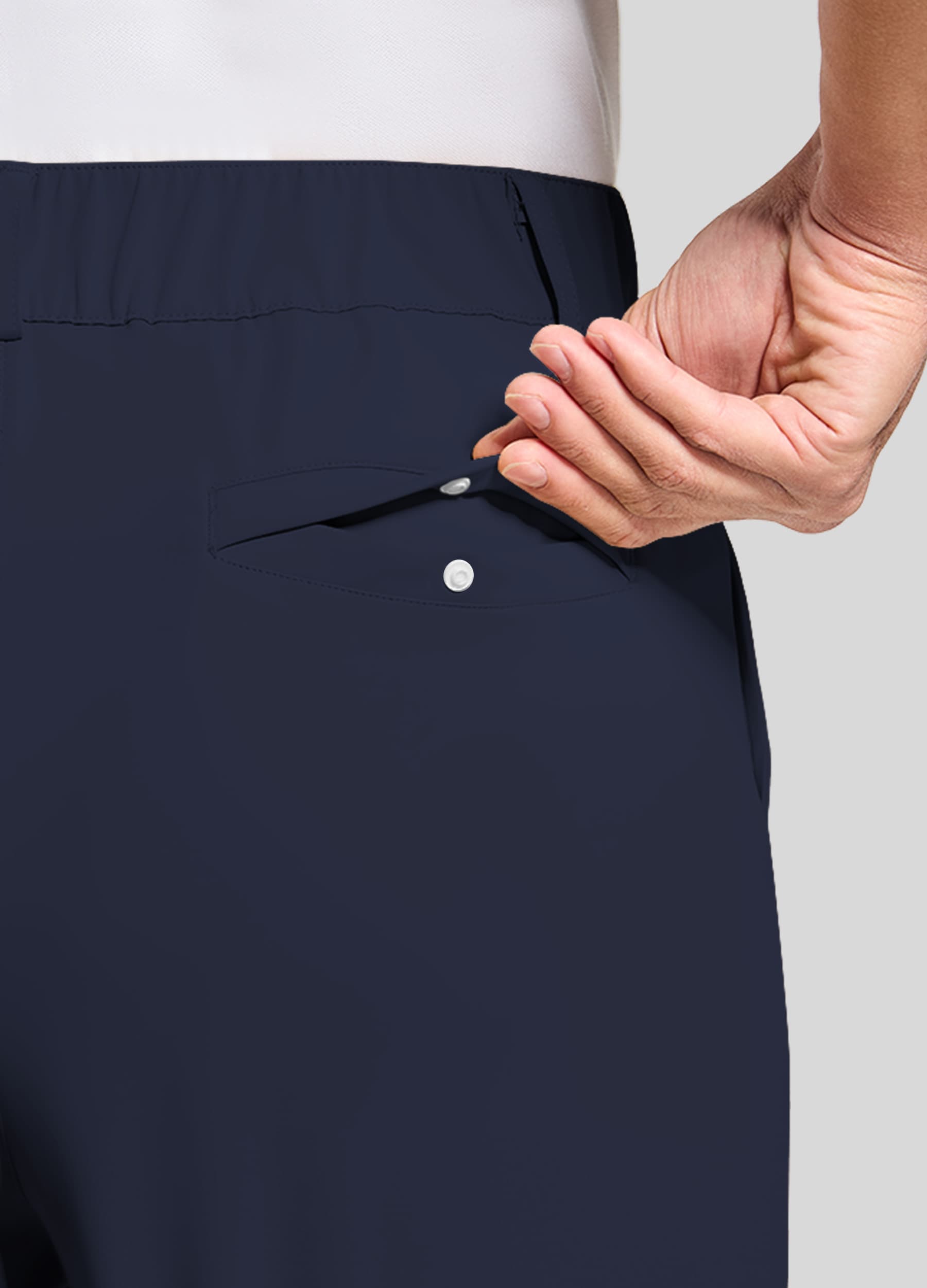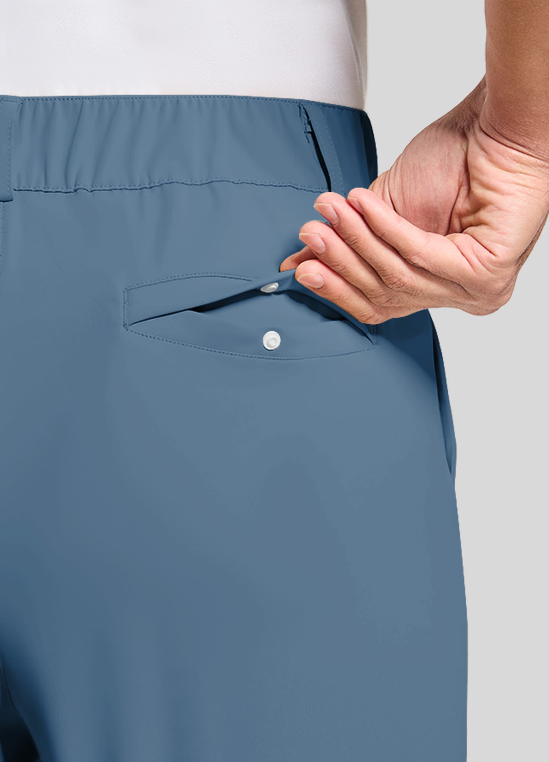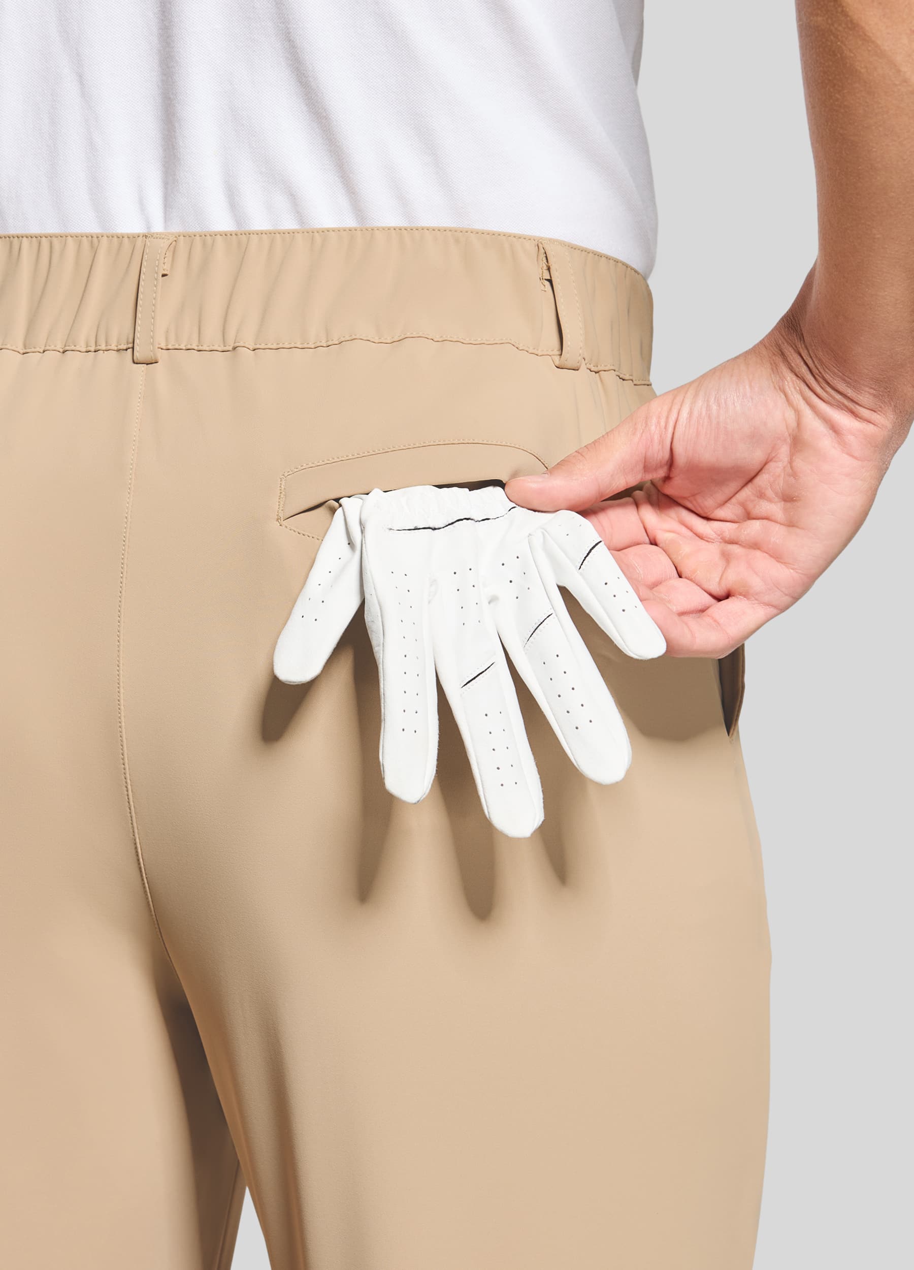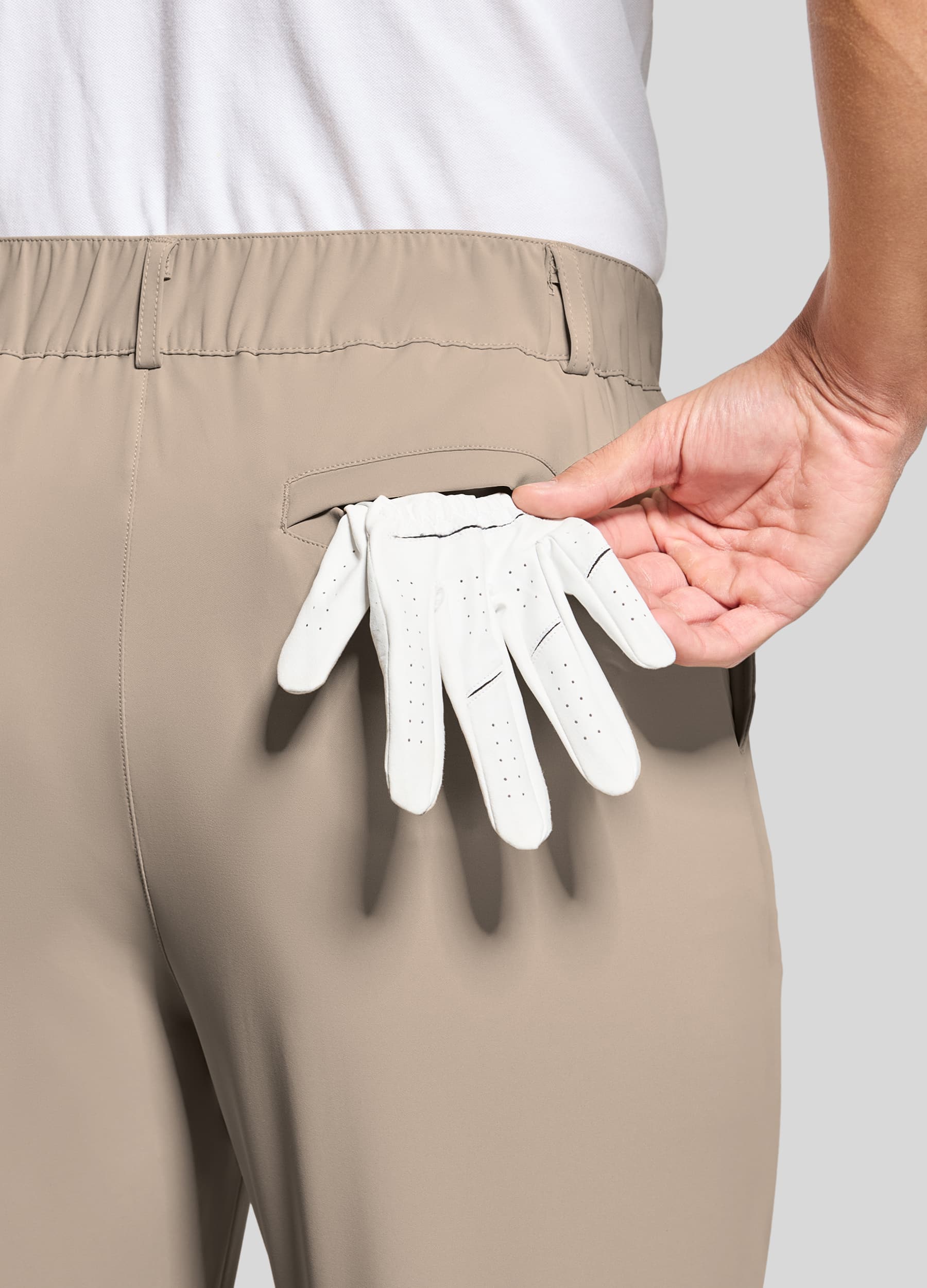 - 5 Pockets: 2 hand pockets provide safe storage which are deep enough to store your phone. 2 snap closure back pockets stash your golf gloves and cards. 1 zipper pockets secure your wallet.
