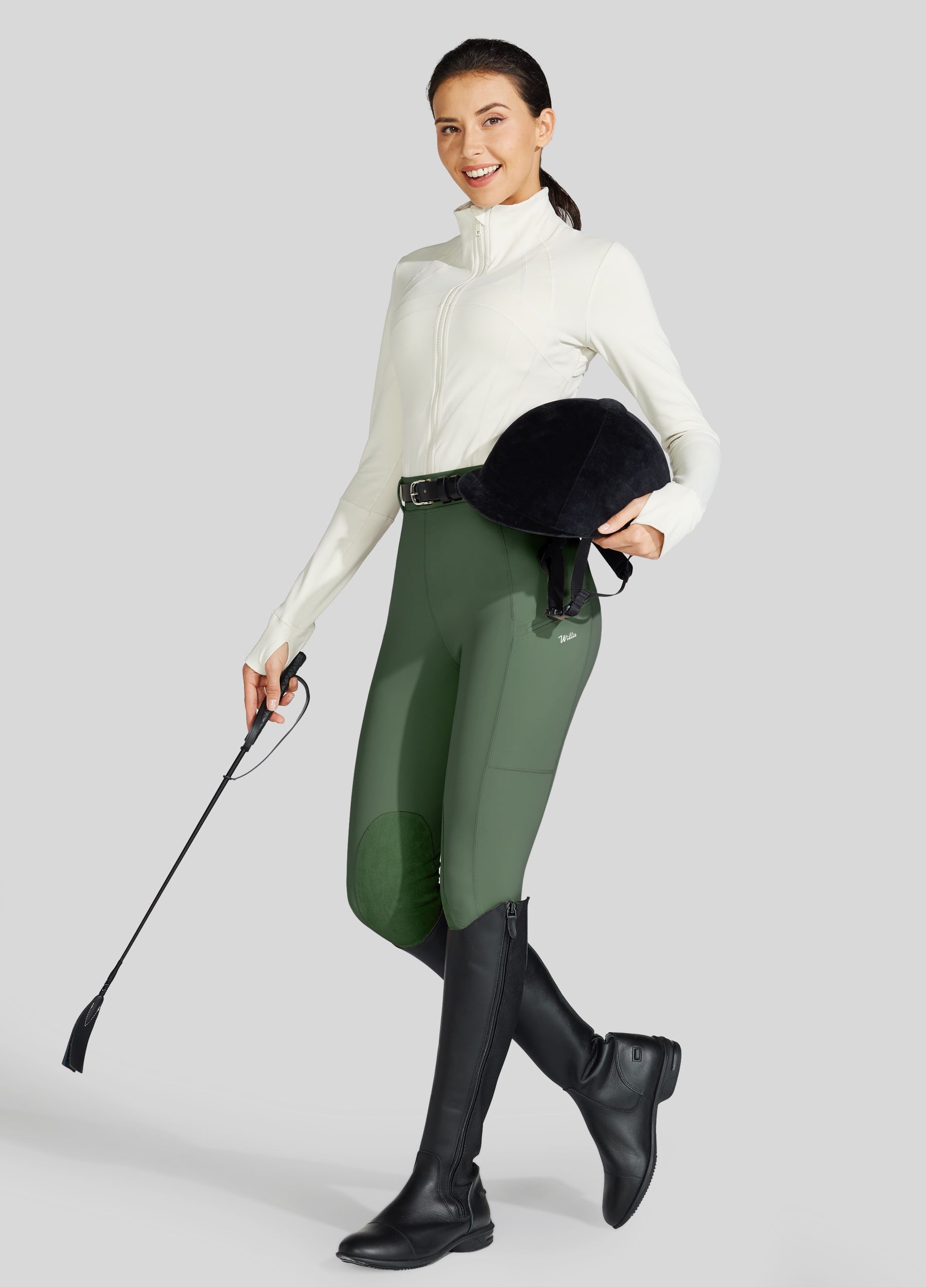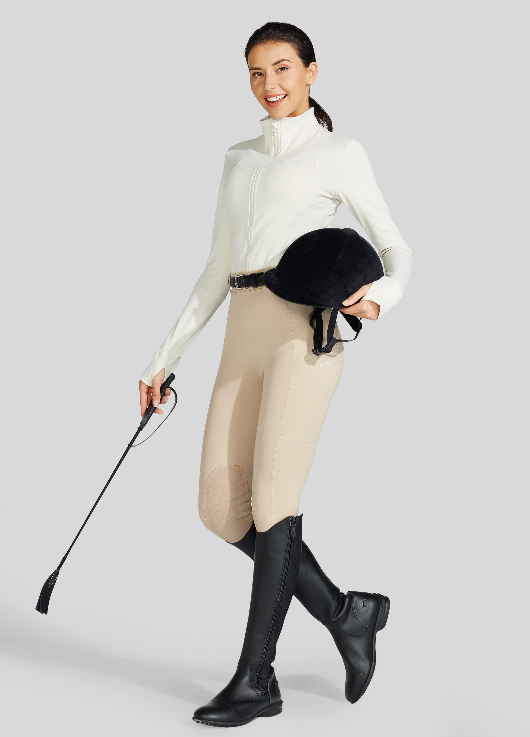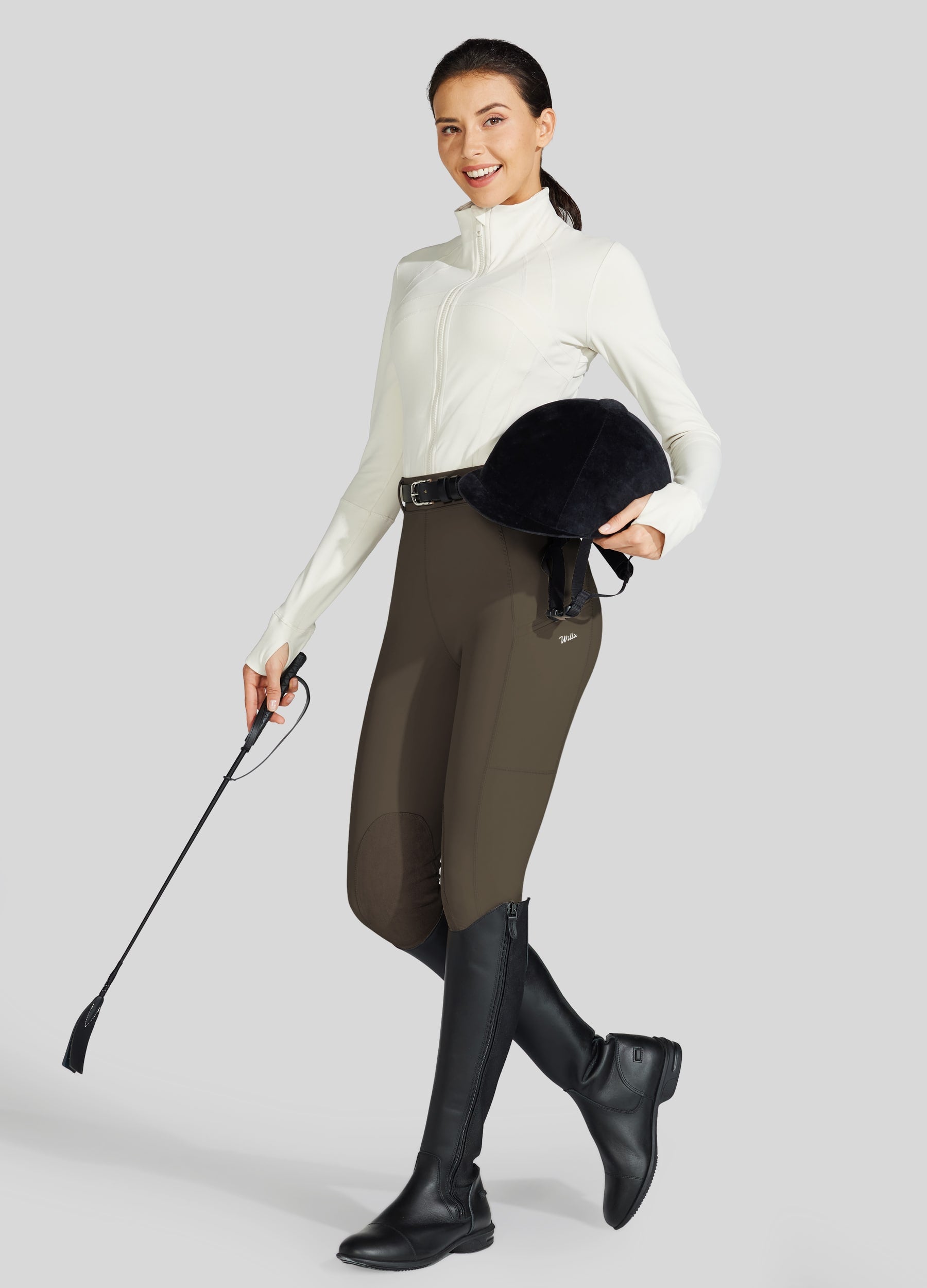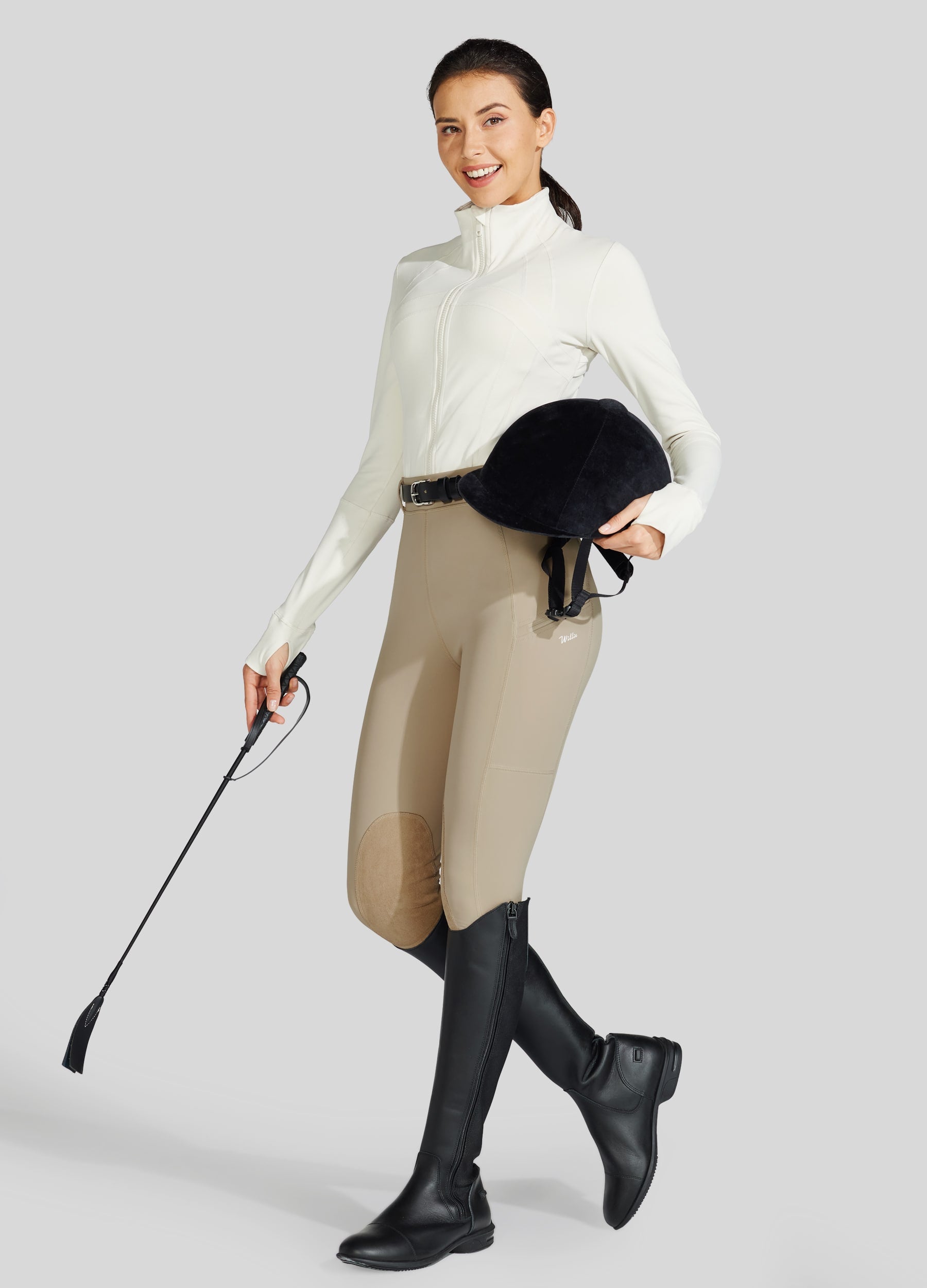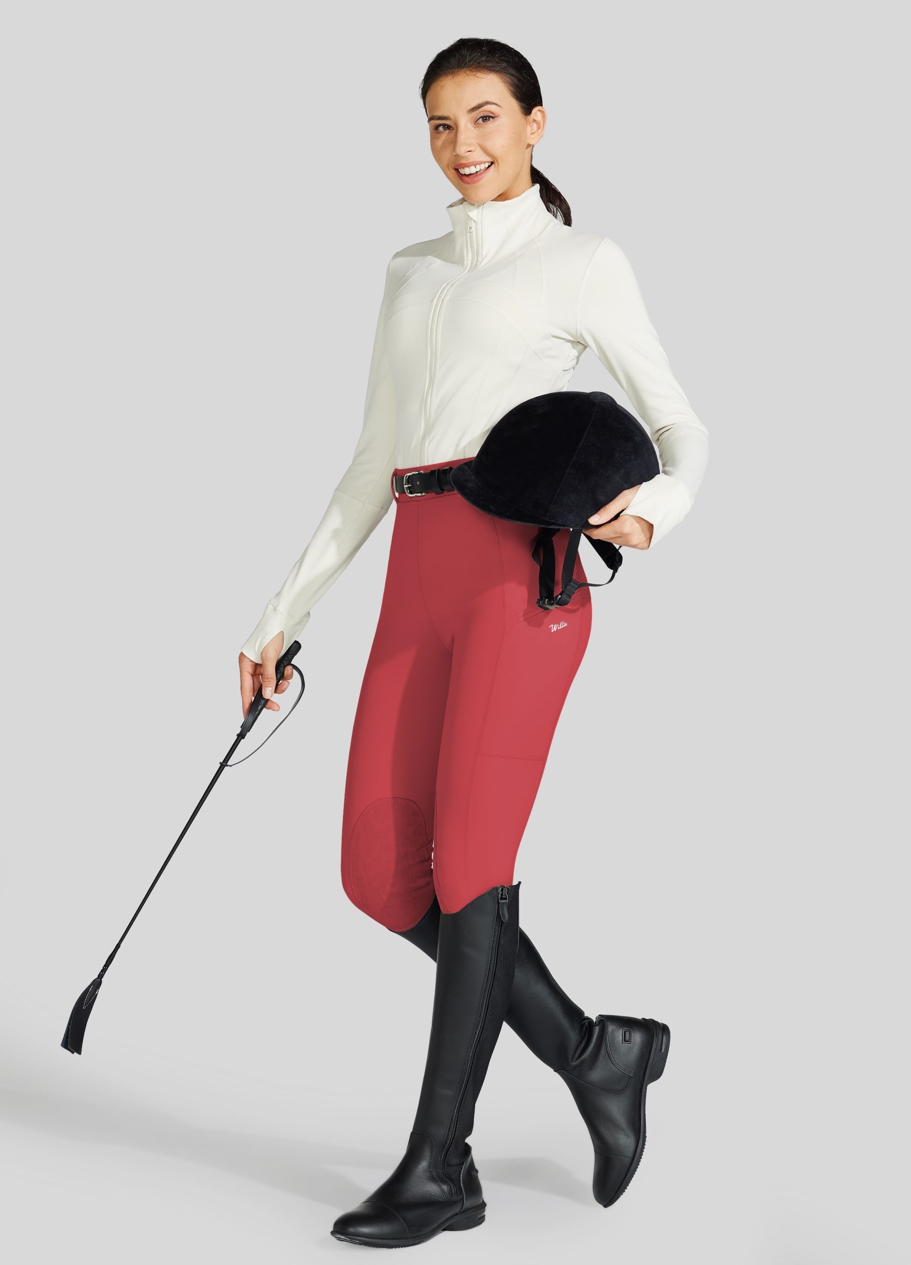 - Silicone Knee Patches: The Ladies Breeches come with a high-quality knee-patch that ensures a comfortable, non-slip ride in all disciplines and gives these breeches a trendy, retro look