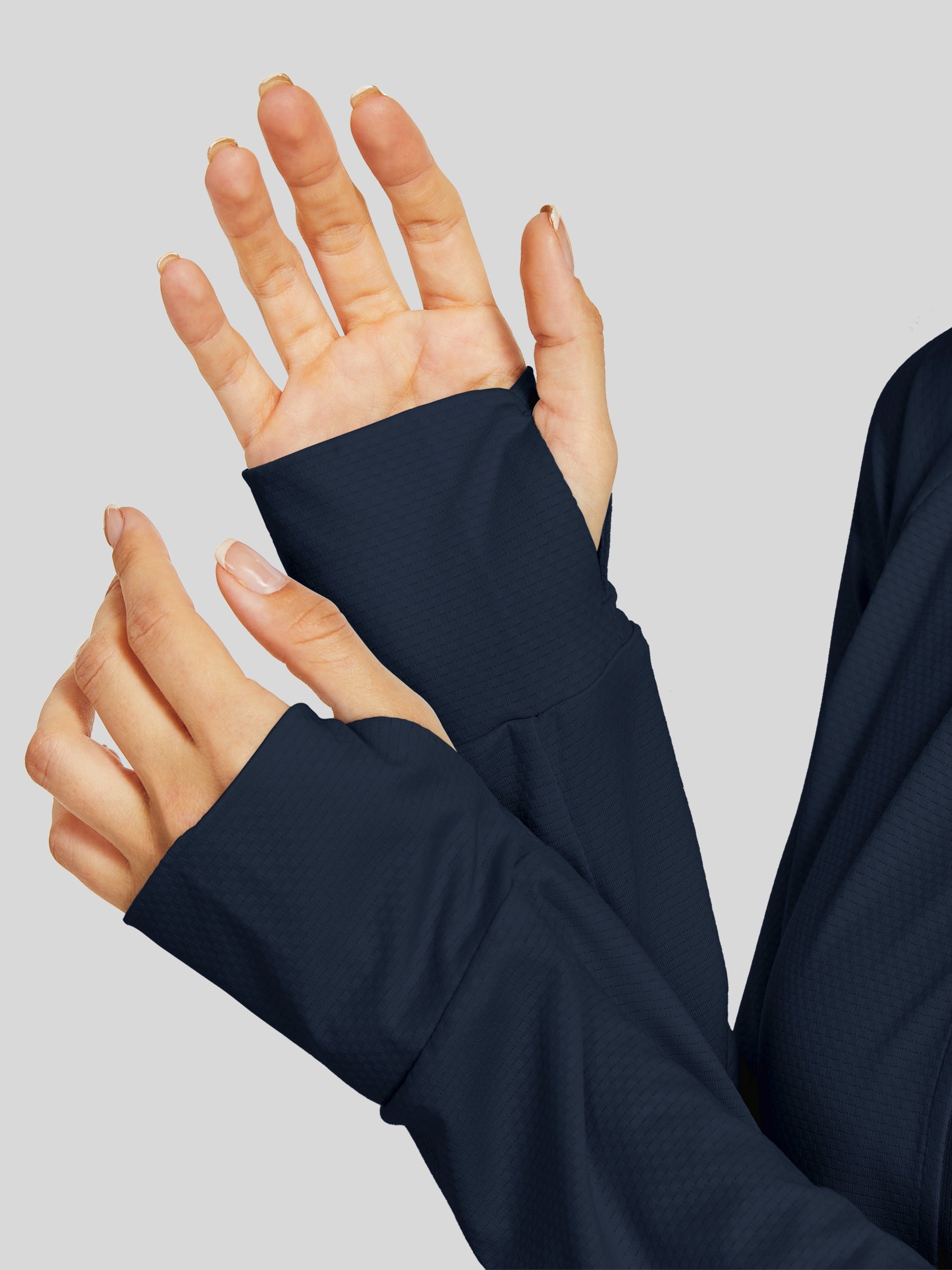Thumbholes & Zipper Pockets �?Thumbholes for added sun coverage; 4 pockets keep essentials secure.