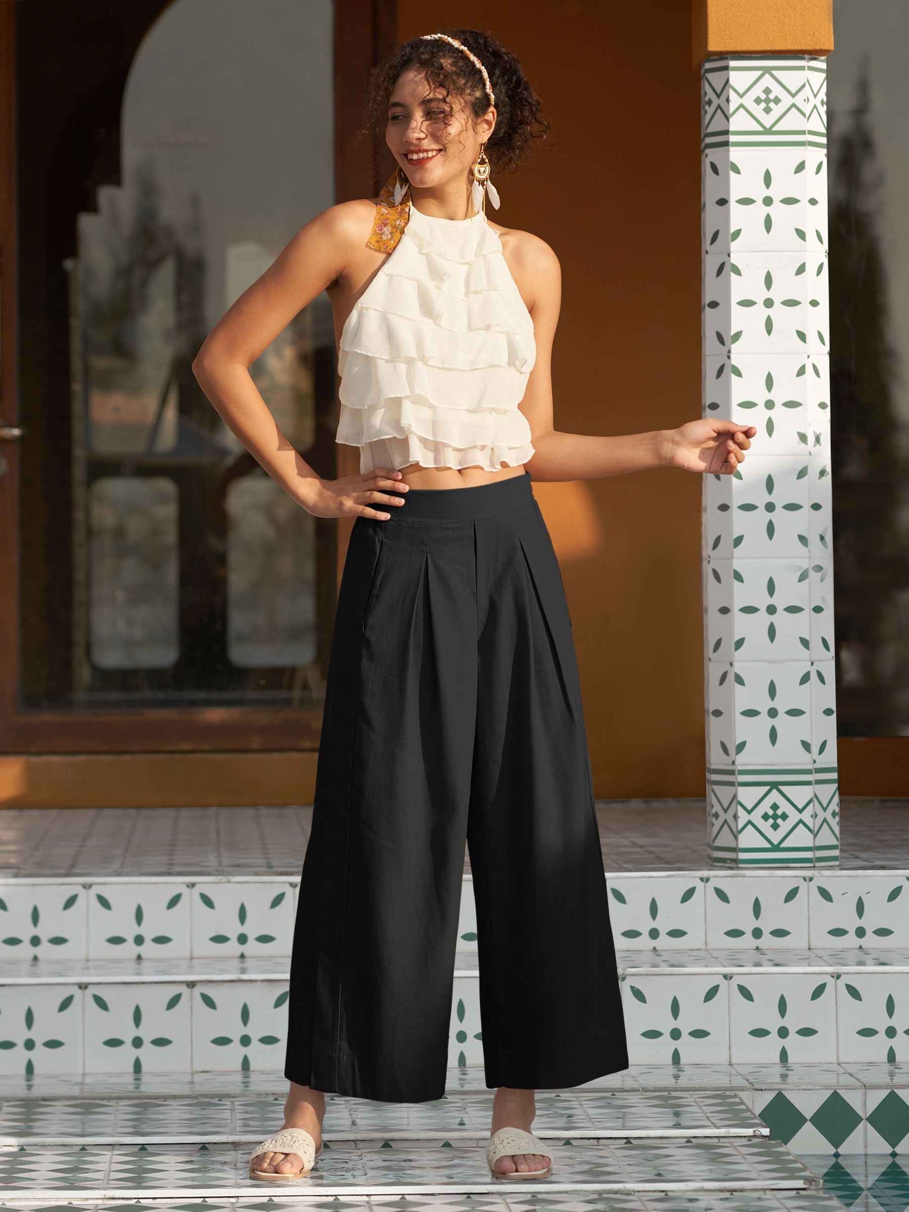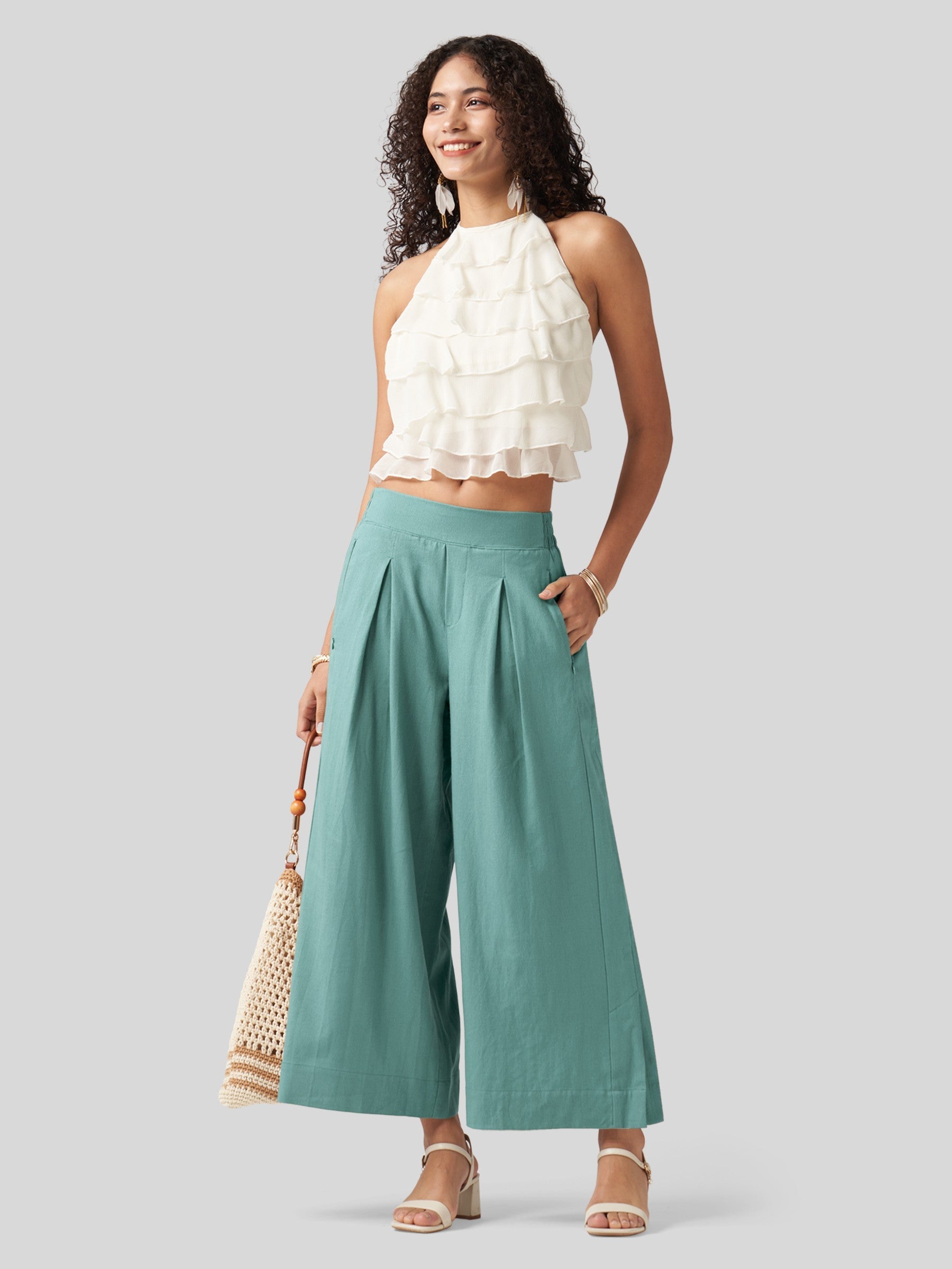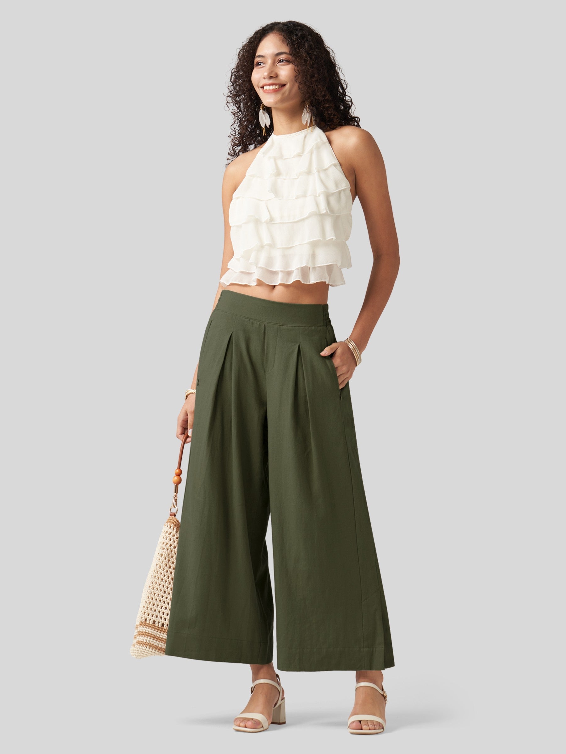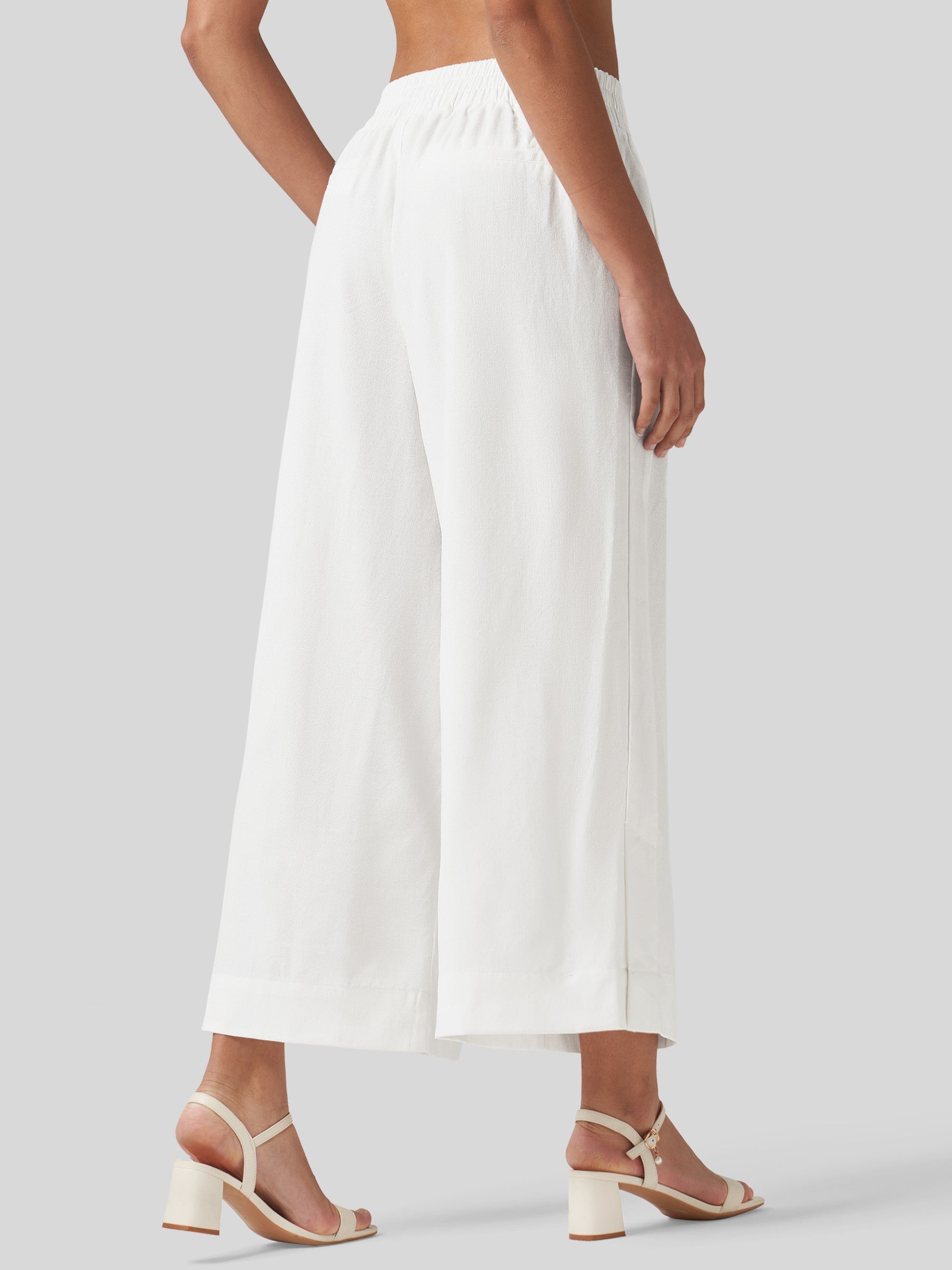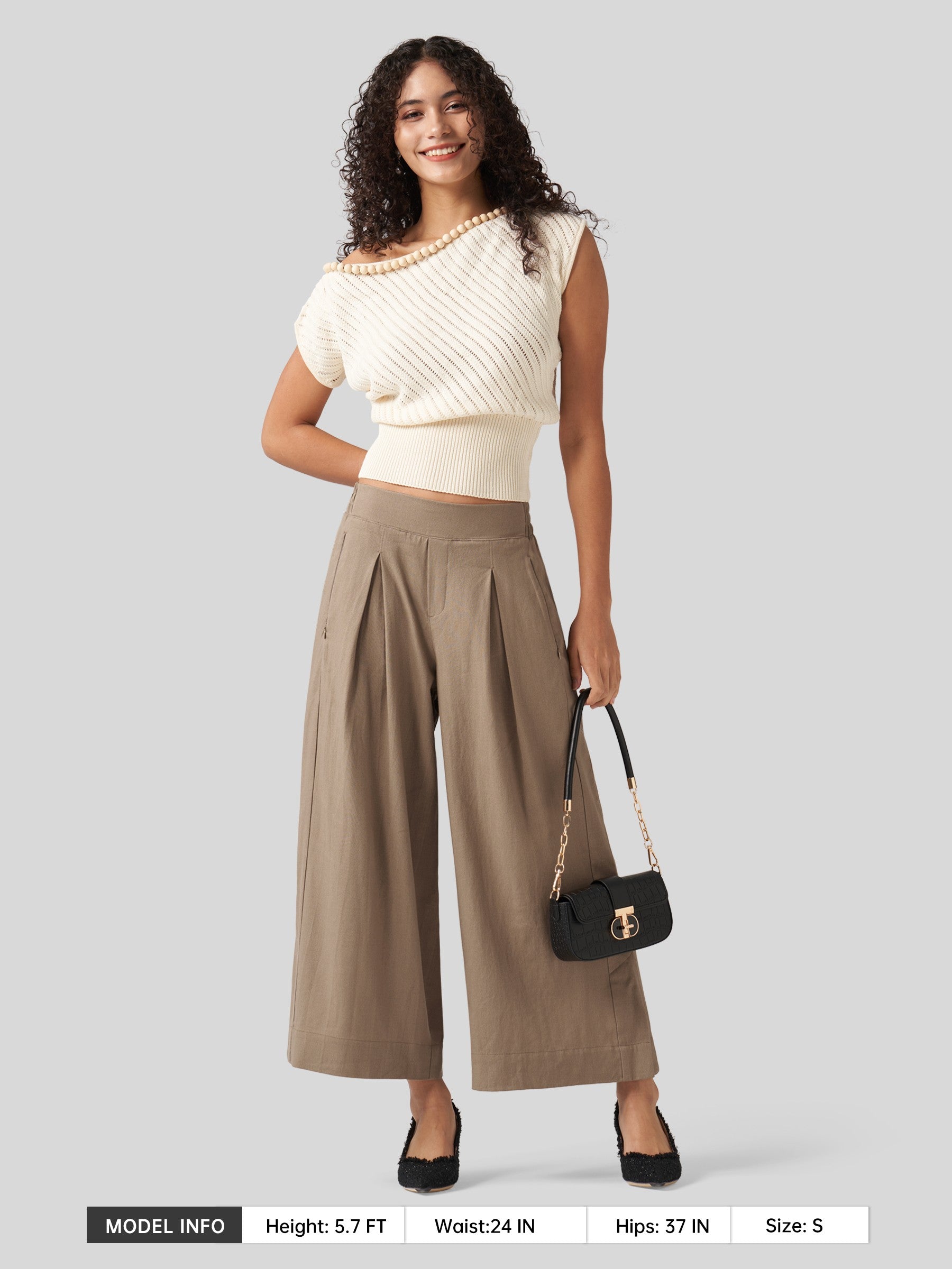 - Designed with a mid-waisted fit and elastic back waist, it features front pleats that add a touch of modern flair. The roomy, wide-leg cut flatters every body type, beautifully sculpting your curves