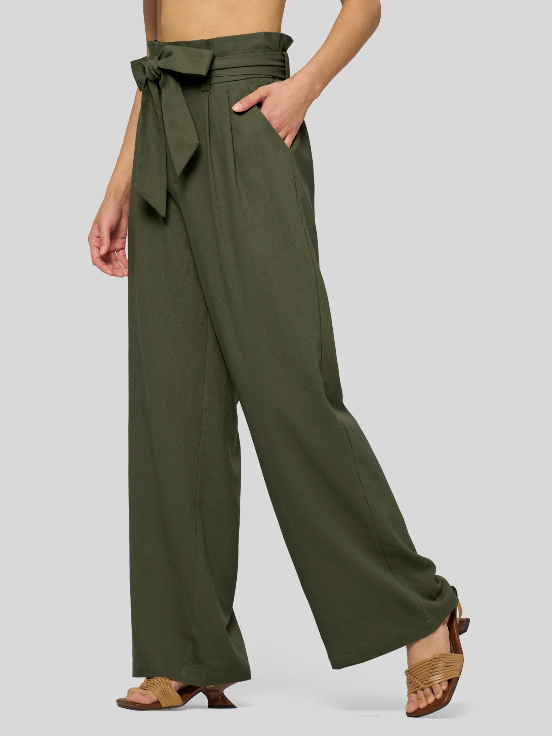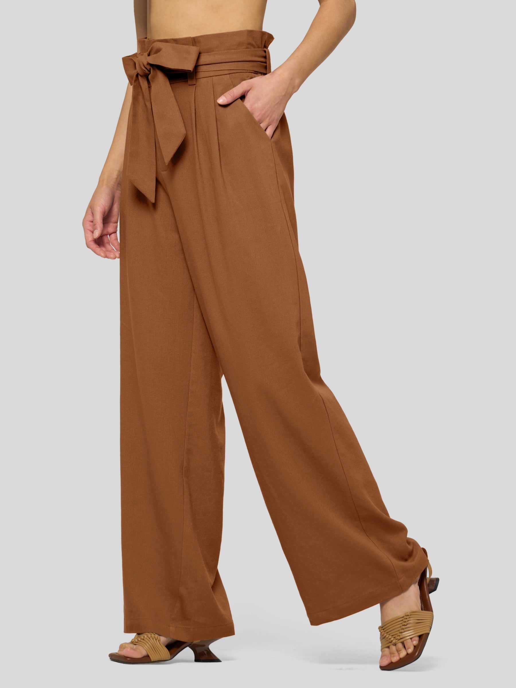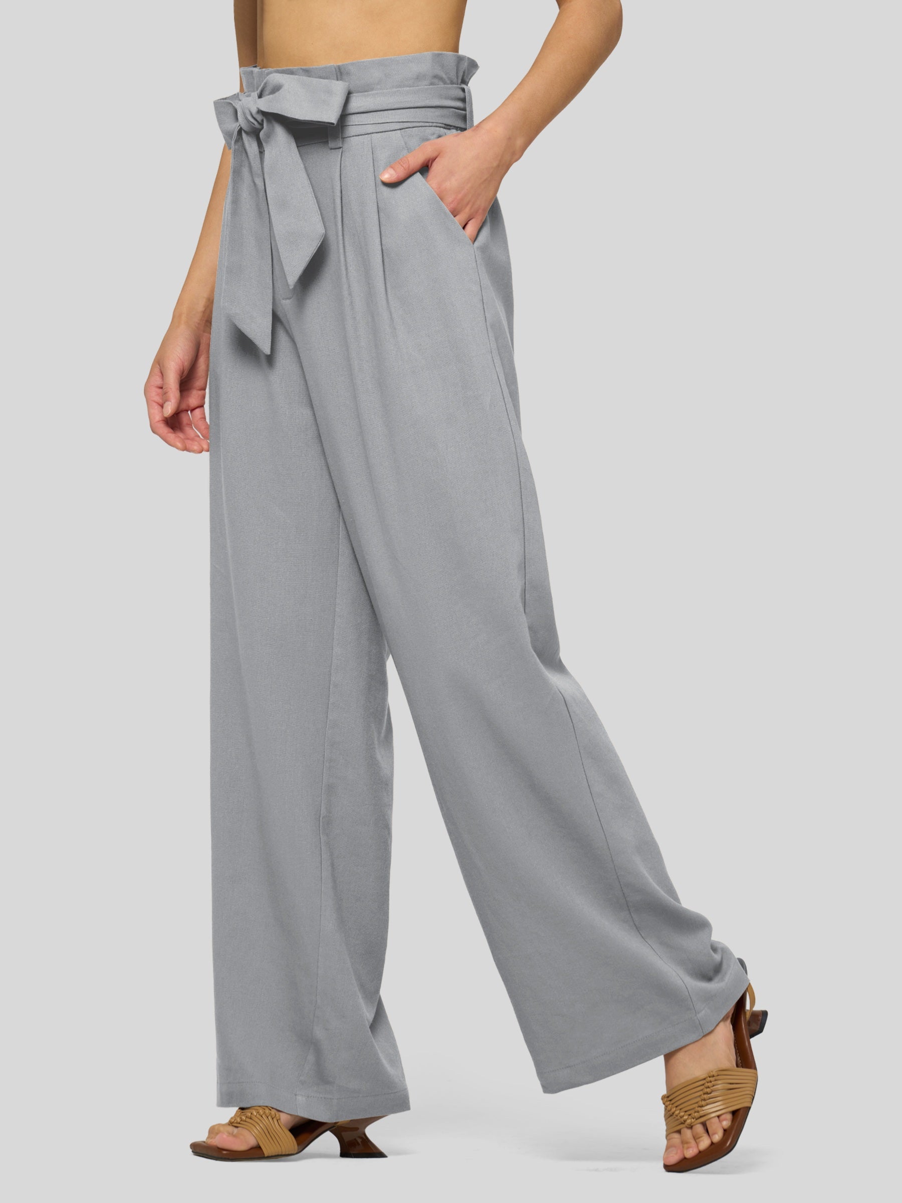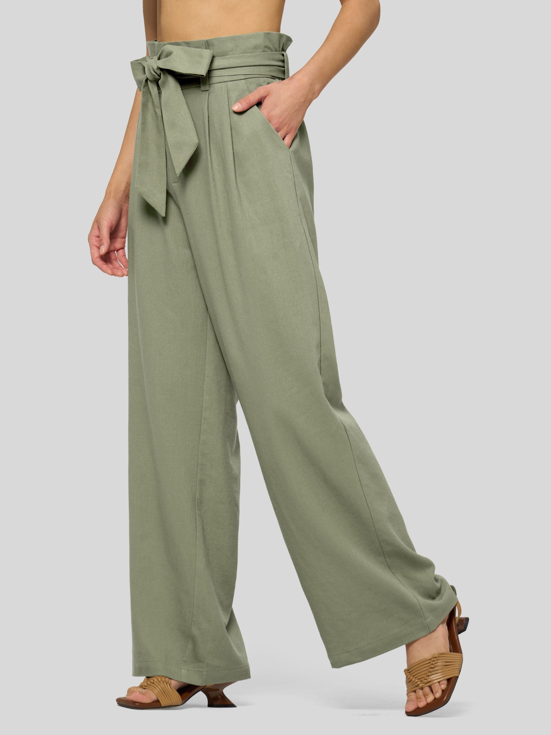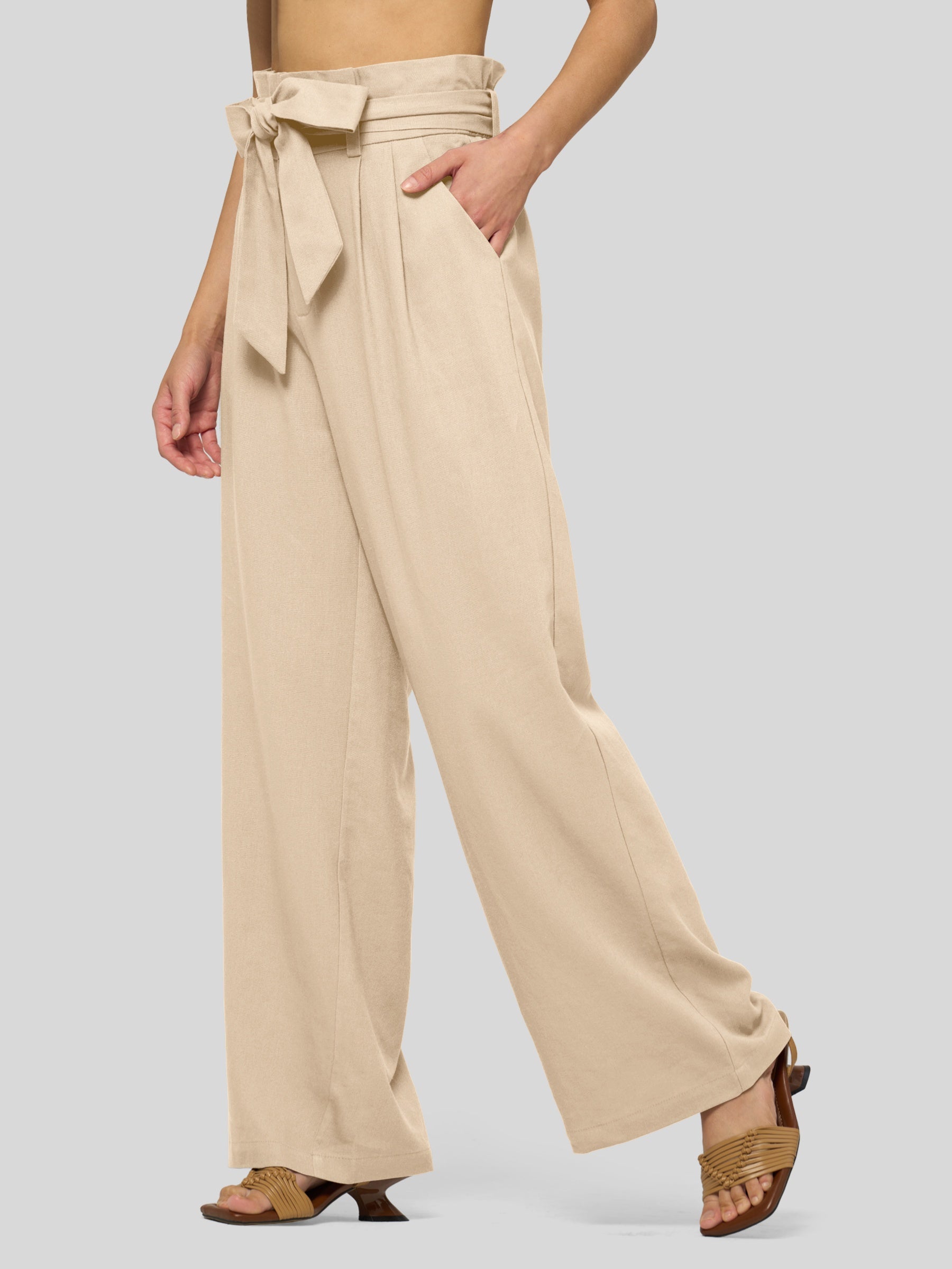 Women's Linen Tie Knot Work Slacks 28 Inch