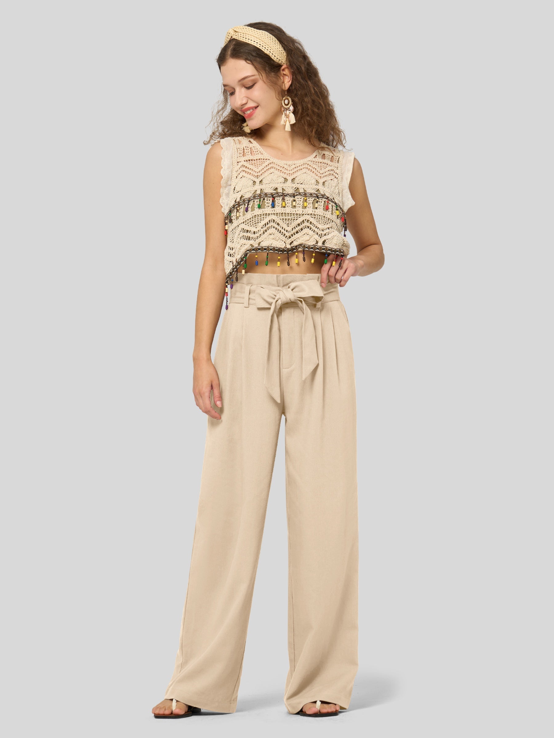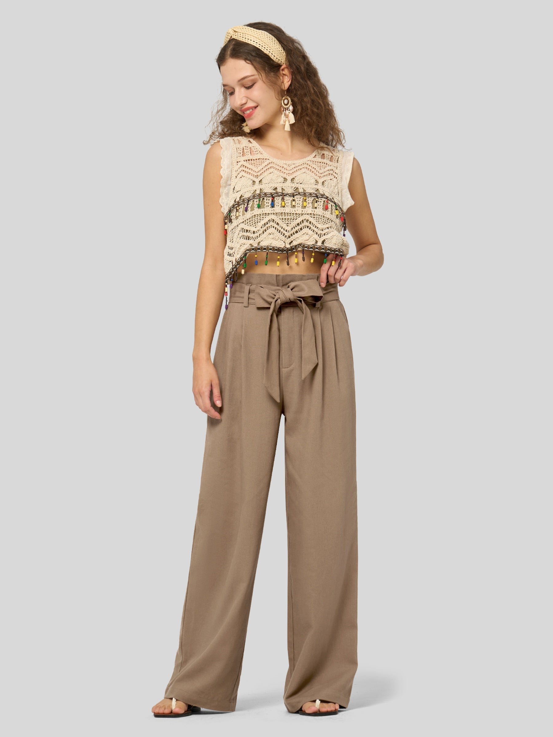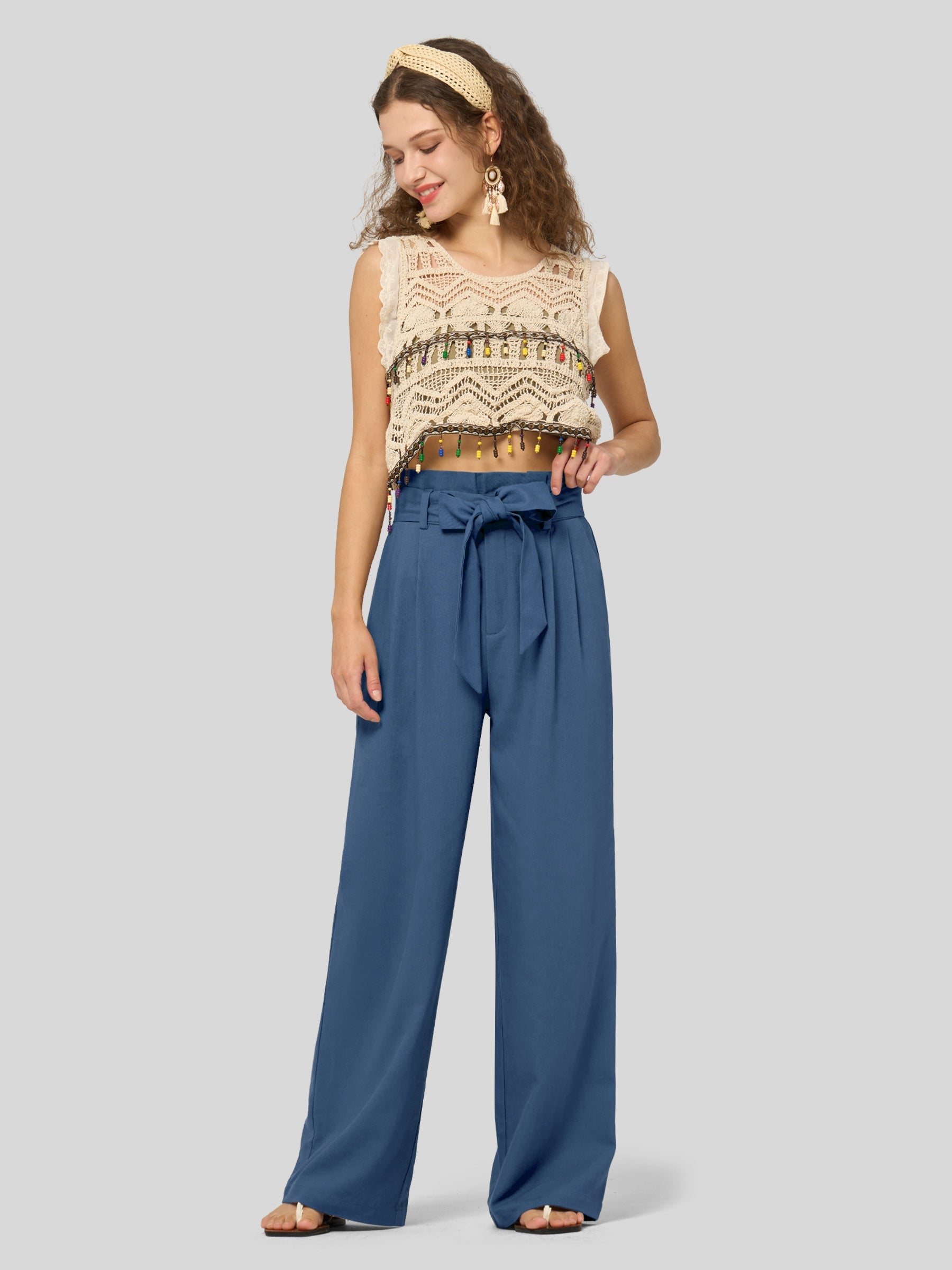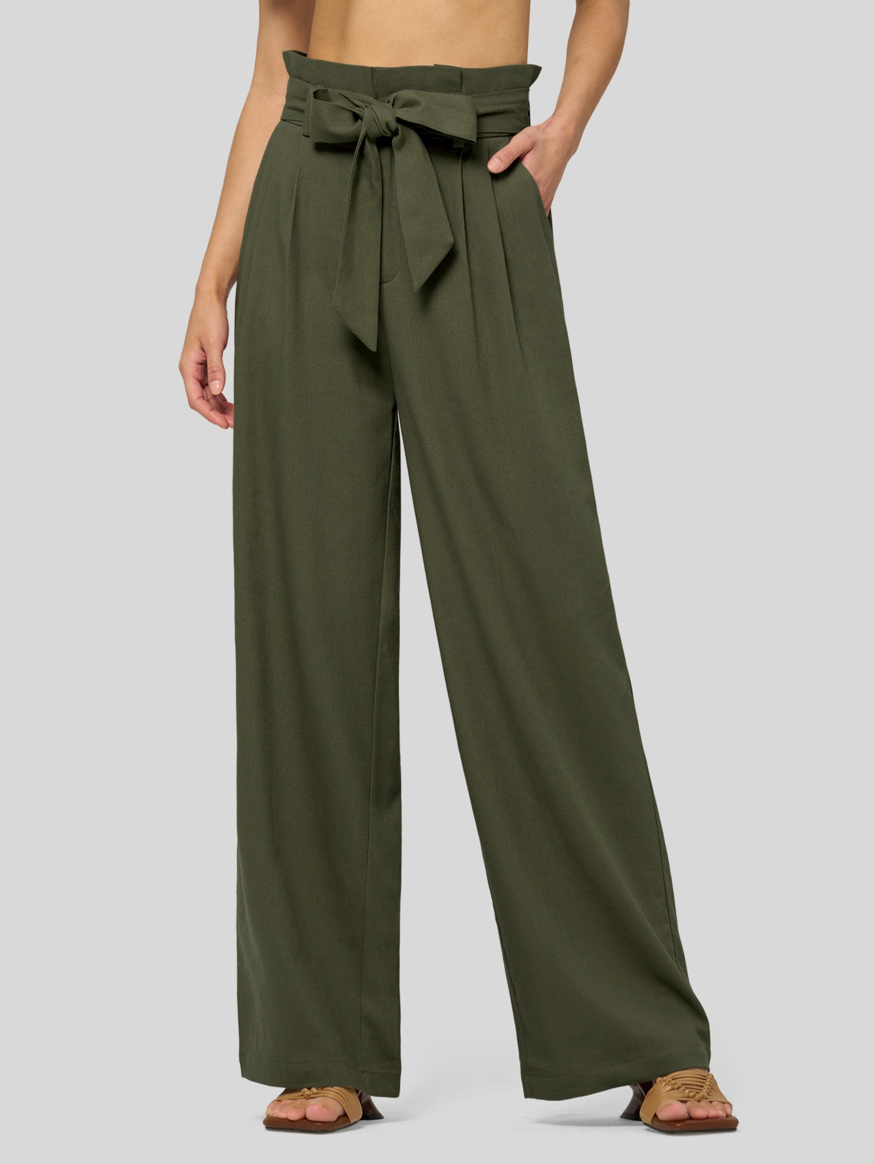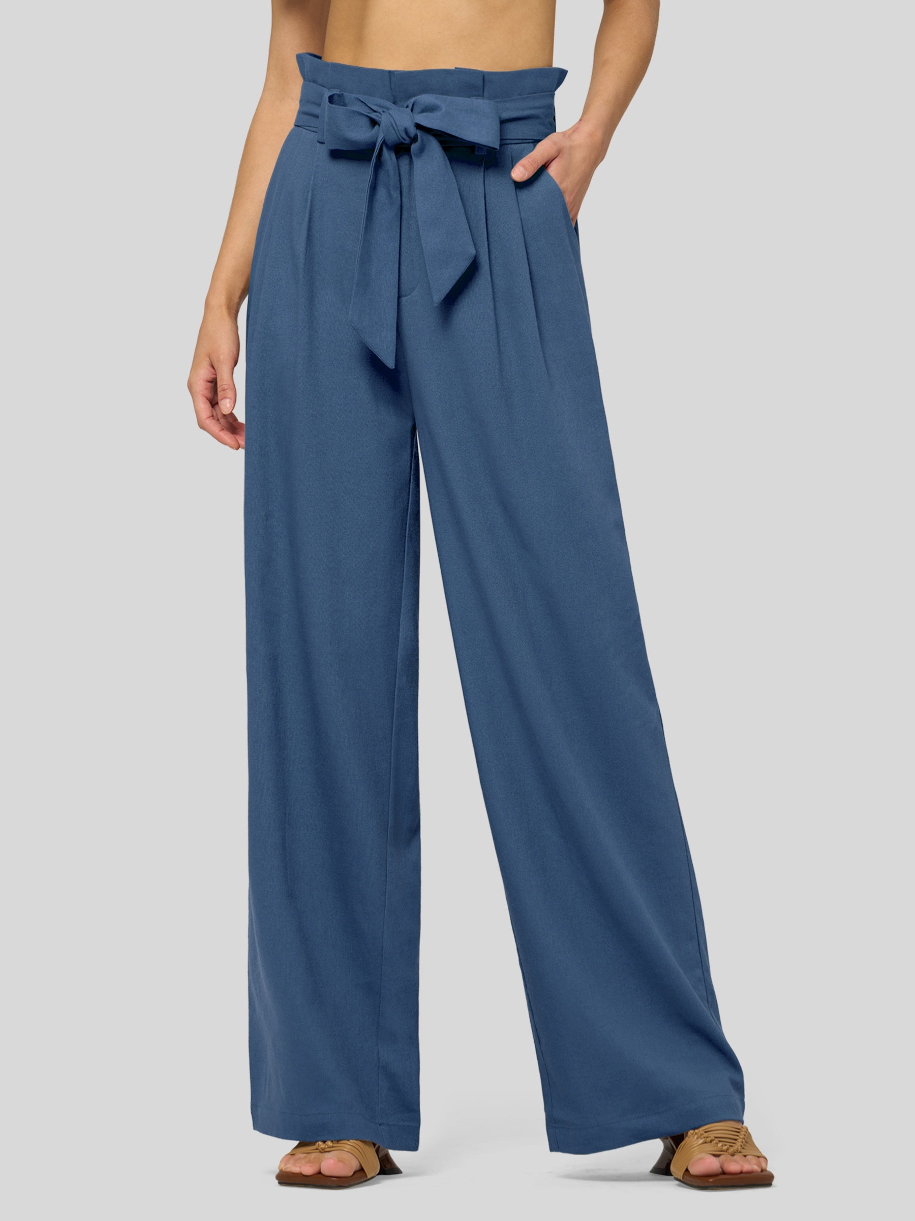 Women's Linen Tie Knot Work Slacks 28 Inch