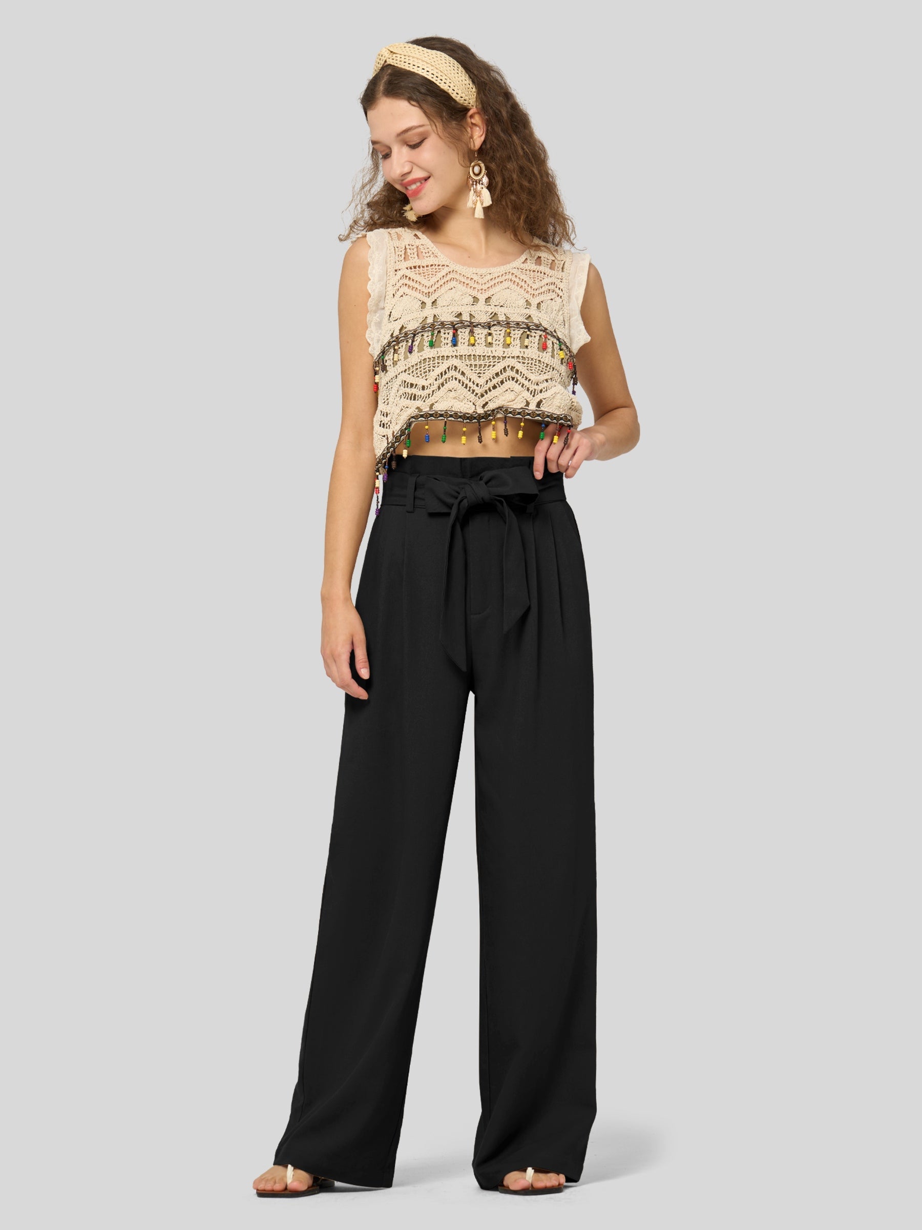 Oversized bow-tie waistband adds a stylish, feminine touch to elevate any outfit. -