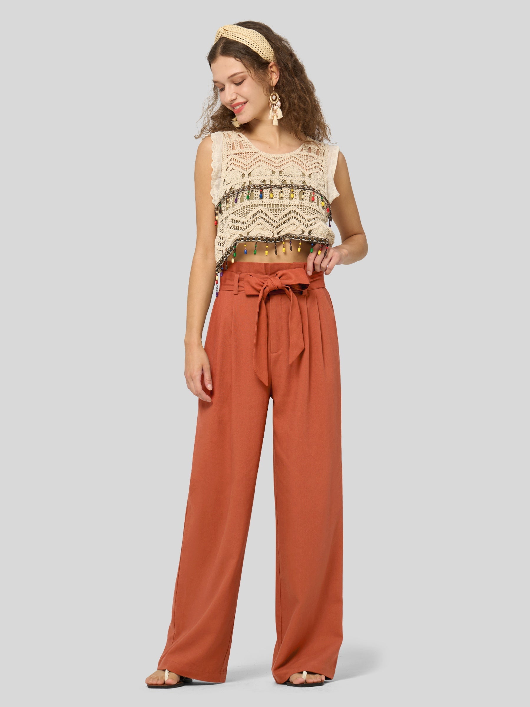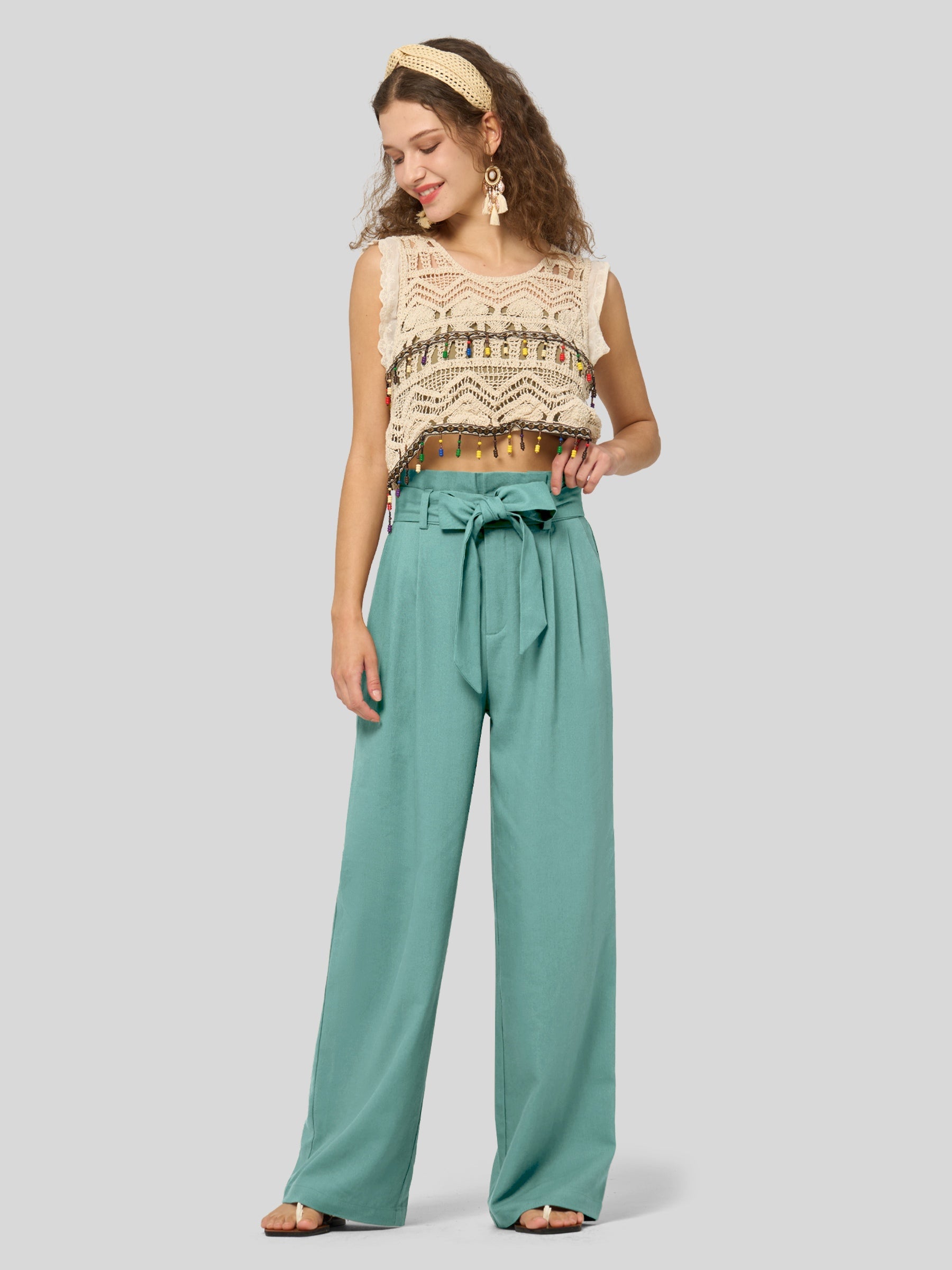 Women's Linen Tie Knot Work Slacks 32 Inch