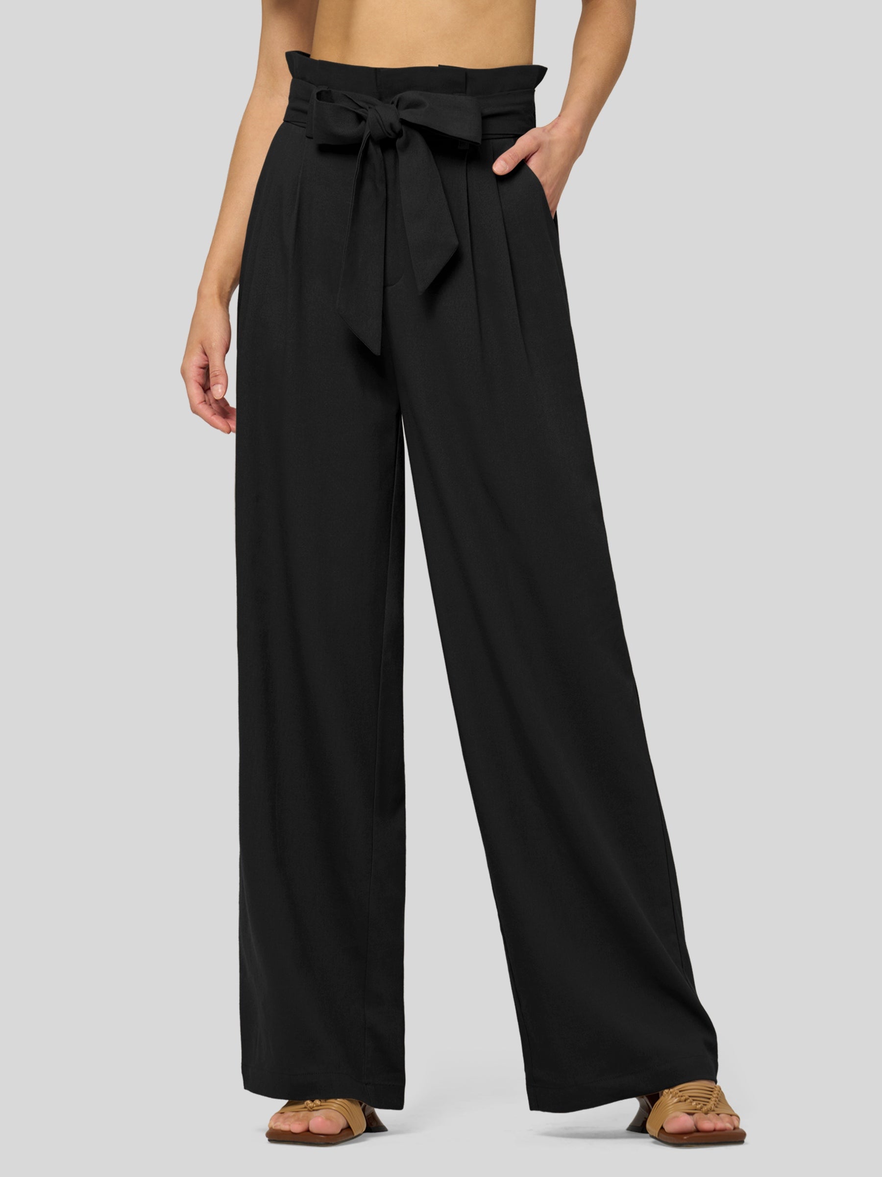 Oversized bow-tie waistband adds a stylish, feminine touch to elevate any outfit. -