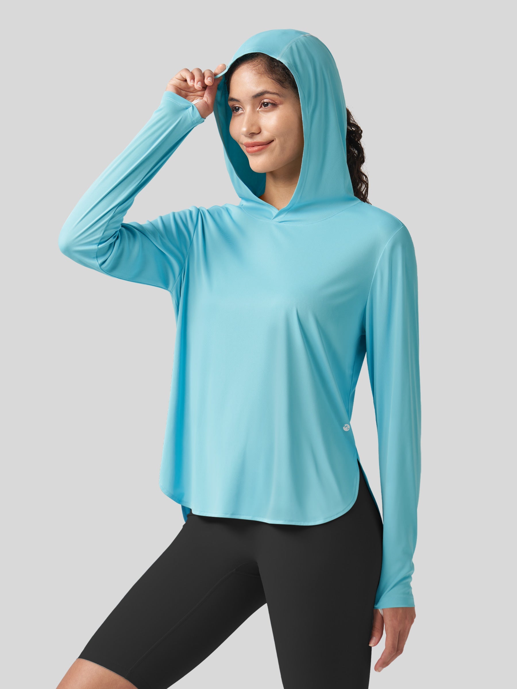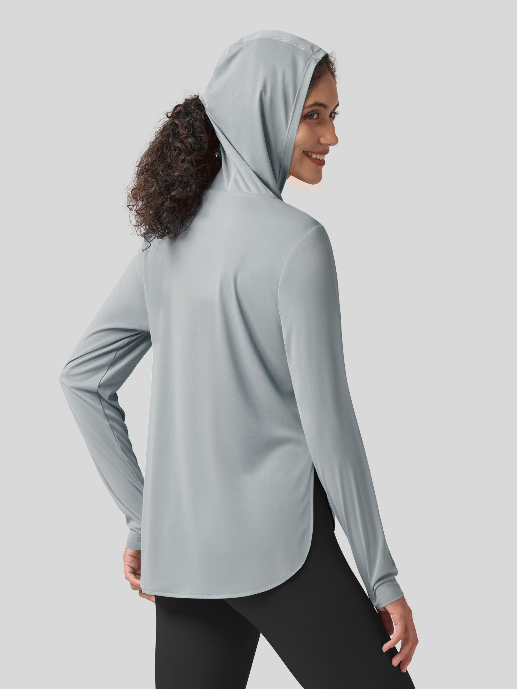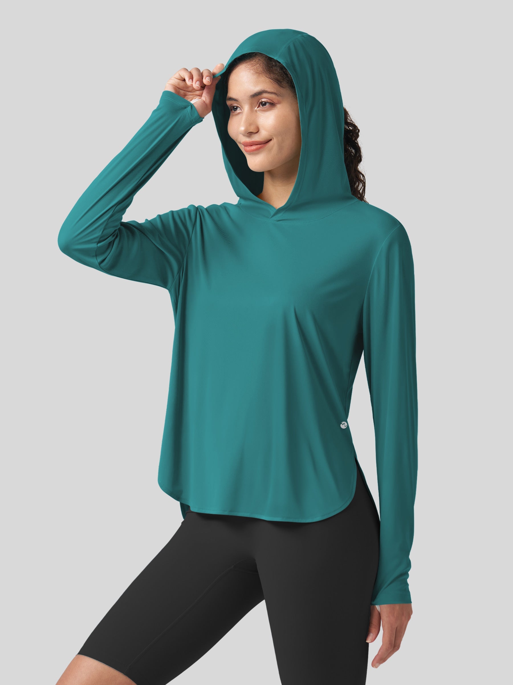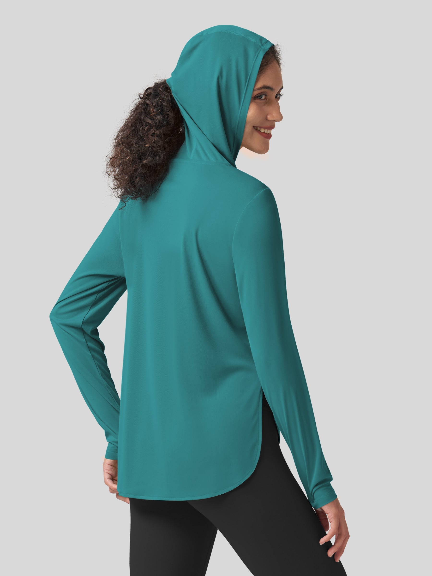 Full Coverage Design: Hood and thumbholes protect neck, arms, and hands from the sun.