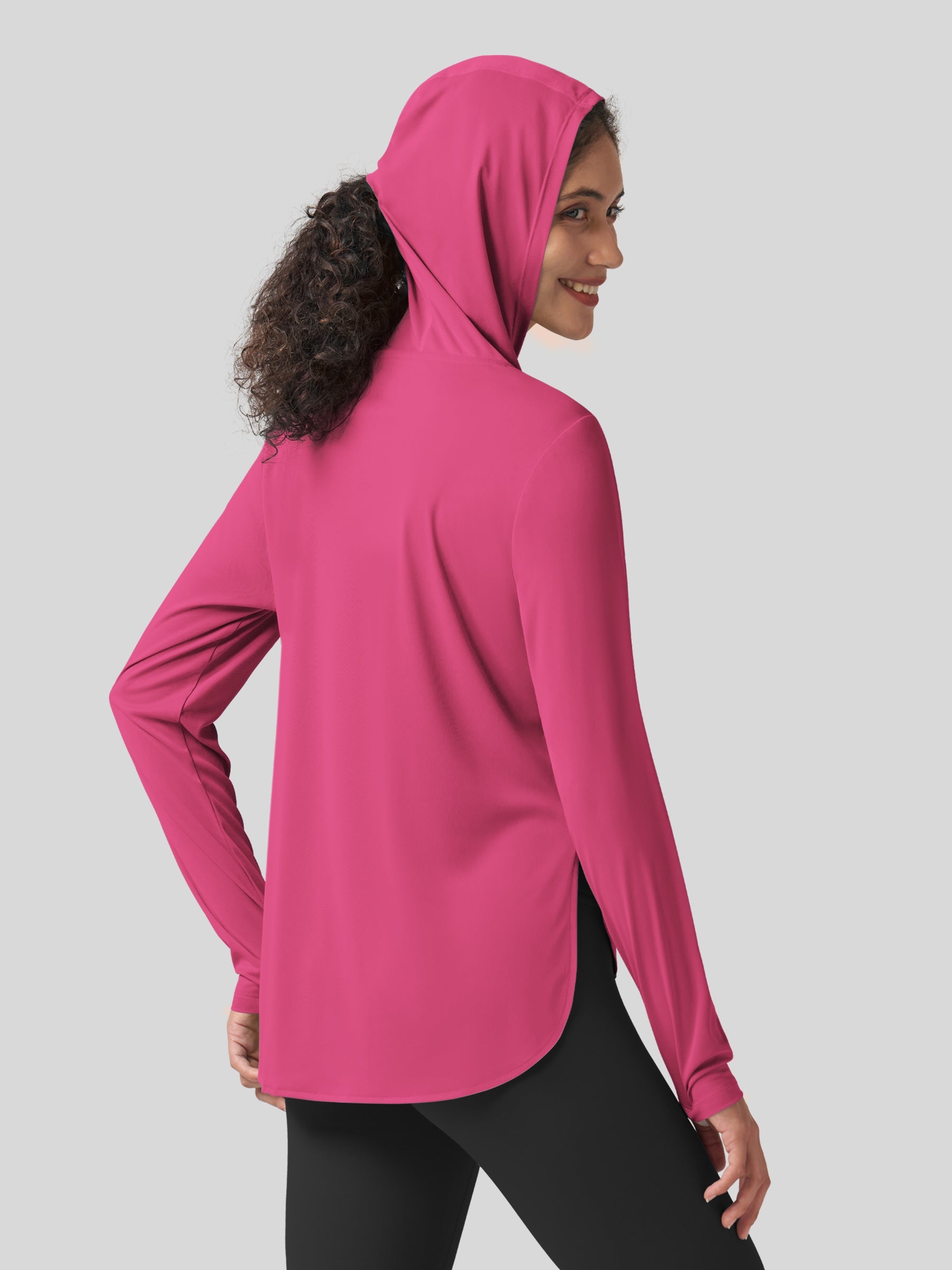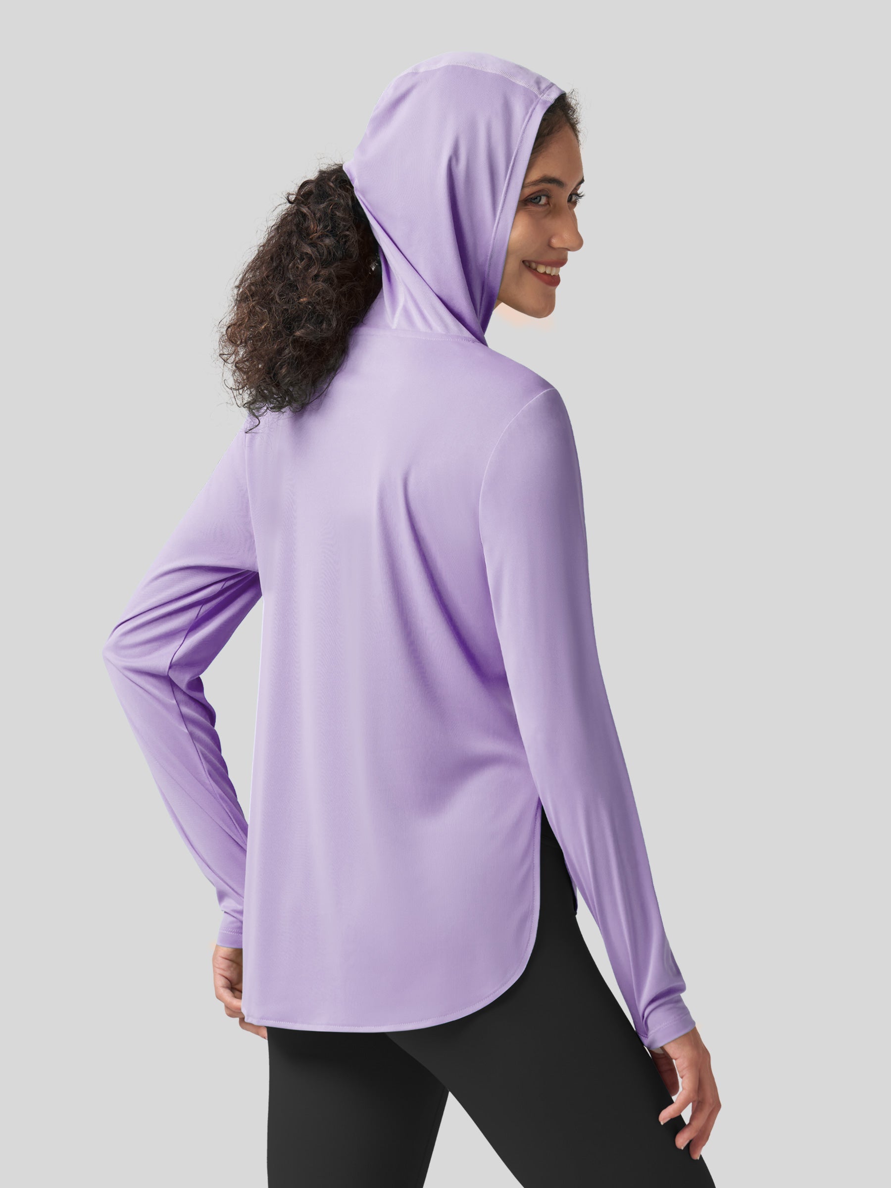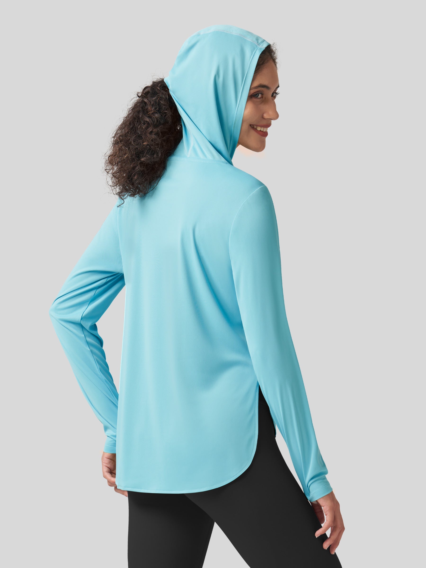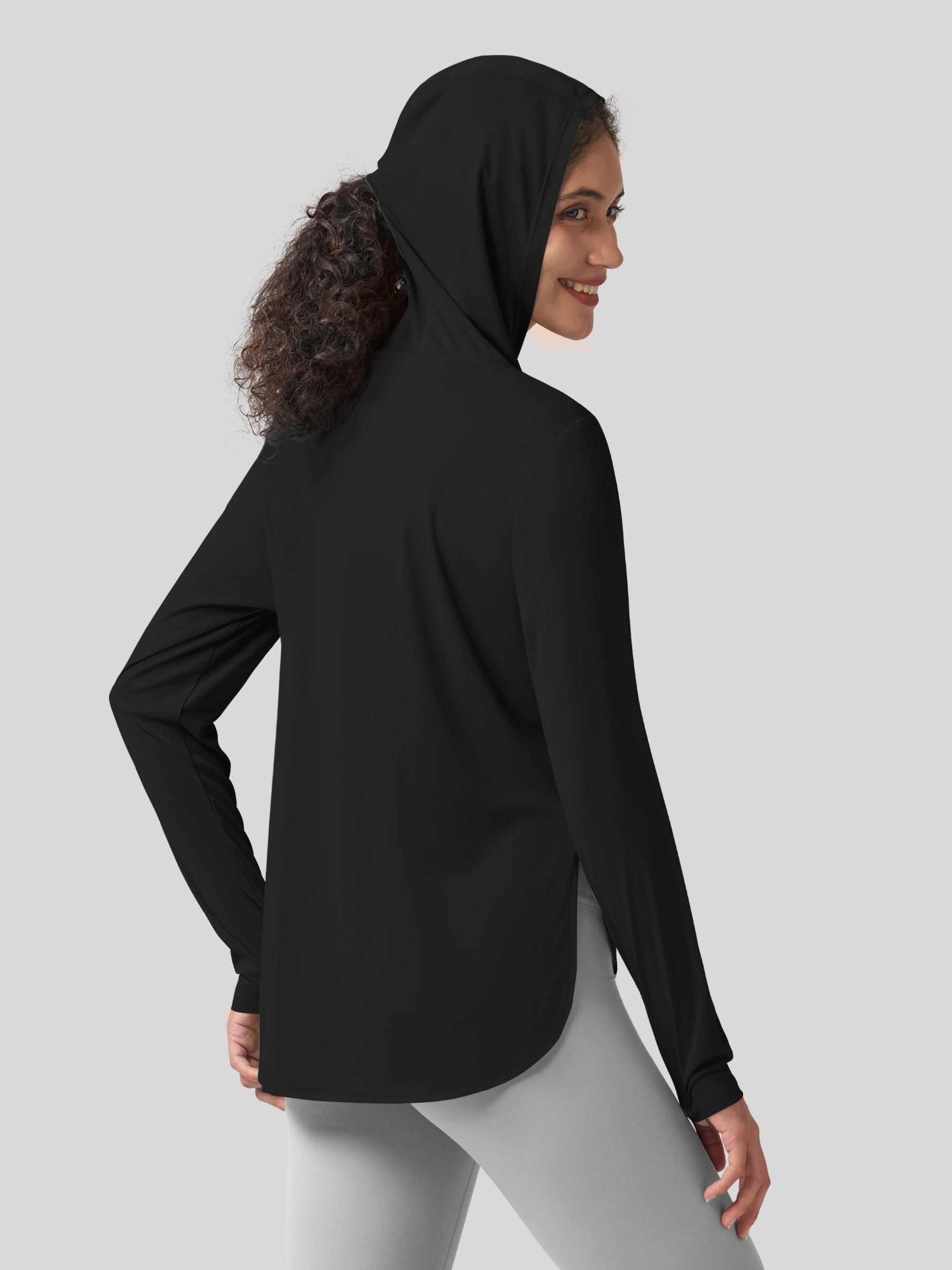 Full Coverage Design: Hood and thumbholes protect neck, arms, and hands from the sun.