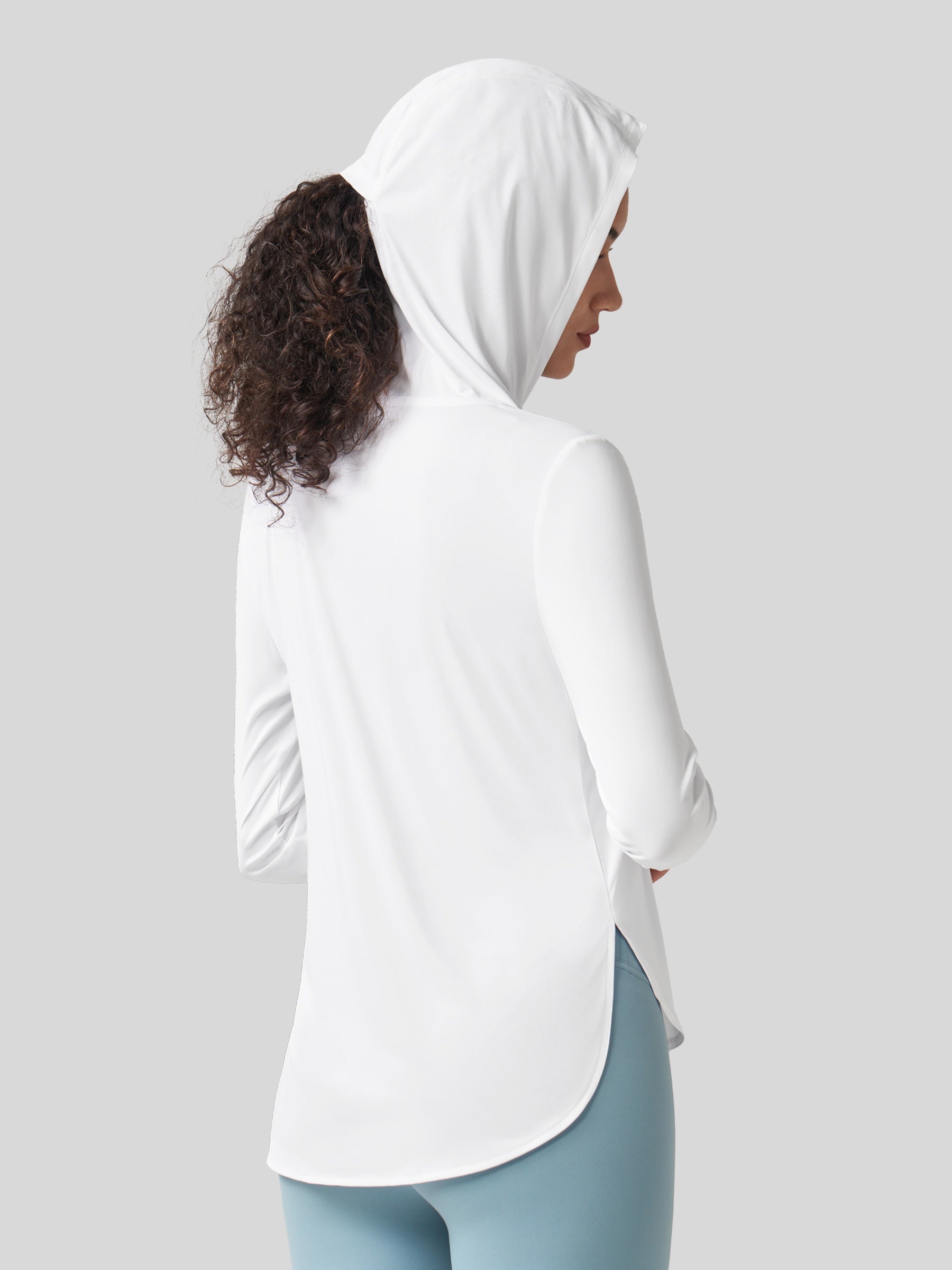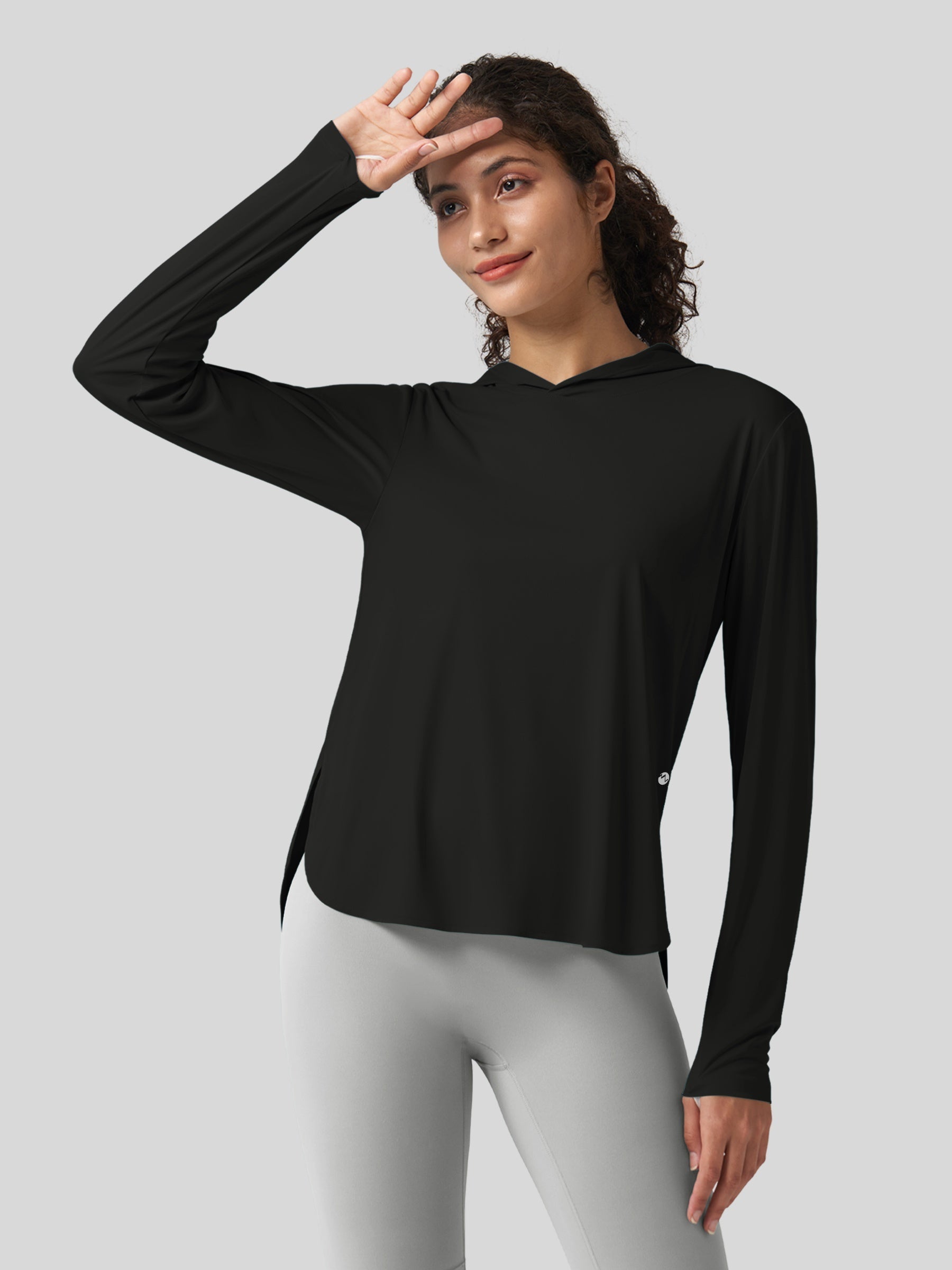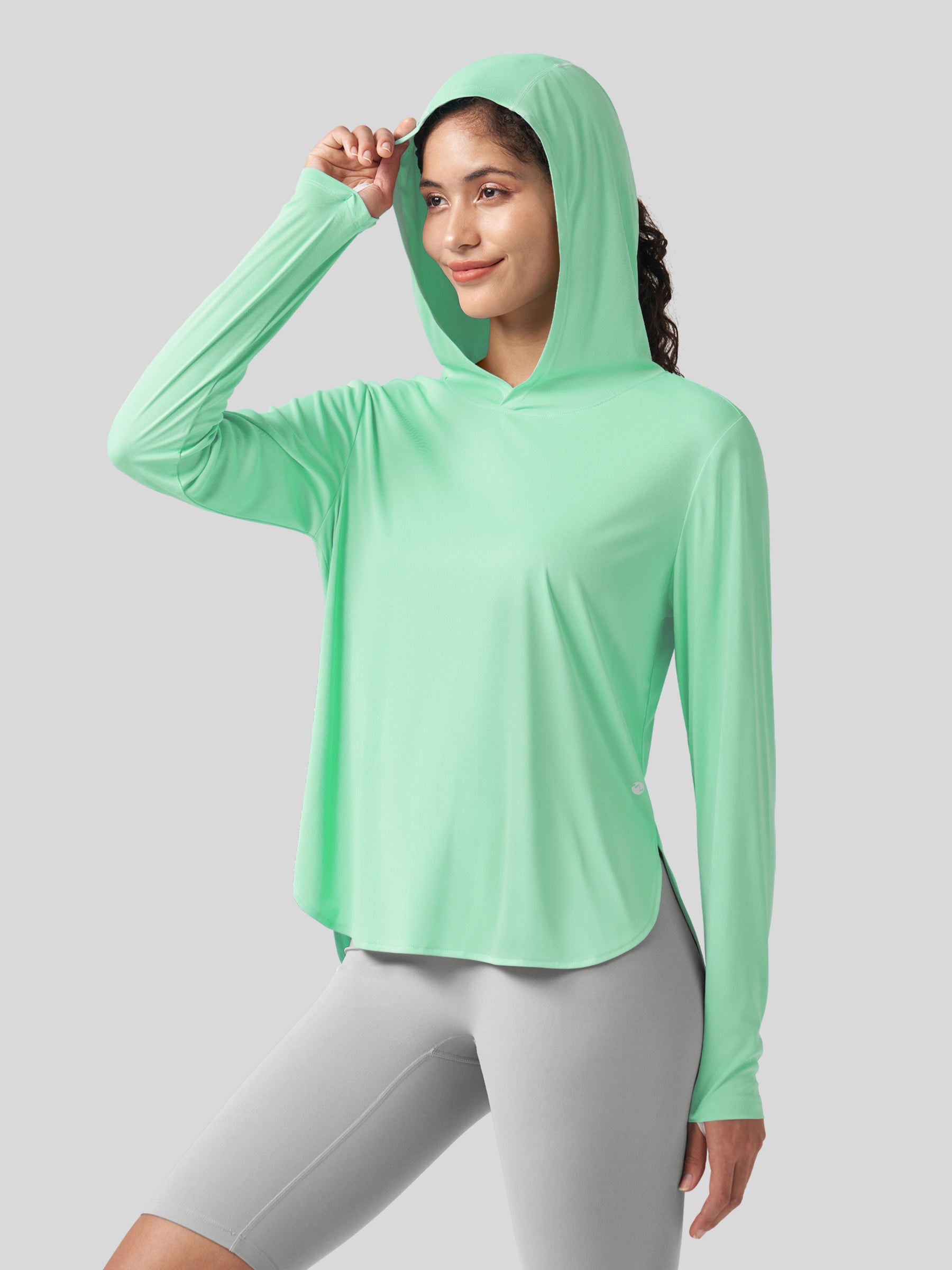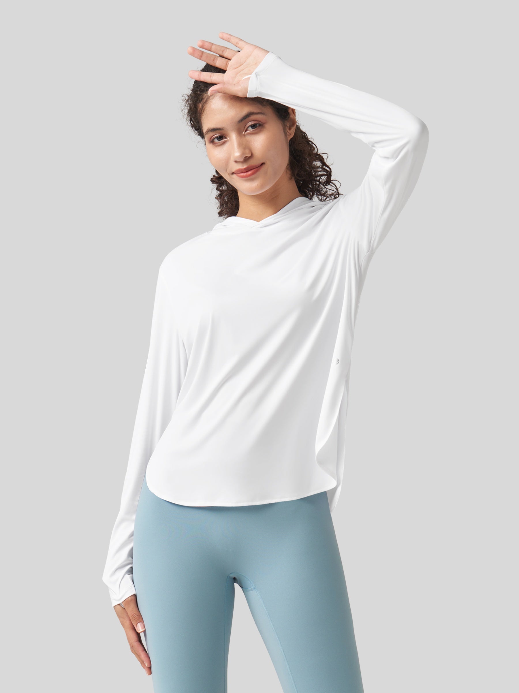 Full Coverage Design: Hood and thumbholes protect neck, arms, and hands from the sun.