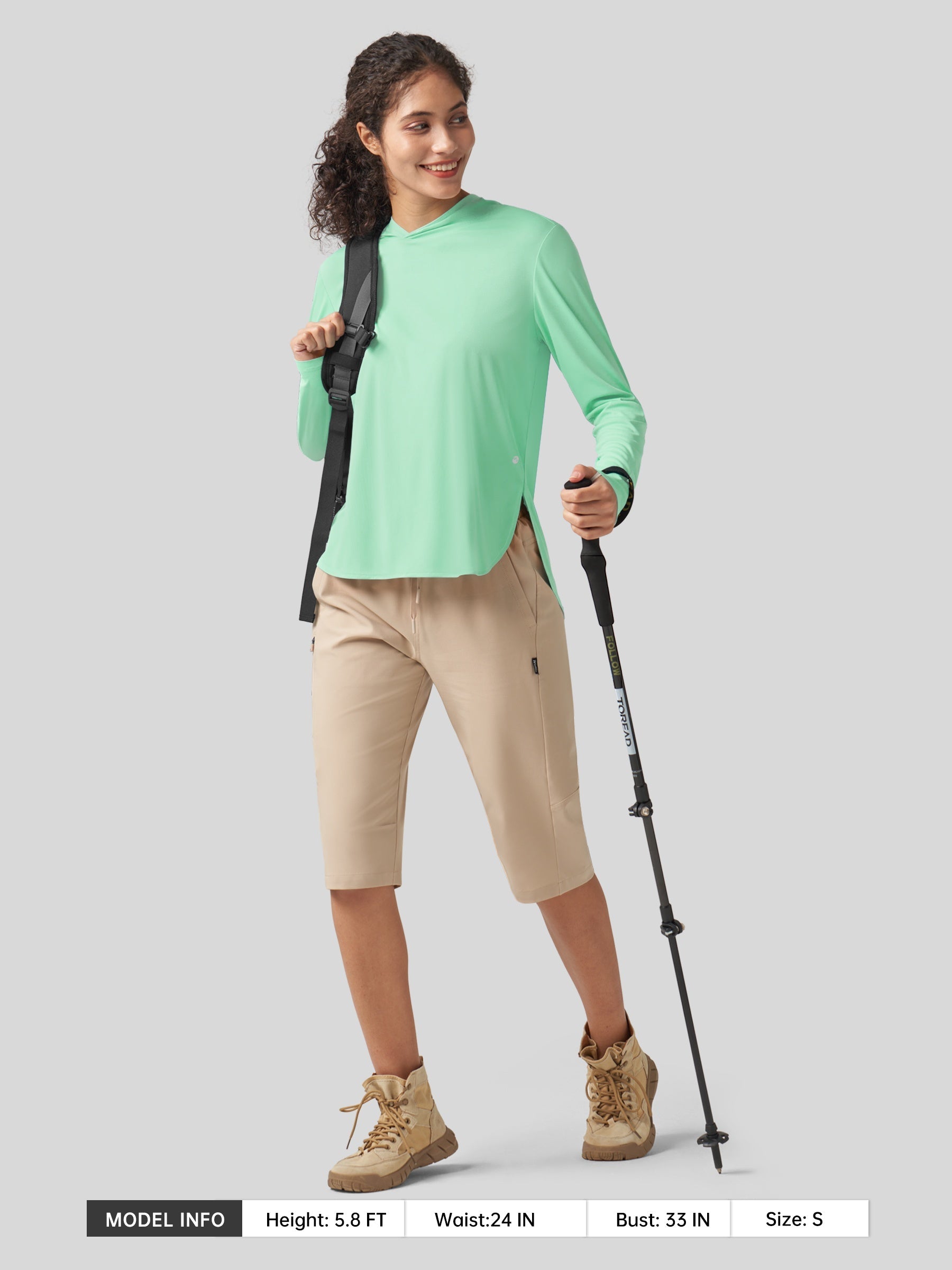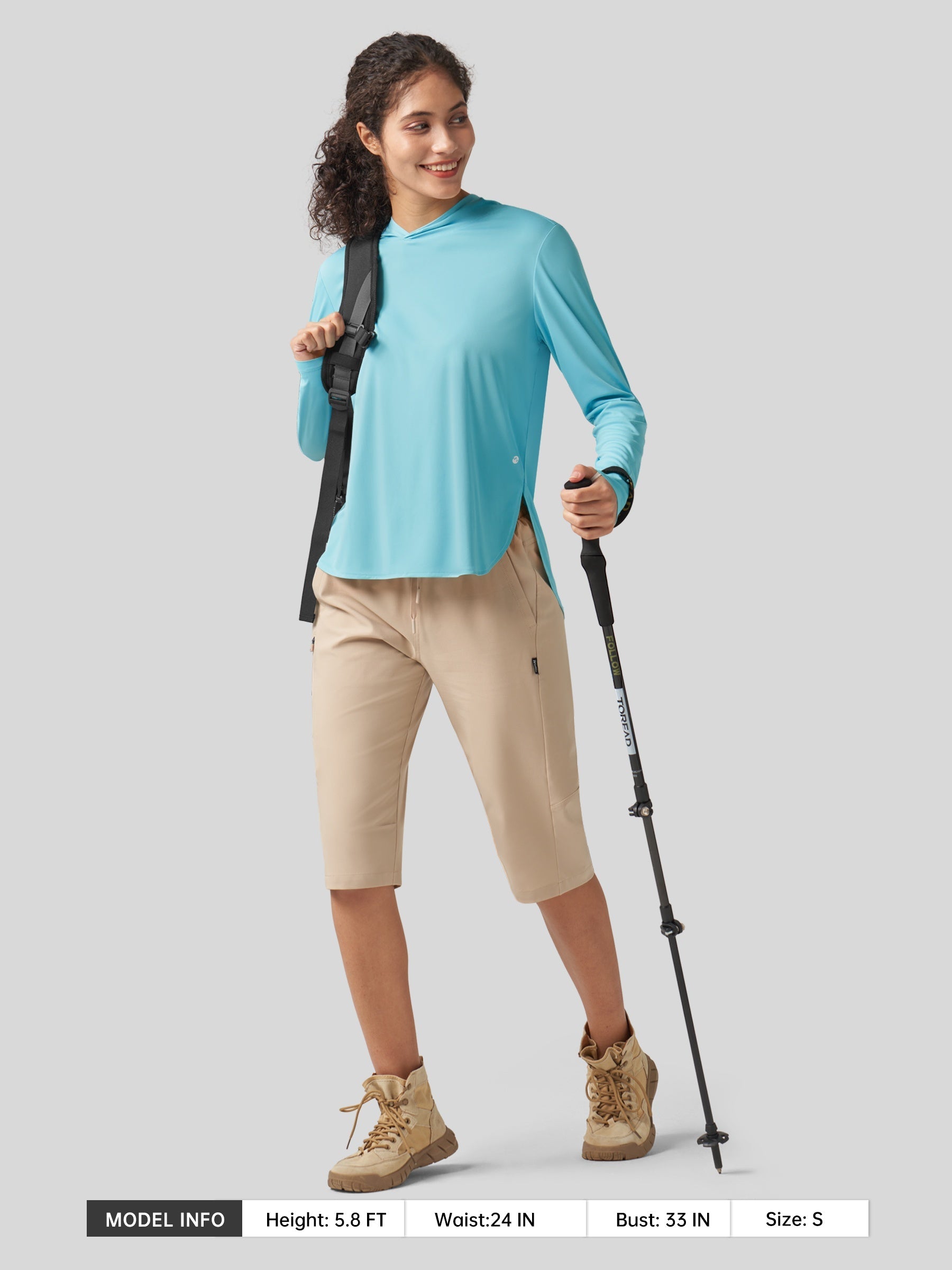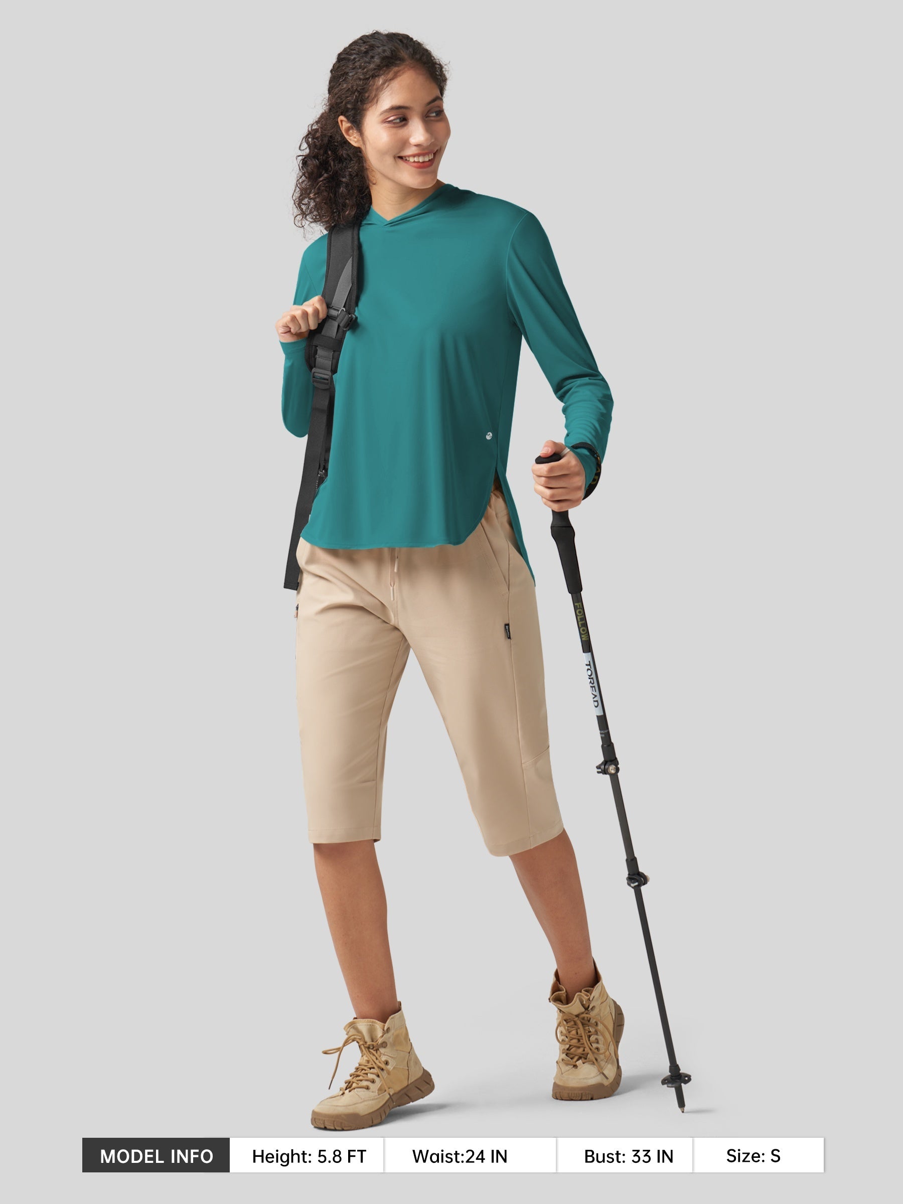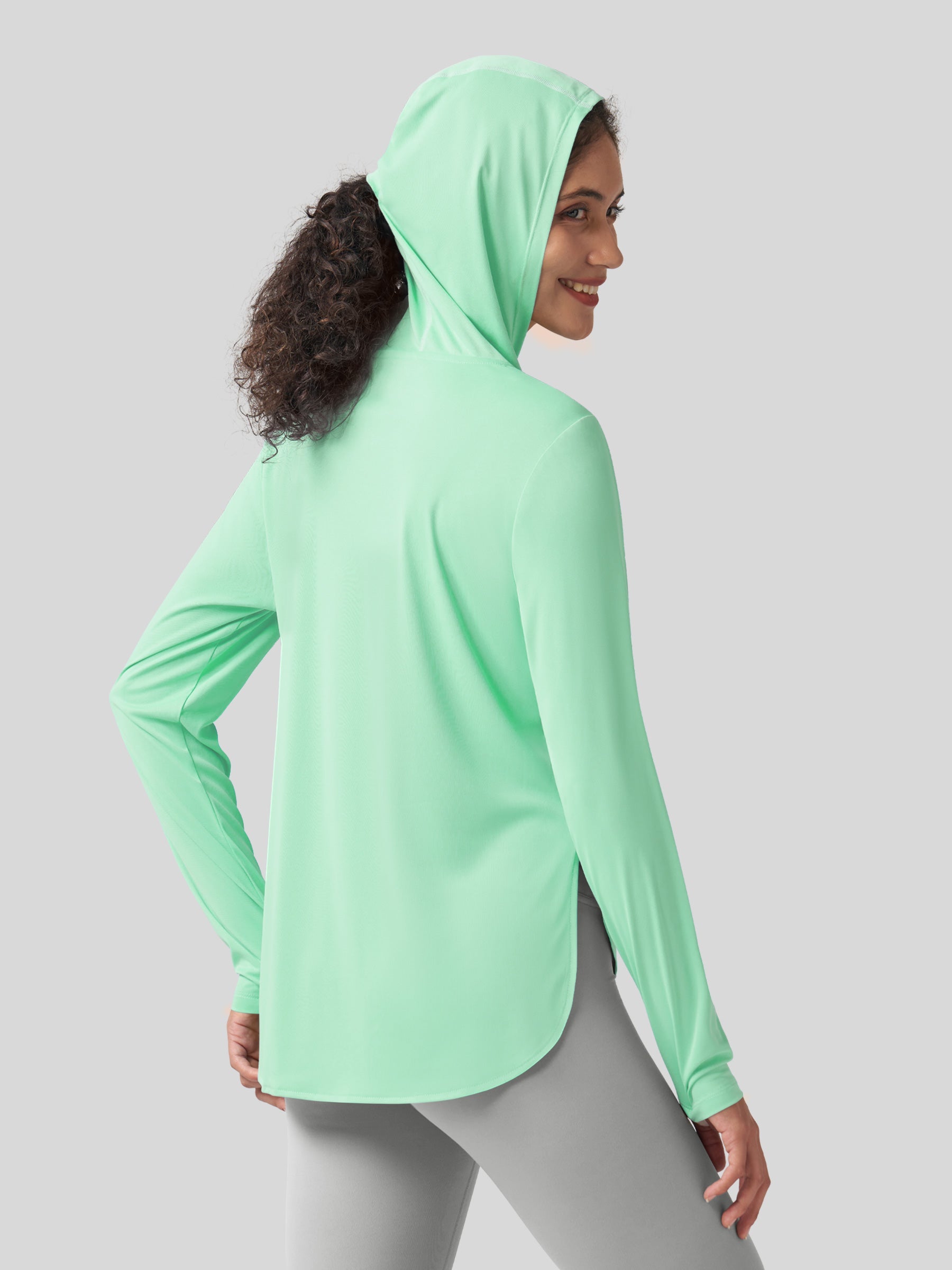 Full Coverage Design: Hood and thumbholes protect neck, arms, and hands from the sun.