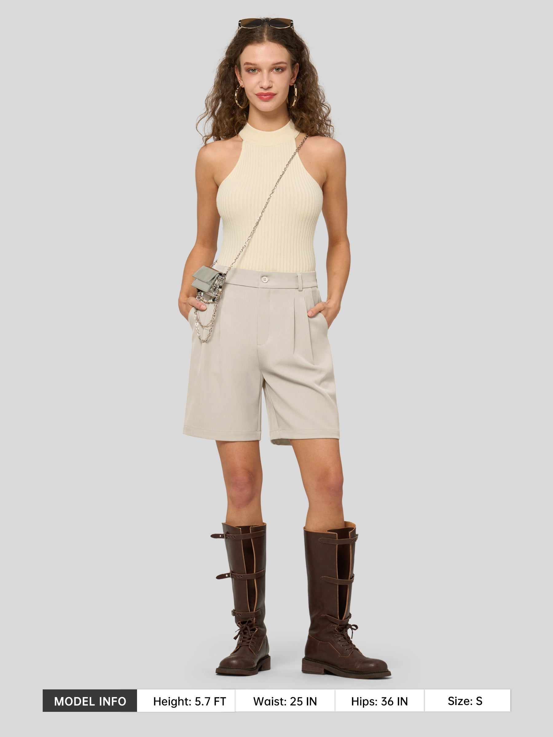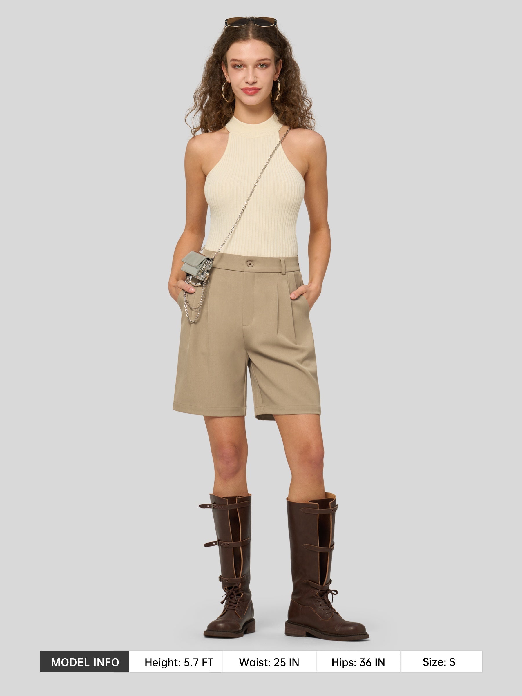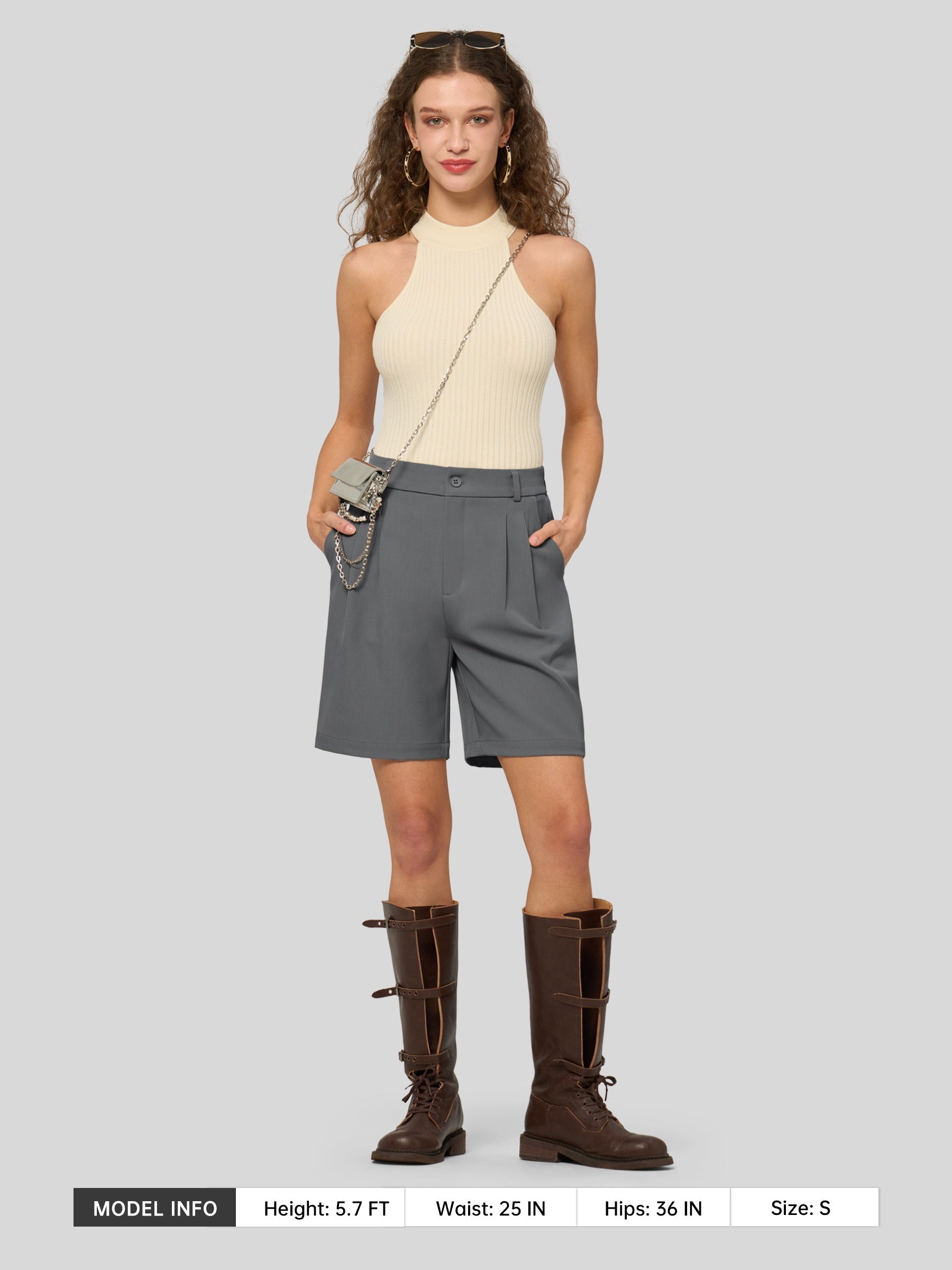 Flattering Fit: High-waisted with elastic back and front pleats for a chic, sculpted look.