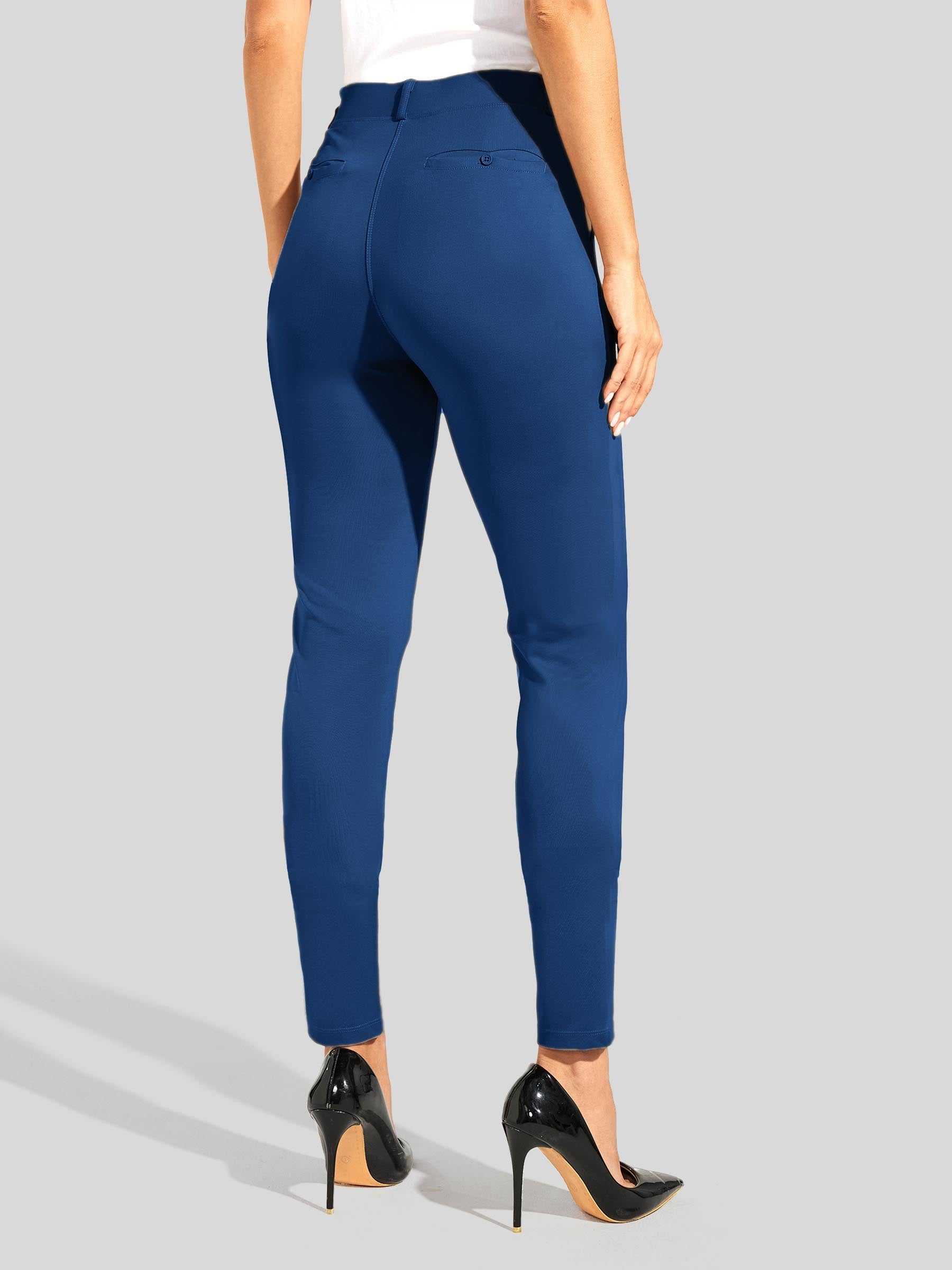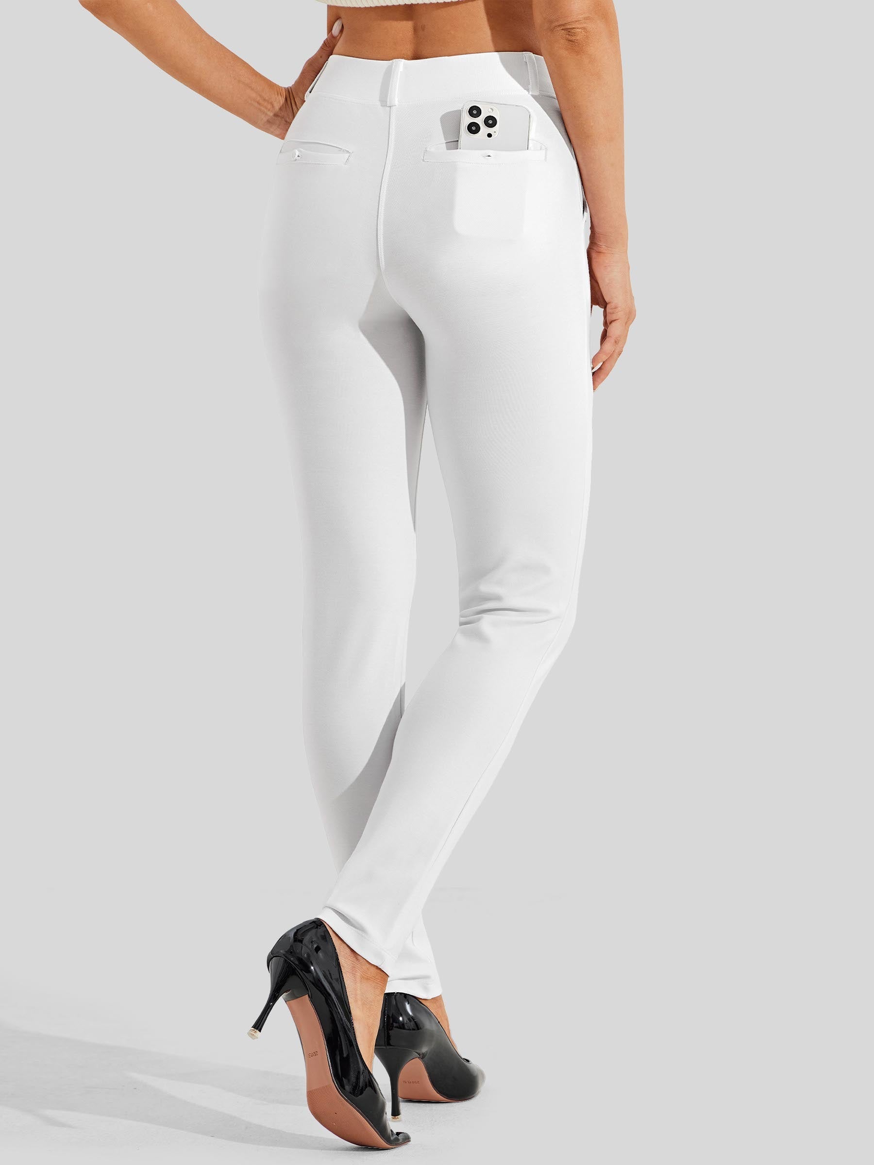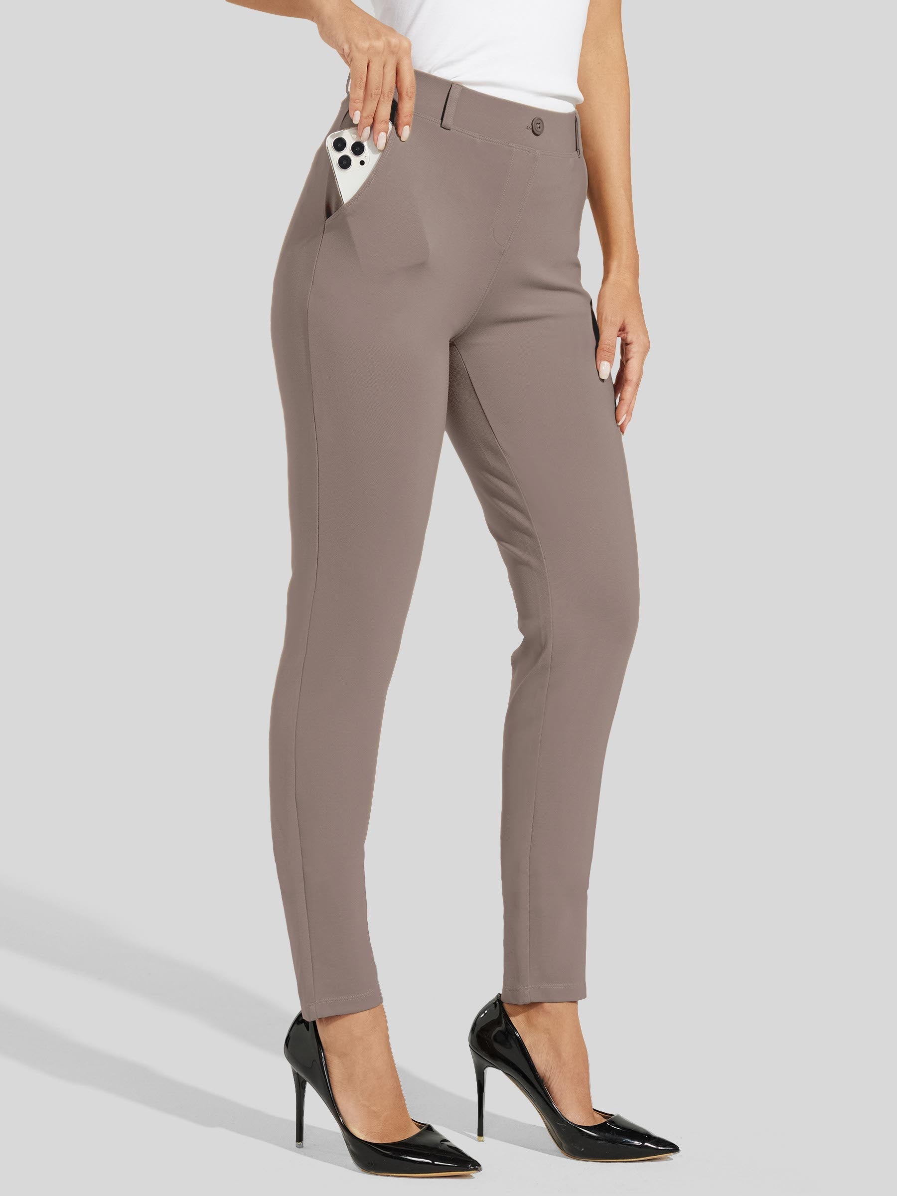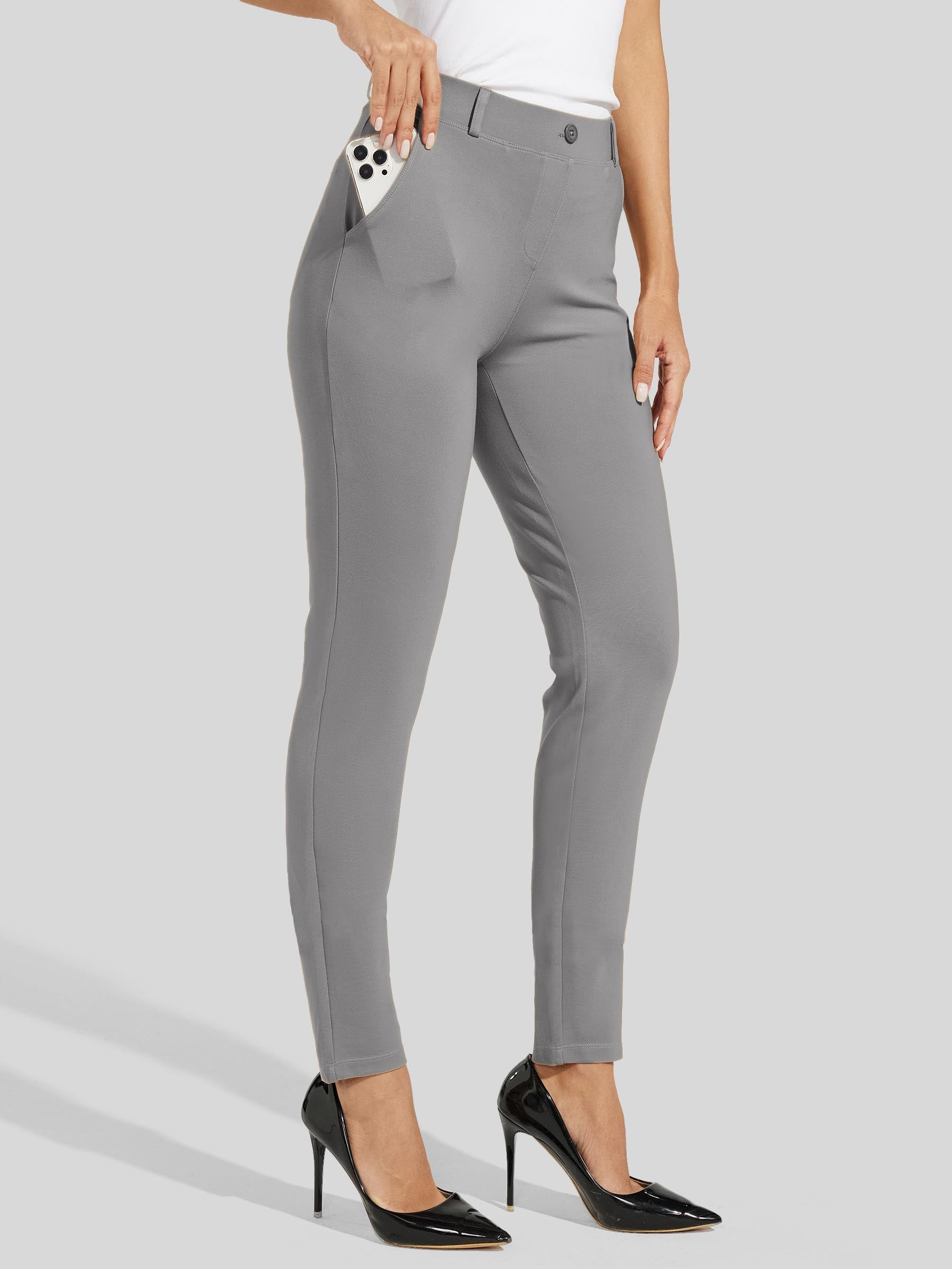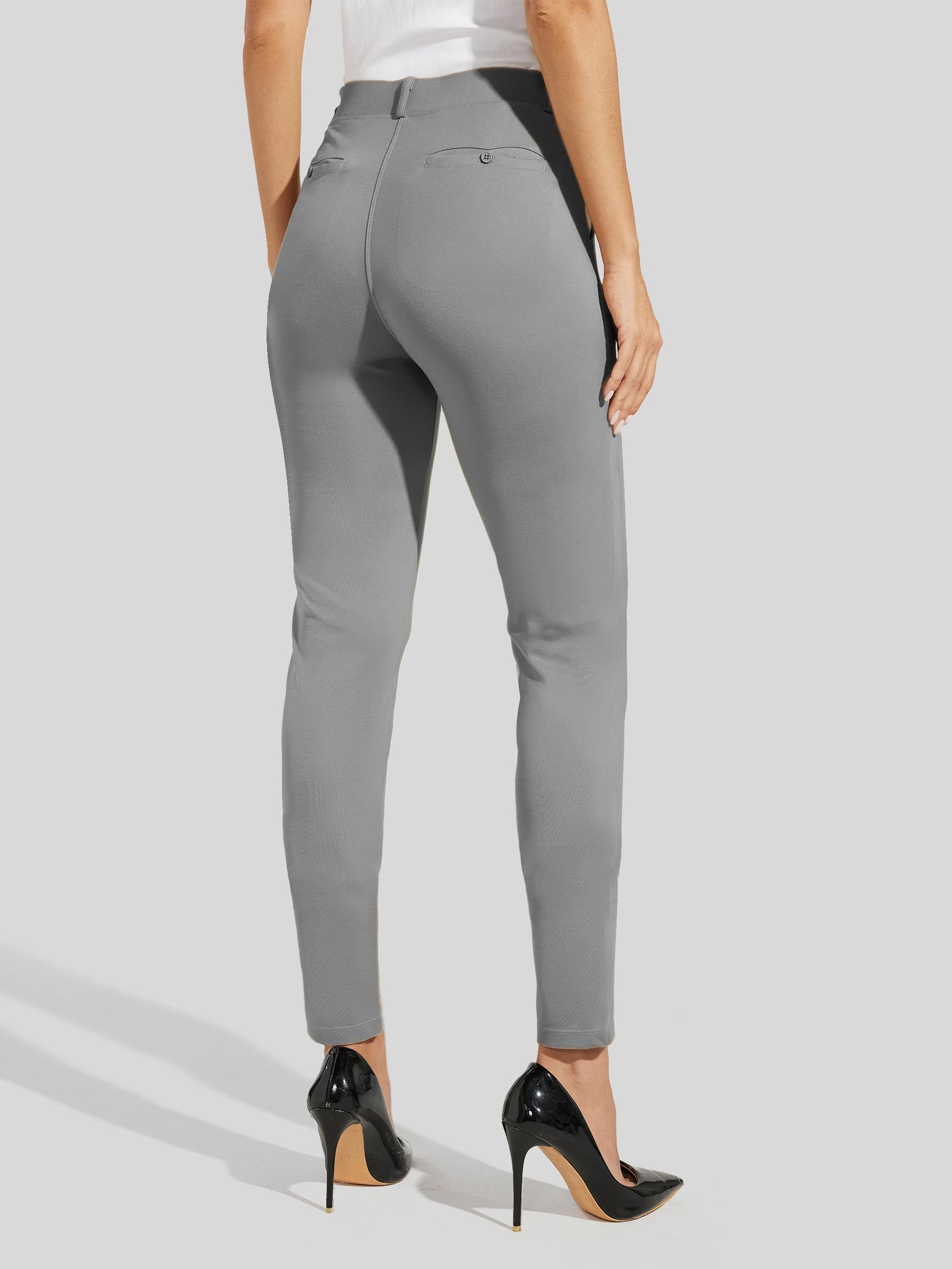 - Petite- 28" inseam fits women 5'1"-5'3" / Regular- 30" inseam fits women 5'4"-5'6". These Skinny Work slacks are a solid choice for every body type, all or petite, slender, or plus size. Wrinkle-resistant for easy care. No see-through, four-way stretch buttery soft material is professional for work and comfortable all day