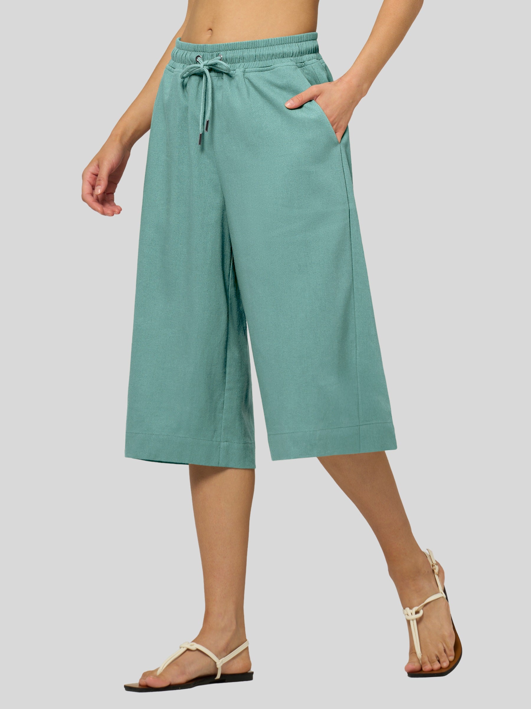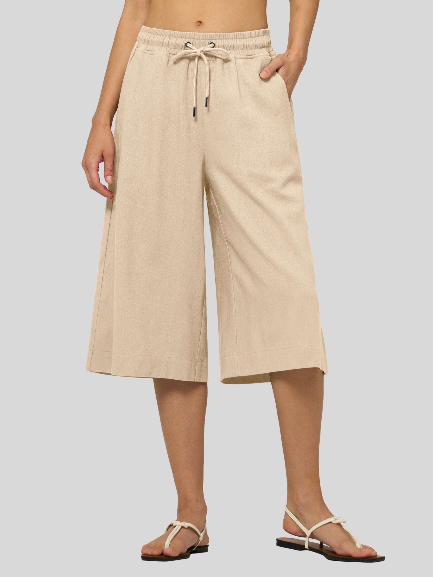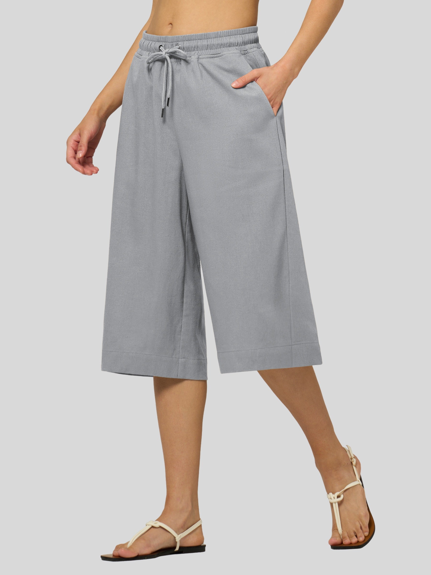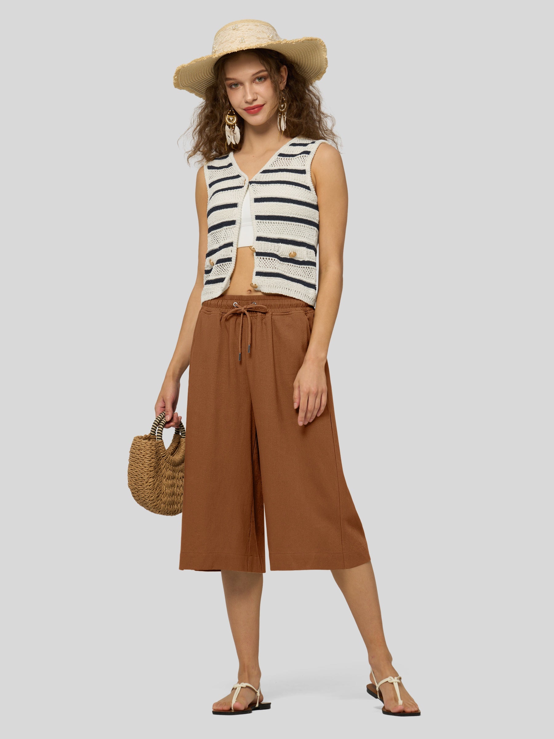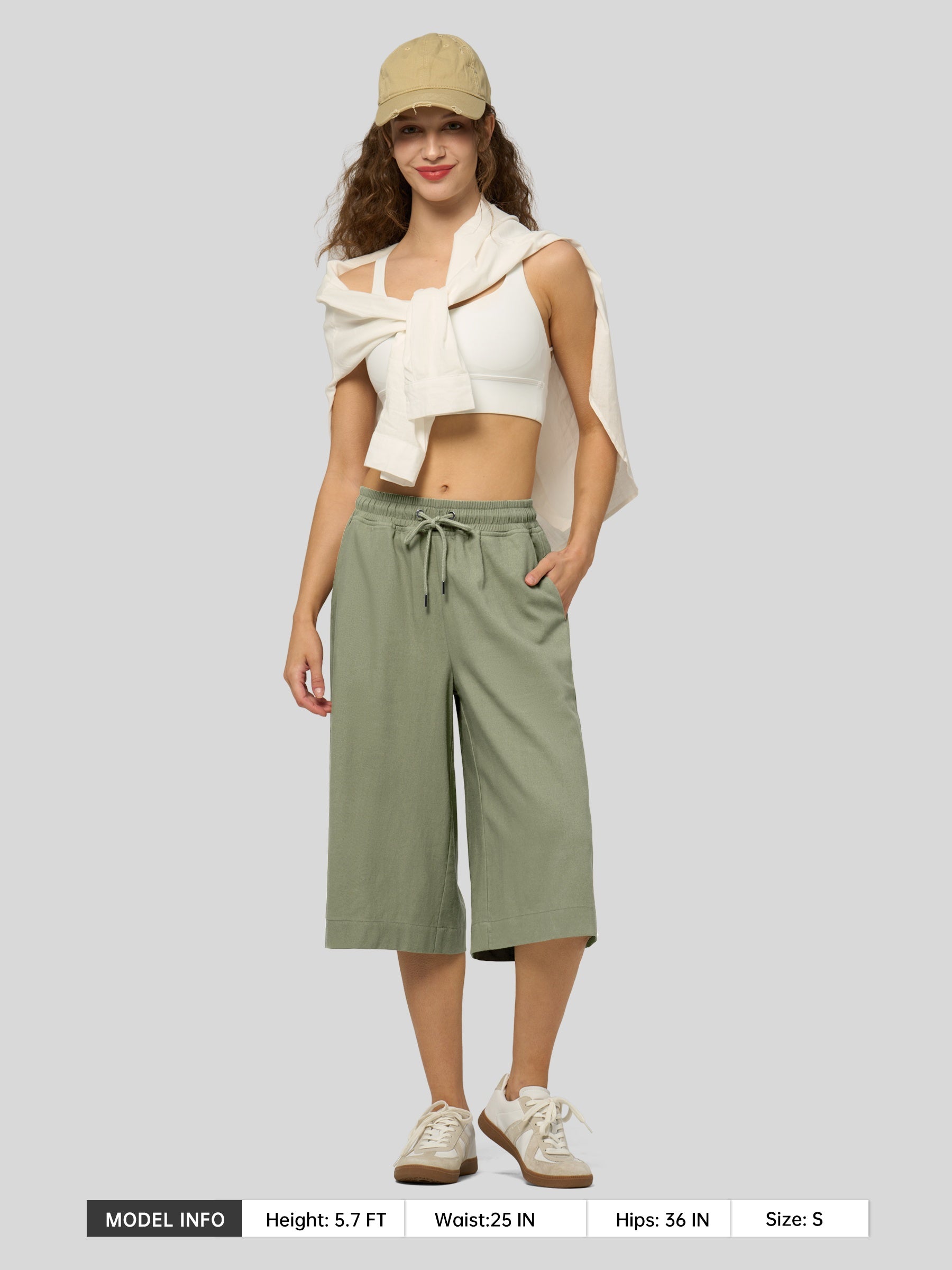 Comfort Waistband: Elastic waist with drawstring; flattering wide-leg fit.