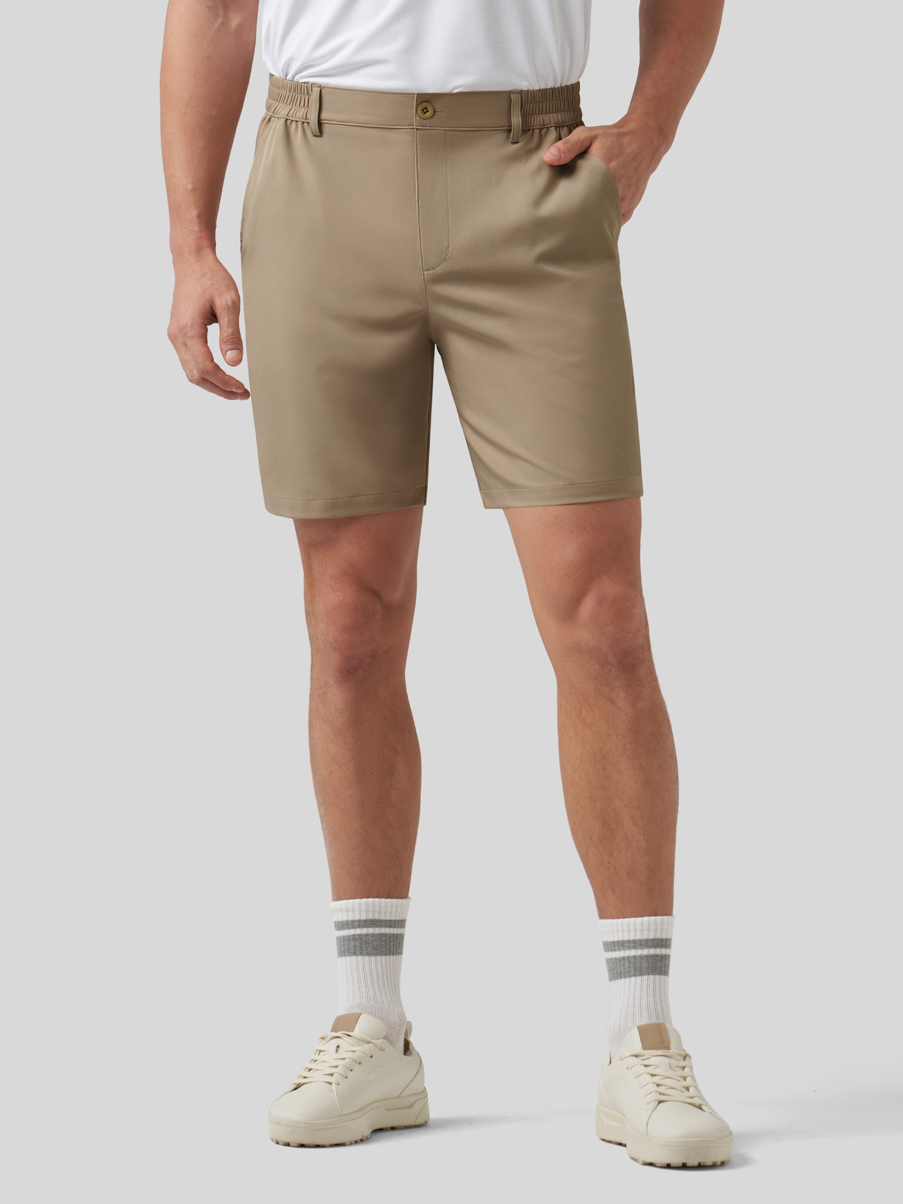 • Expandable Waistband: Elastic sides and fly front for a flexible fit