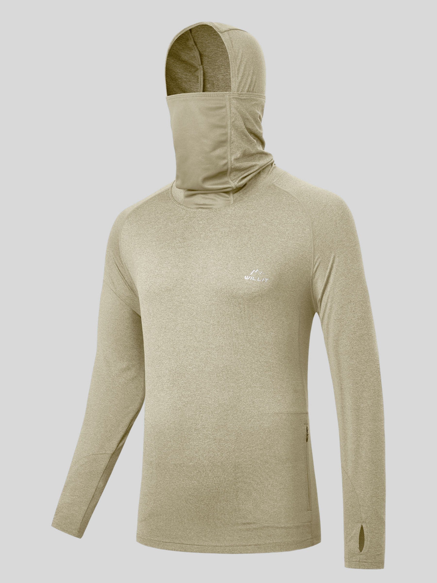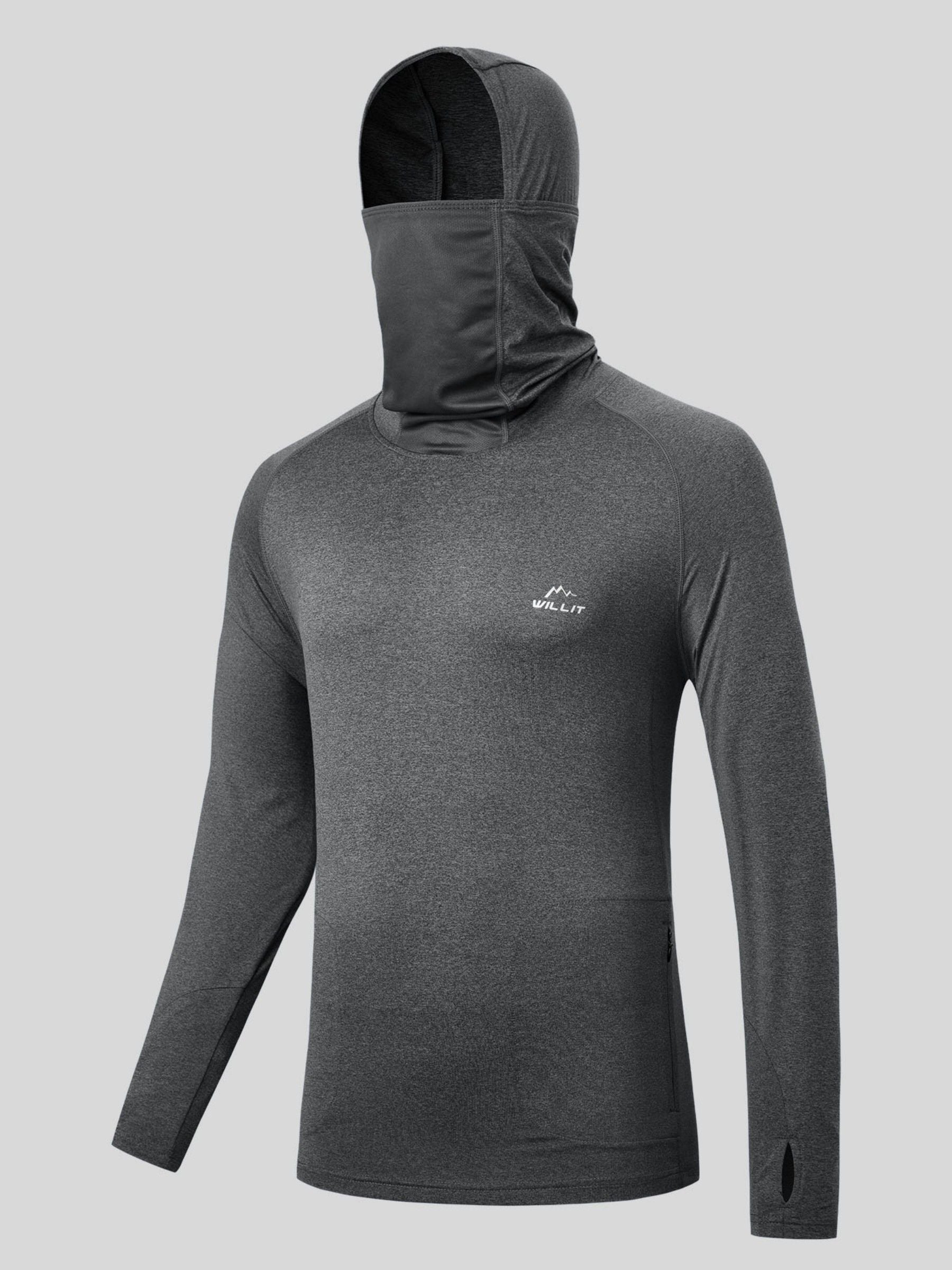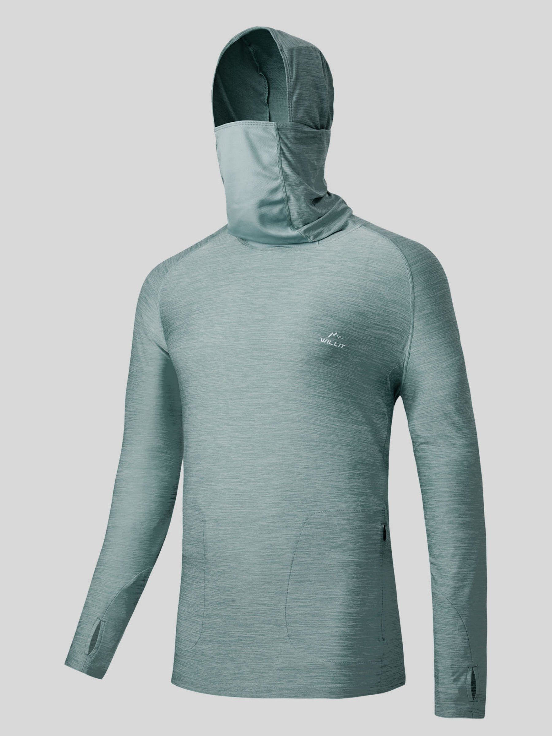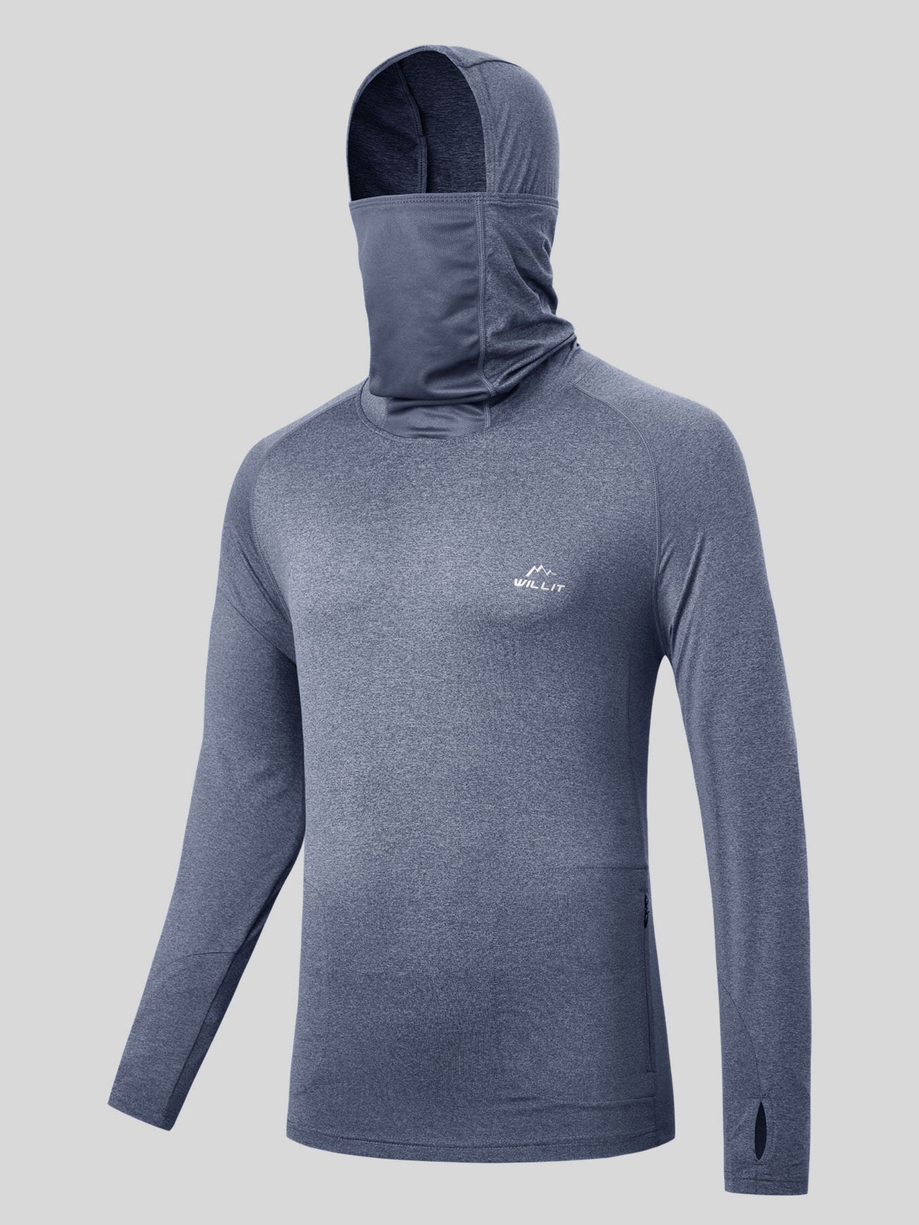 - HOOD AND Neck Gaiter: Hoodie design with a built-in neck gaiter prevents your neck and face from harmful UVA and UVB sun rays, dust and bugs. The neck gaiter features mesh holes for convenient breathing