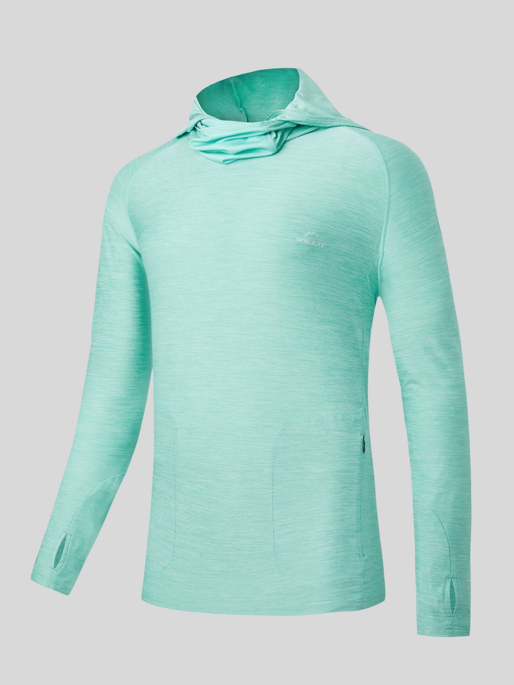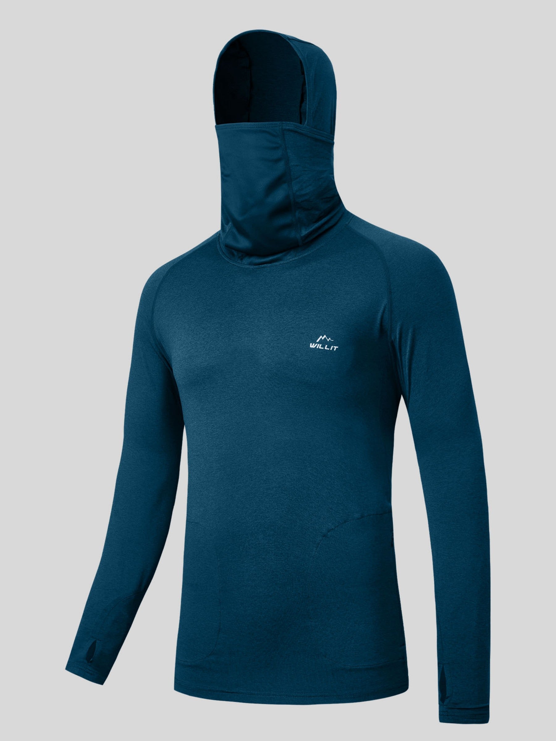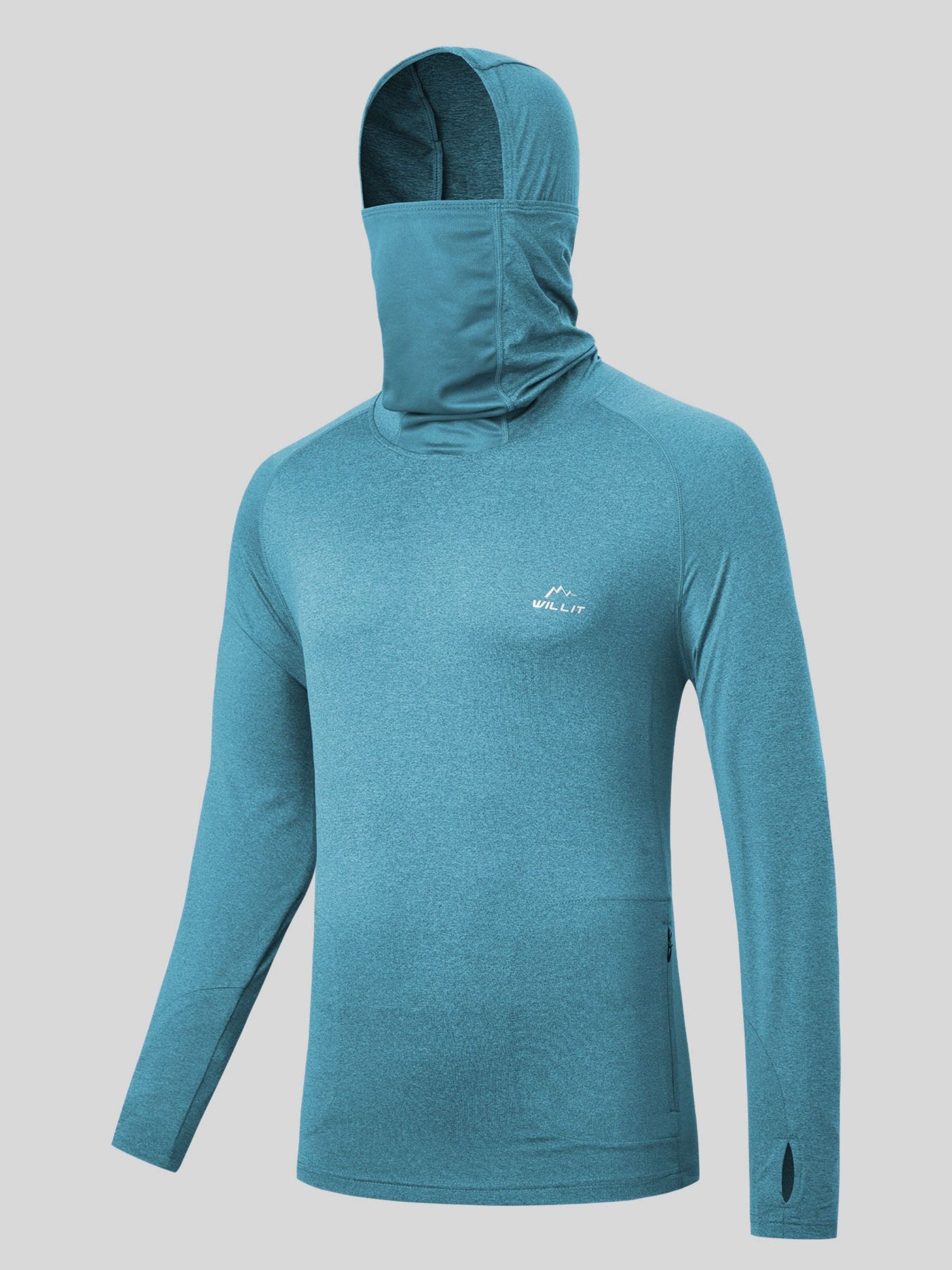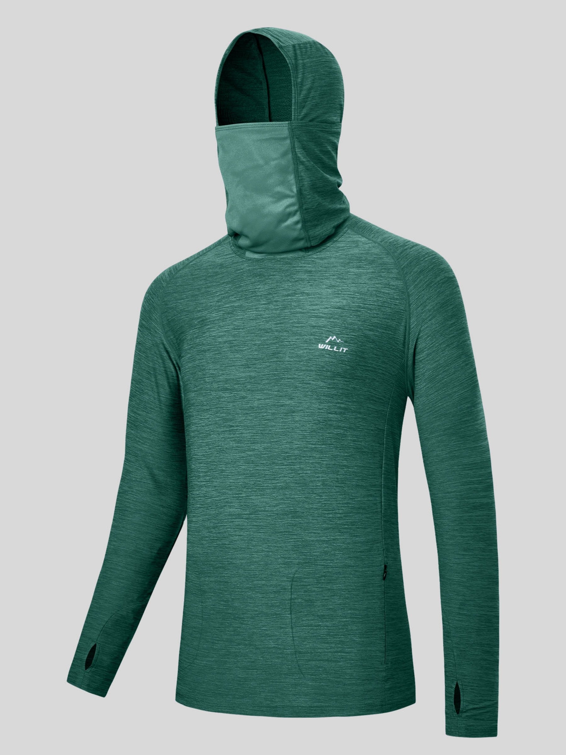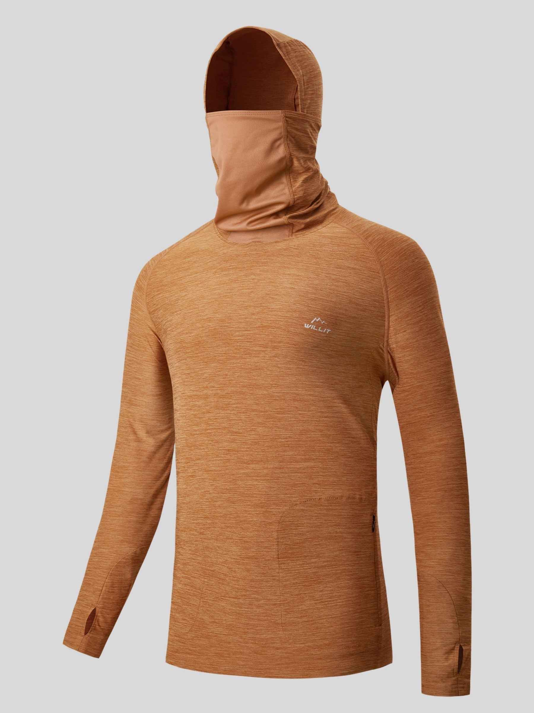 - HOOD AND Neck Gaiter: Hoodie design with a built-in neck gaiter prevents your neck and face from harmful UVA and UVB sun rays, dust and bugs. The neck gaiter features mesh holes for convenient breathing