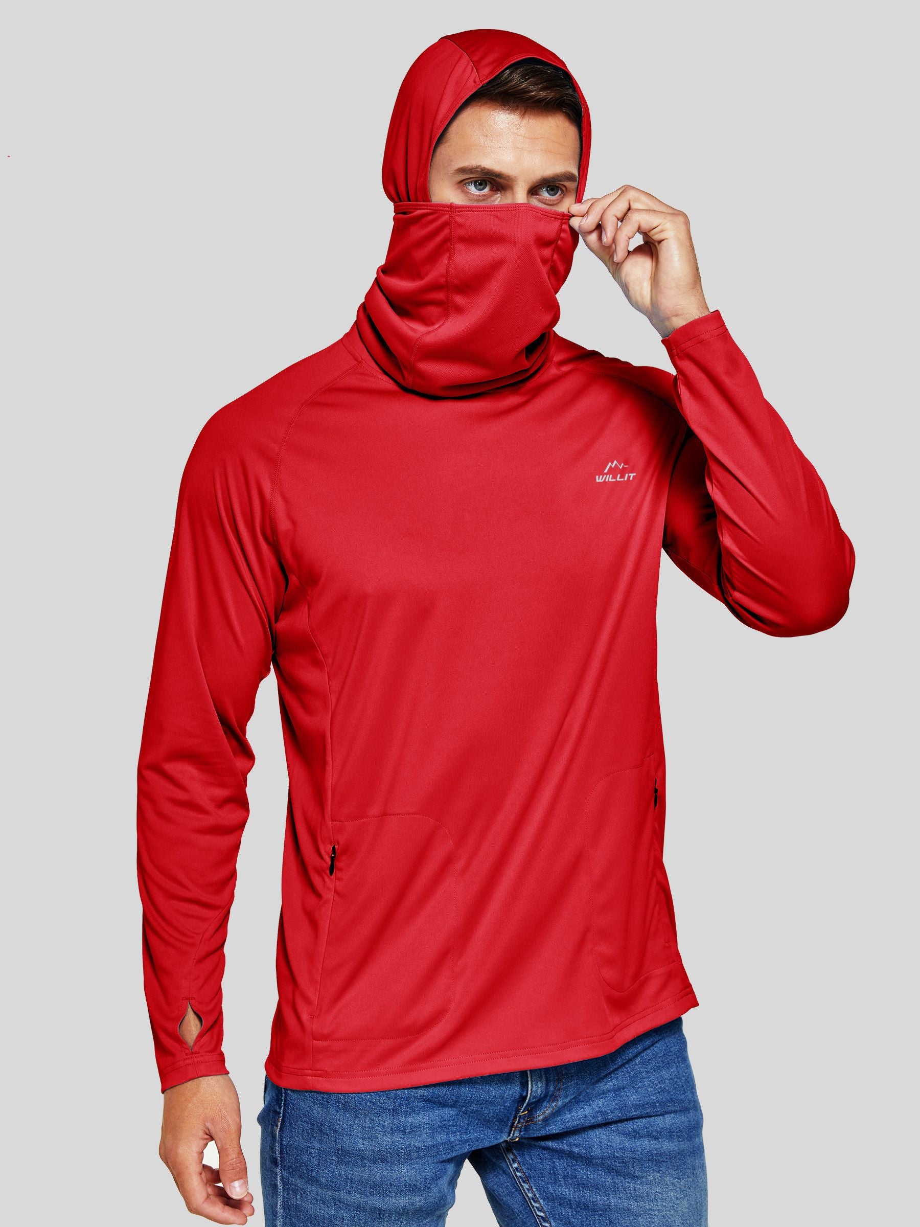 - HOOD AND Neck Gaiter: Hoodie design with a built-in neck gaiter prevents your neck and face from harmful UVA and UVB sun rays, dust and bugs. The neck gaiter features mesh holes for convenient breathing