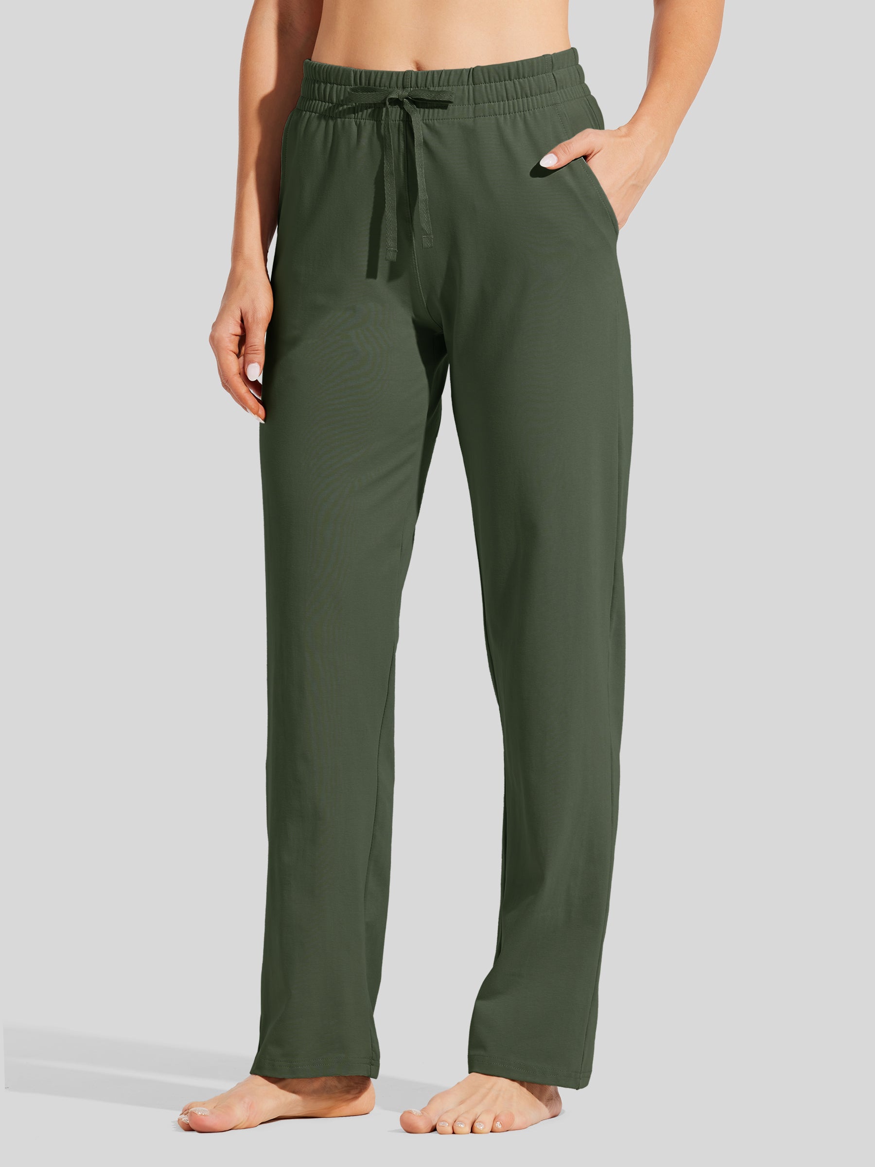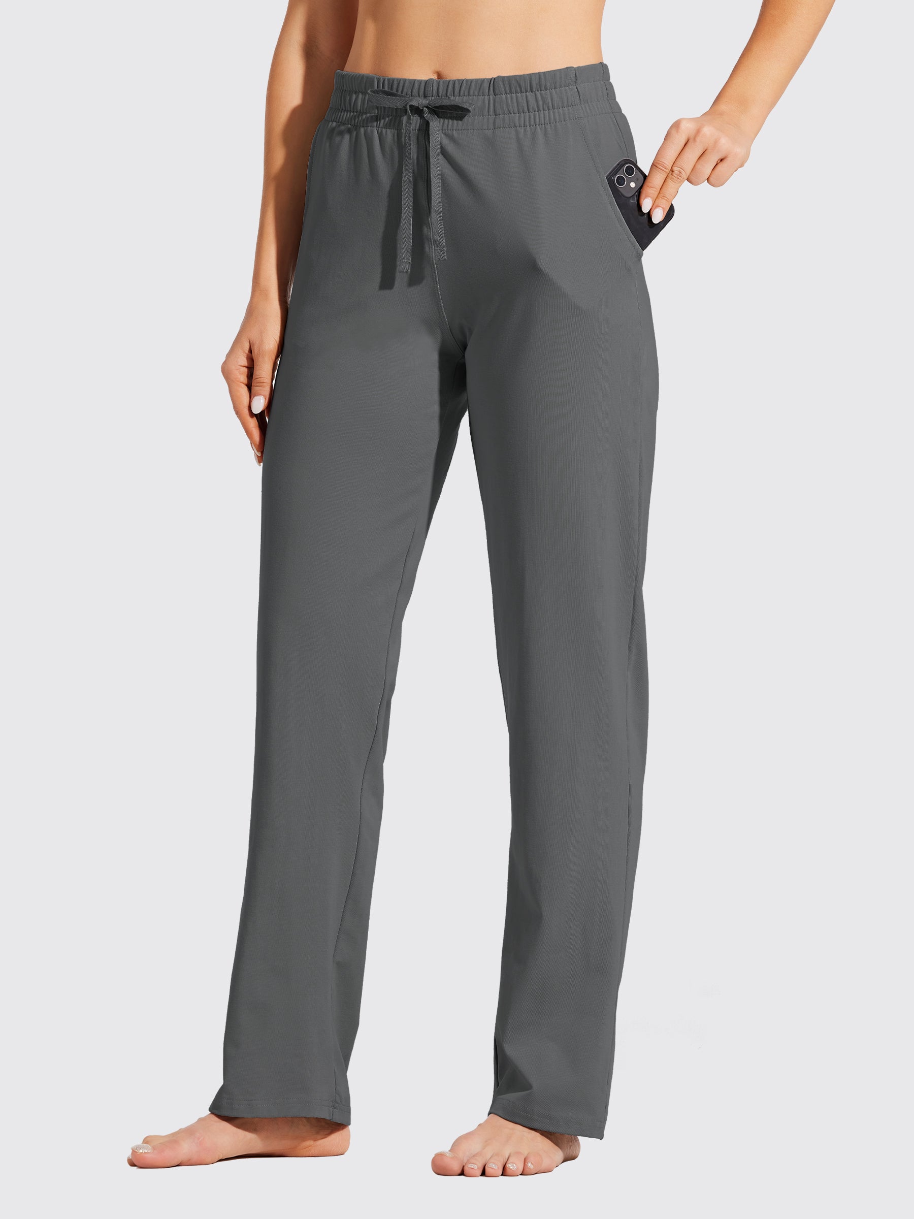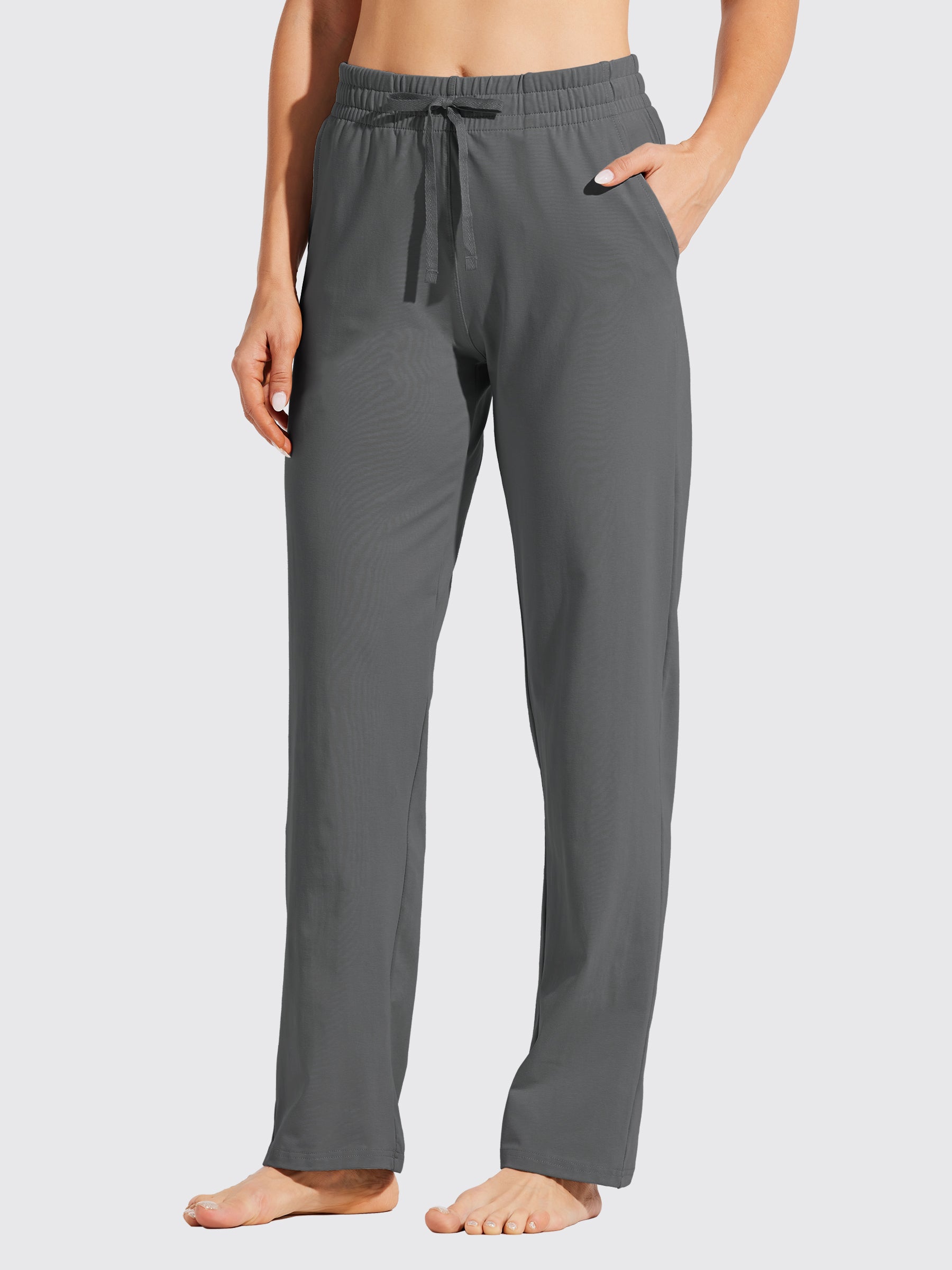 - Straight leg openings and a relaxed fit keep you comfortable, while an elastic waistband with a drawstring maintains a secure fit