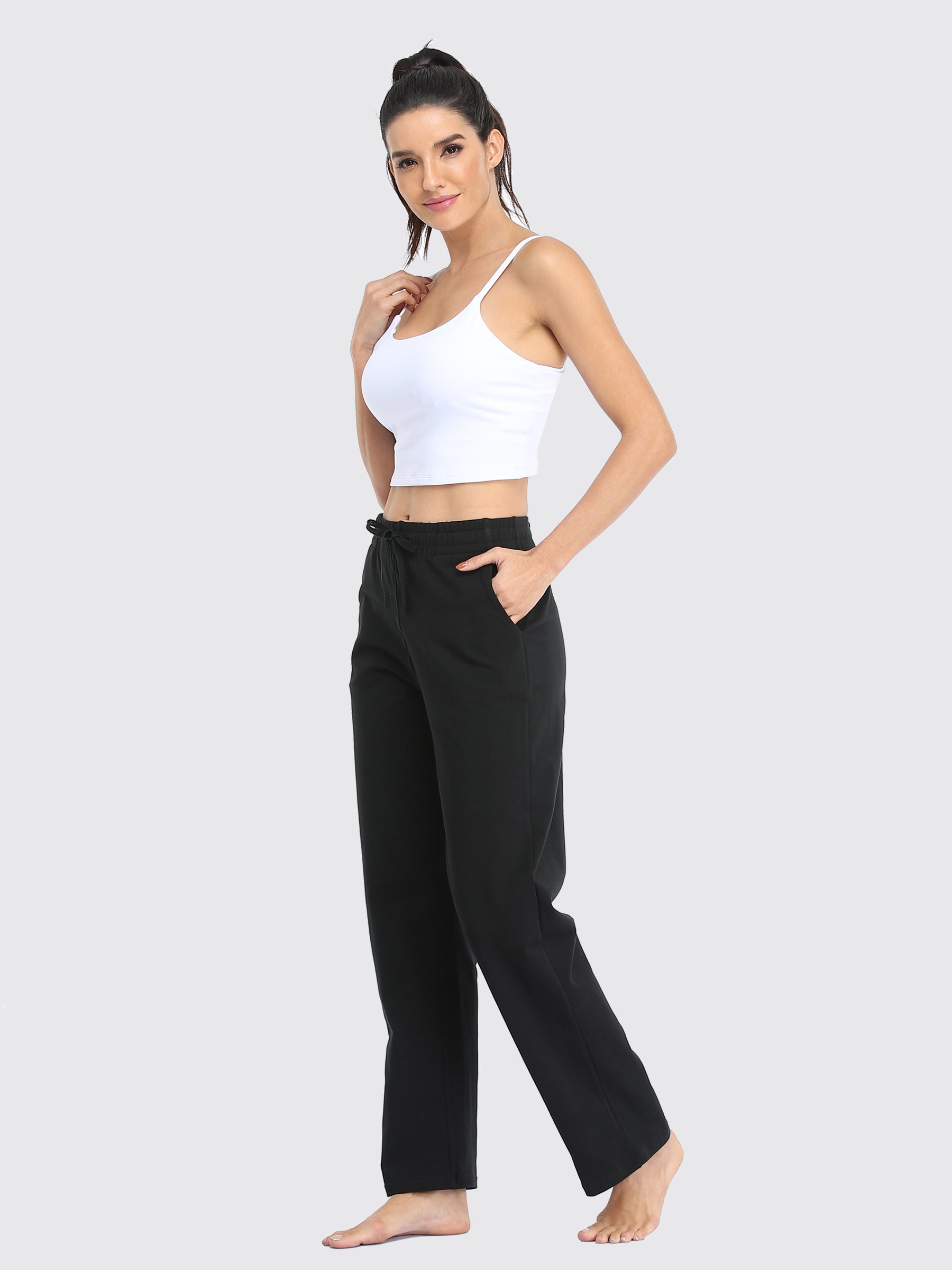 - Women's Cotton Yoga Sweatpants with deep side pockets and back patch for everyday use, lounging around the house, or anything in between